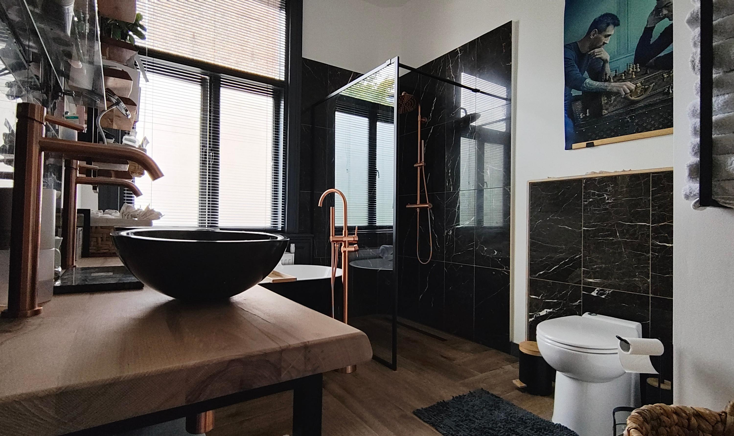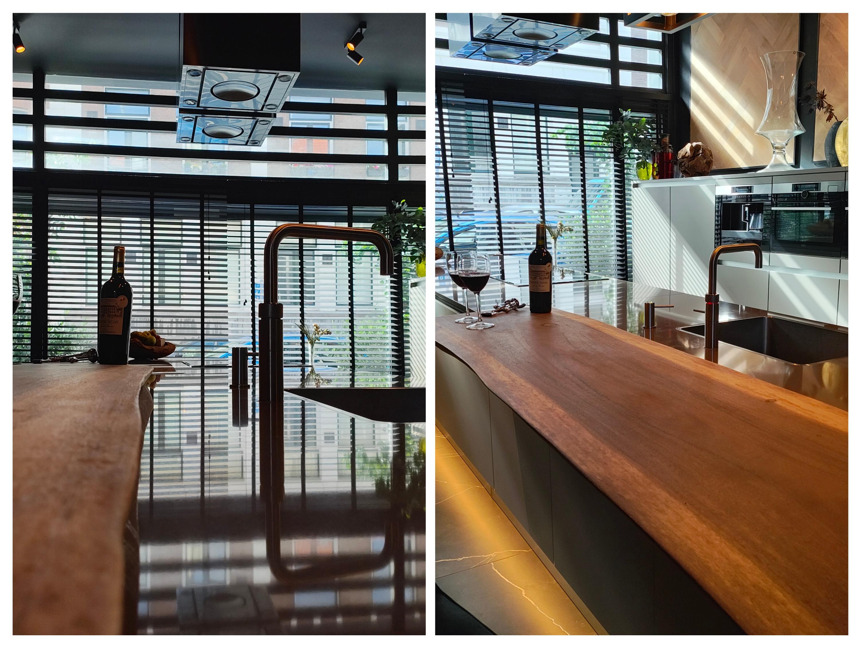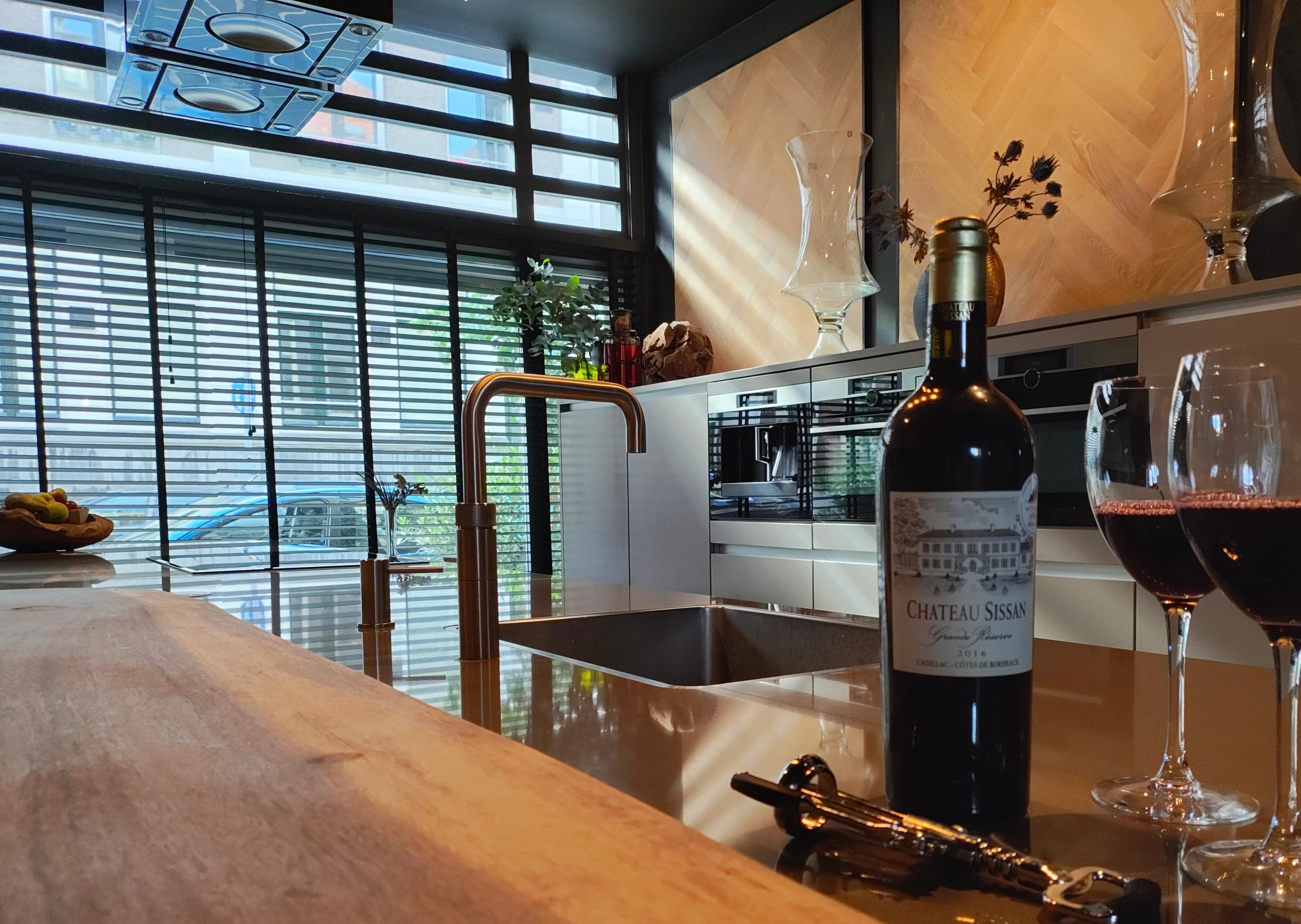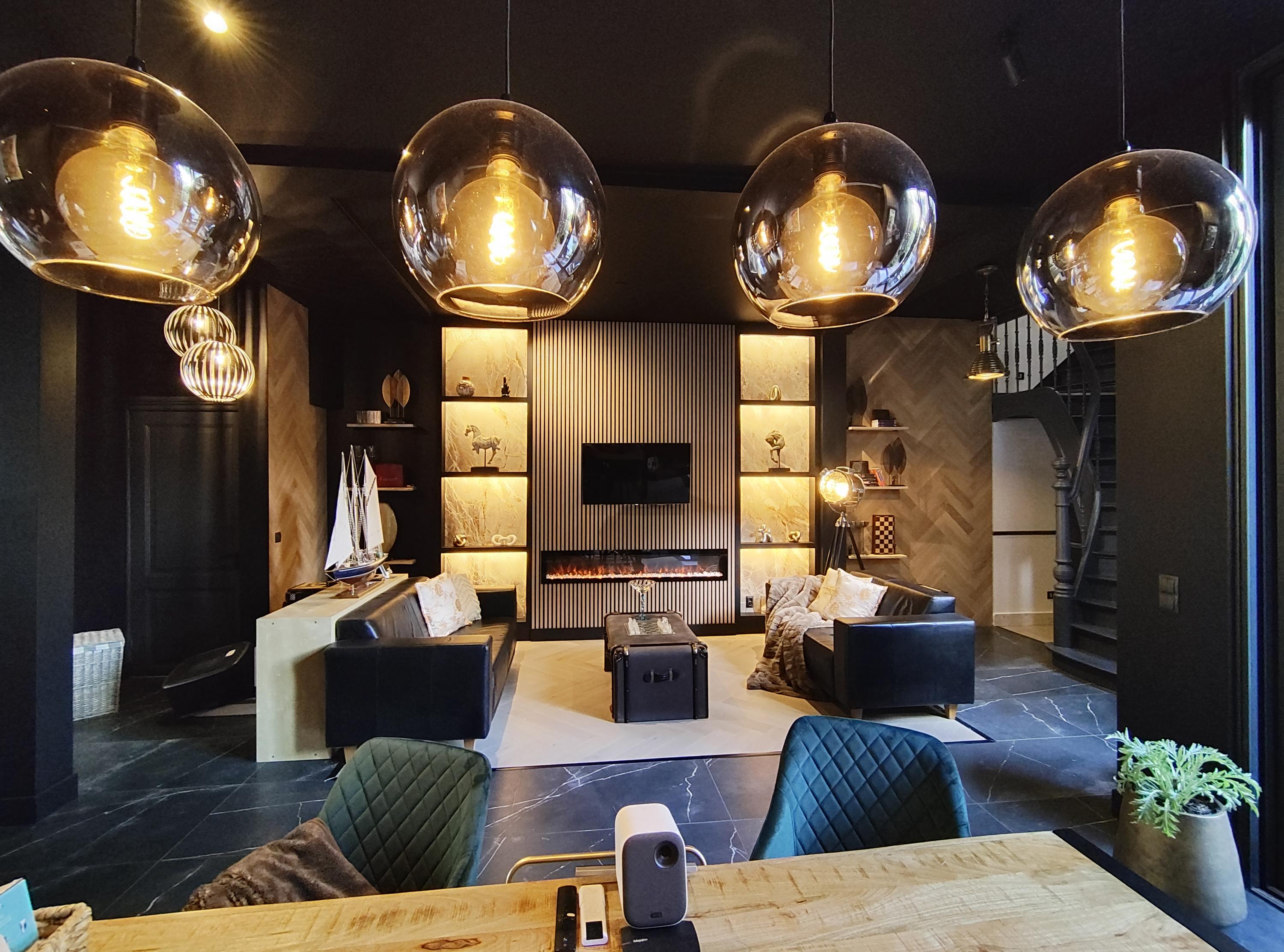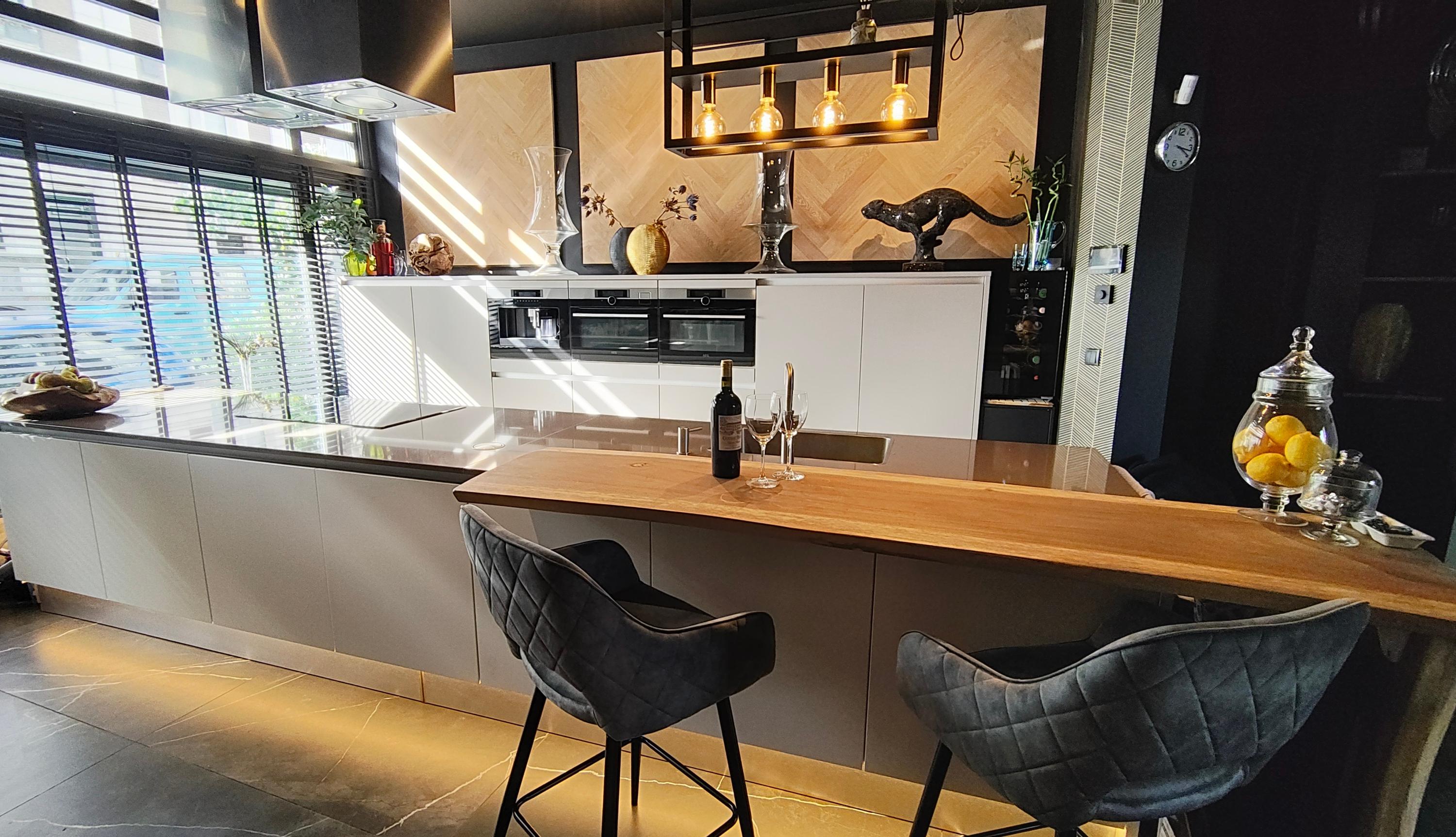 The spacious entrance hall leads into an impressive open-plan kitchen with an island of over four meters long and a wall of appliances that will delight even the most demanding culinary enthusiast. Double ovens, refrigerators, dishwashers, a built-in coffee machine, and Quooker make this kitchen the vibrant heart of the home.