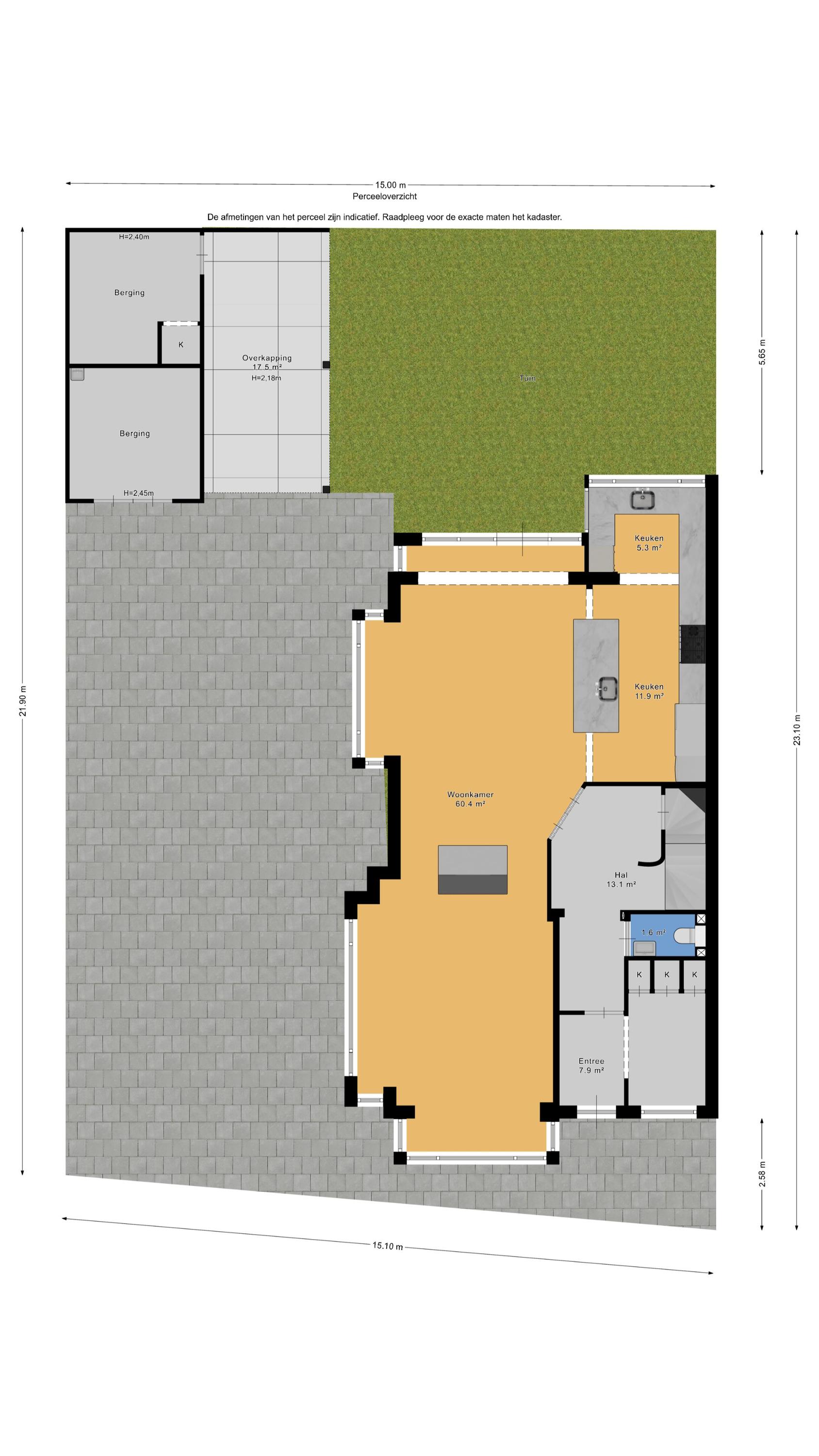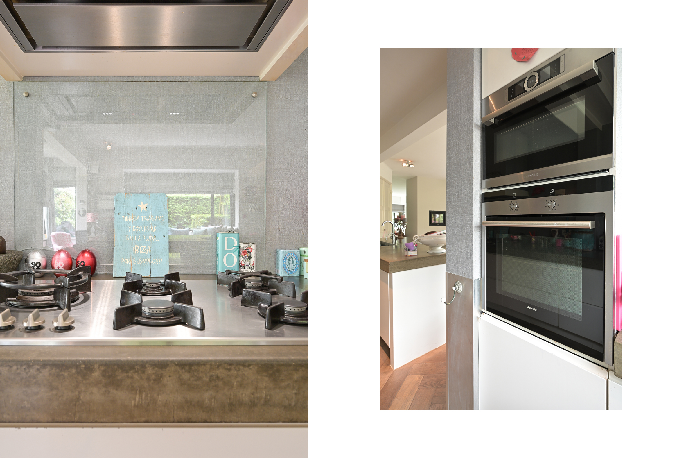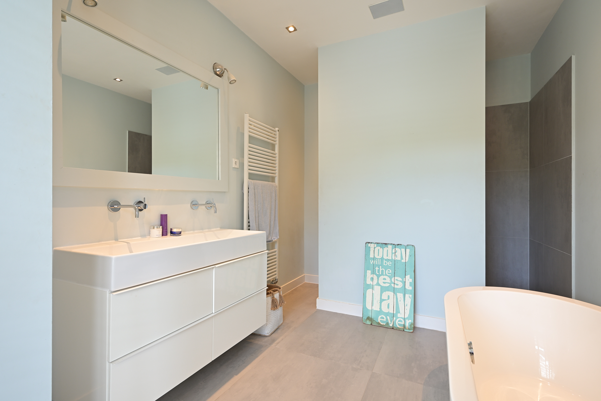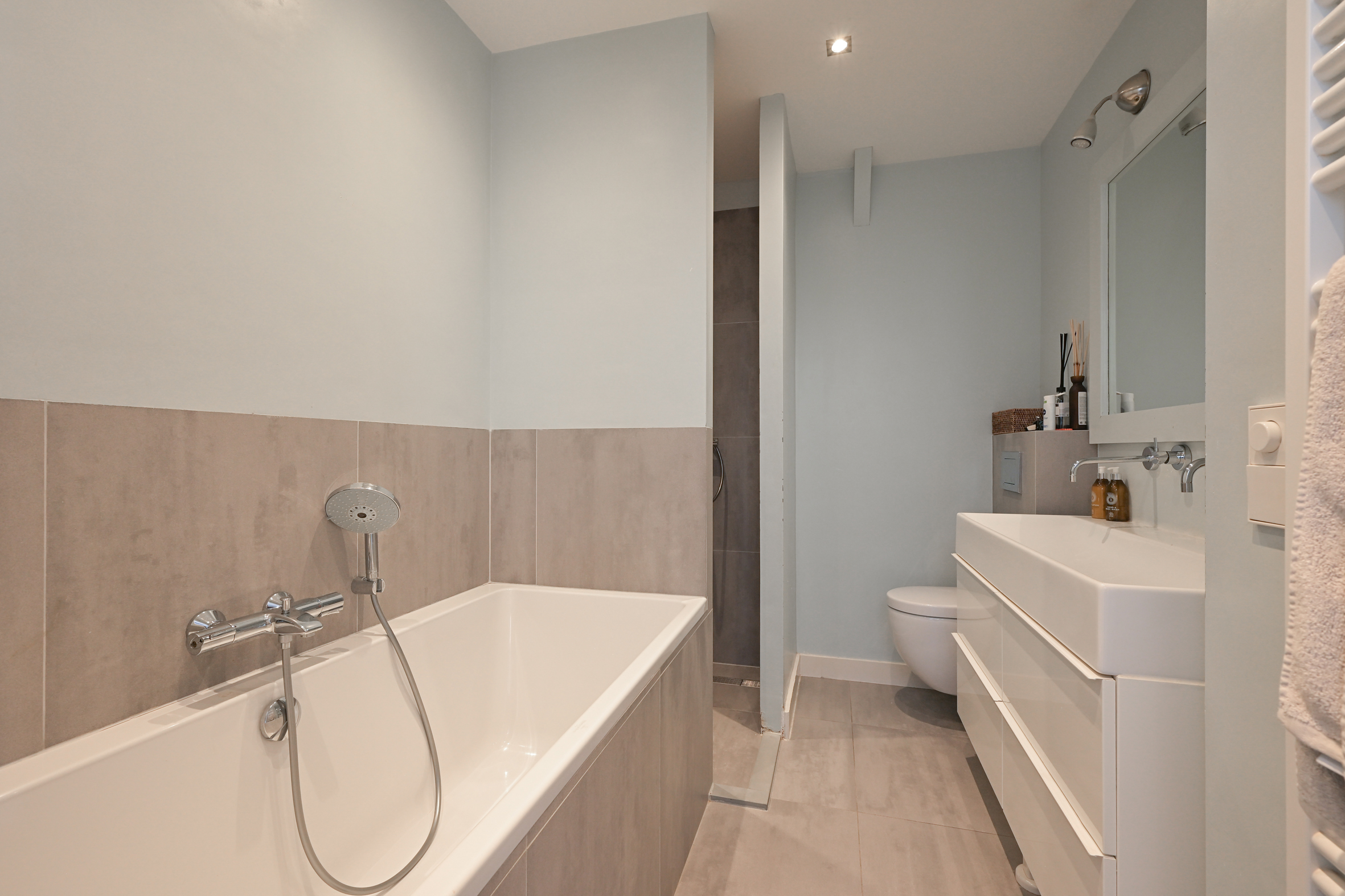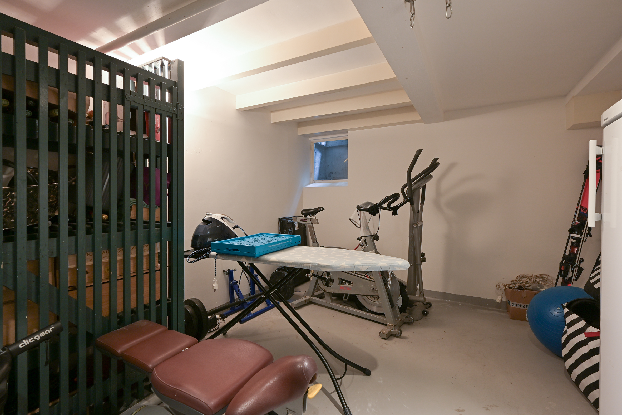 Entrance hall, vestibule with coat closet, central hall with a beautiful staircase, toilet, storage room, and access to the dry basement (36 m²) divided into three rooms. A wide living room at the front features a wall of cabinets and a fireplace, while at the rear is a spacious dining room with a fireplace and French doors leading to the sunny, private backyard with its charming "Gooische Hut" theme and fireplace. A large open-plan kitchen with an island and modern built-in appliances is also featured. Detached brick garage with electricity and a separate chill-out area for children.