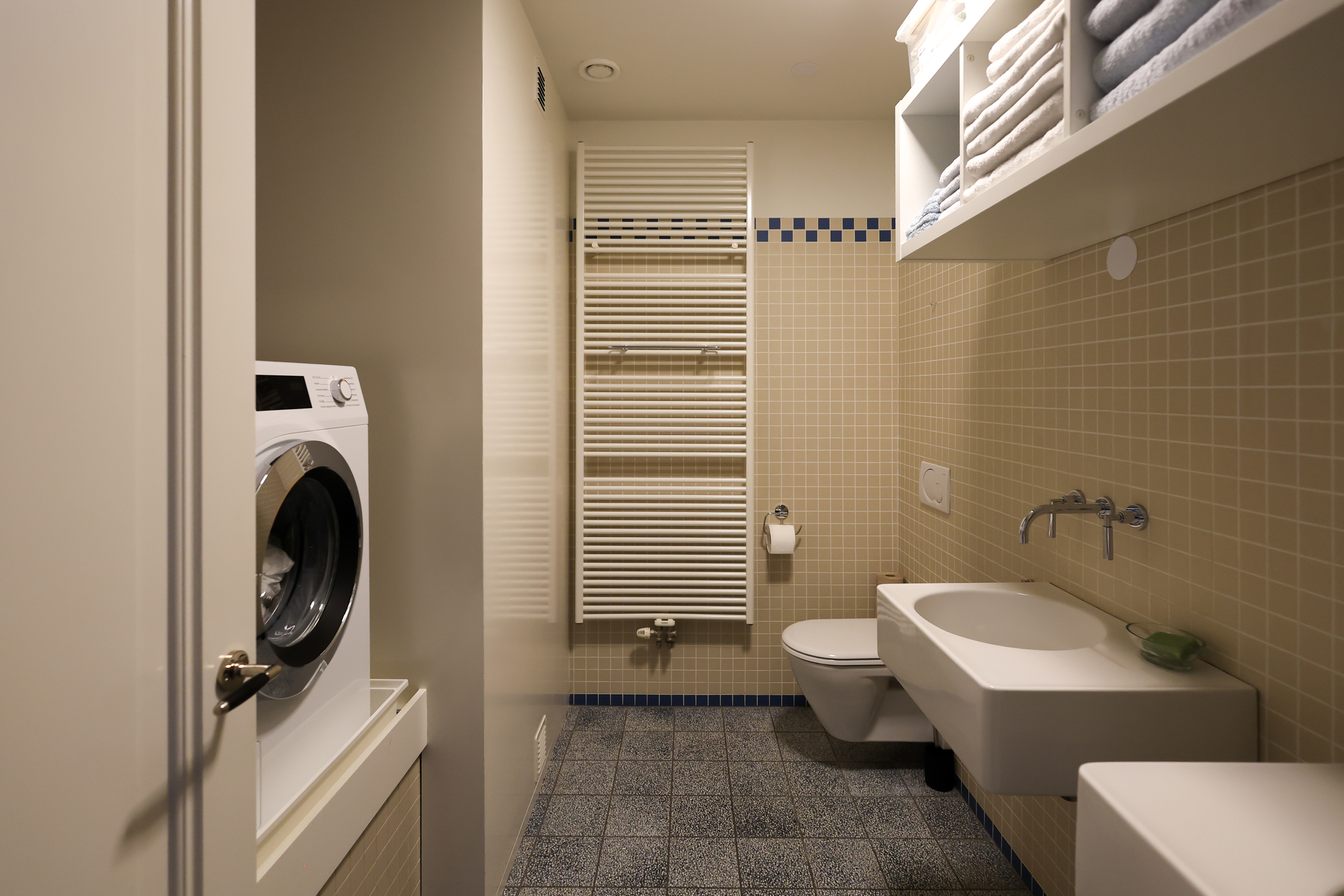 Tradition und Innovation ziehen sich durch das gesamte Haus: Mechanische Belüftung, Alarmsystem, teilweise Fußbodenheizung und Isolierung sorgen für Komfort. Privater Parkplatz, eine außergewöhnliche Annehmlichkeit in dieser Lage, ist vorhanden.