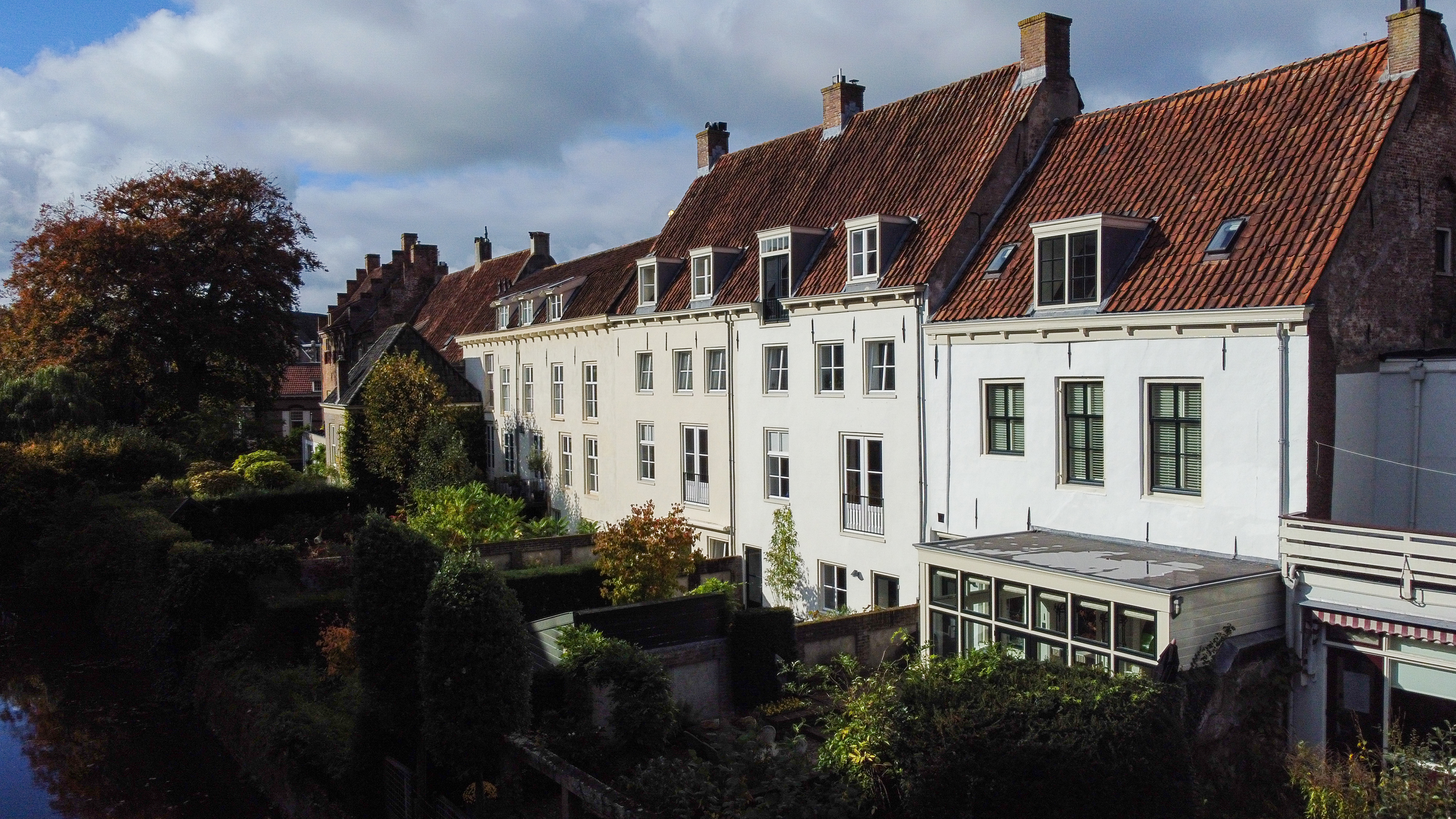 Beim Betreten empfängt Sie eine Atmosphäre, die von Licht, Großzügigkeit und originalen Details geprägt ist. Der offene Kamin im Wohnzimmer und die traditionellen Fenster rahmen den Blick auf die Stadt, während die Lodder-Küche mit Frühstücksecke auf die geschichtsträchtige Straße blickt. Ein beeindruckender Wintergarten öffnet sich direkt zum privaten Garten, wo die Terrasse sanft über dem Zuidsingel-Kanal liegt und für entspannte Ruhe unweit des Stadtlebens sorgt.