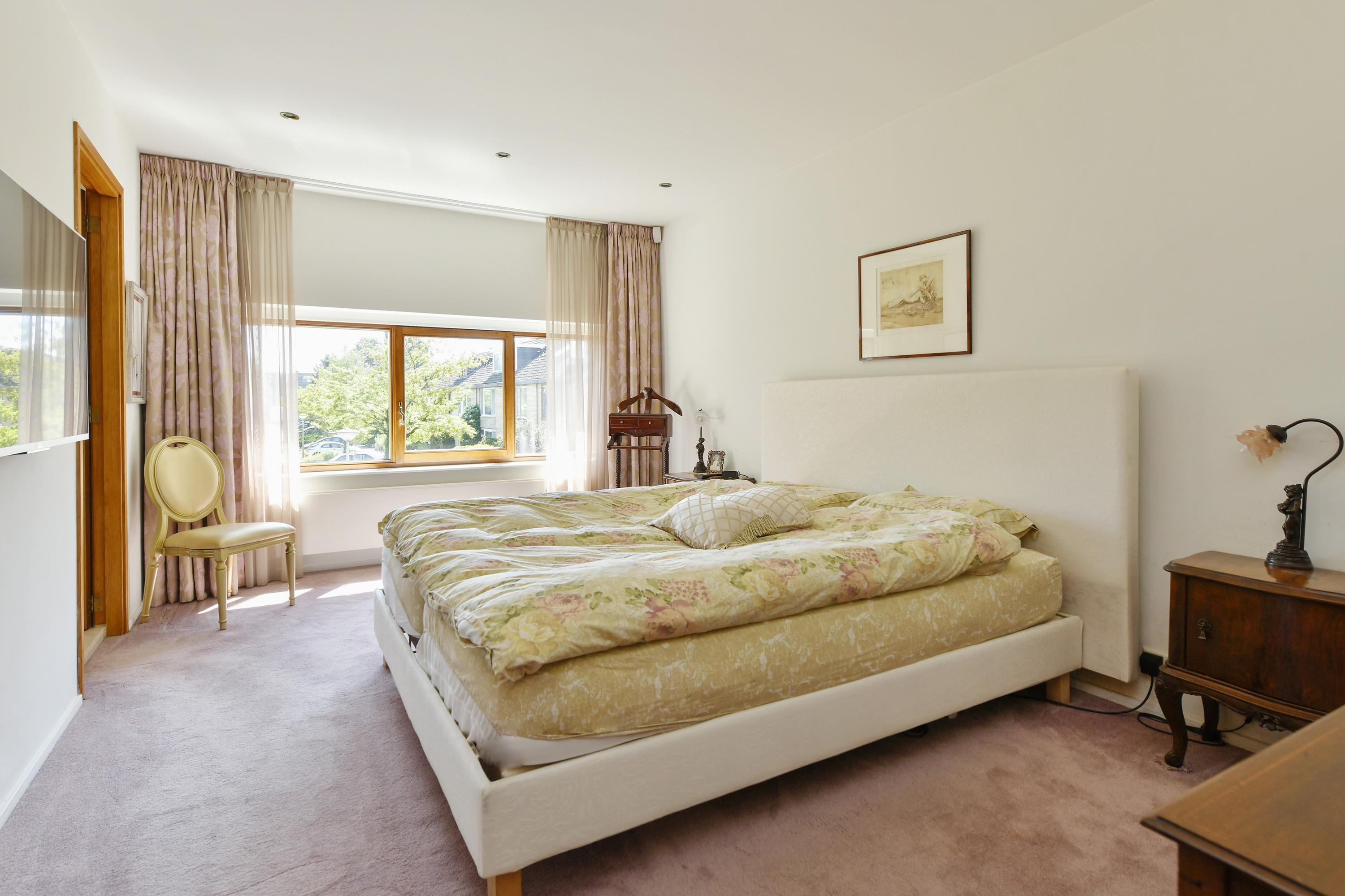 The generous rear garden faces southwest and borders directly onto open water. It is a wonderful place to enjoy the sun, peace and views over the surrounding greenery. There is plenty of space for a lounge area, dining table and play area. At the front of the property there is room for several cars on private grounds.