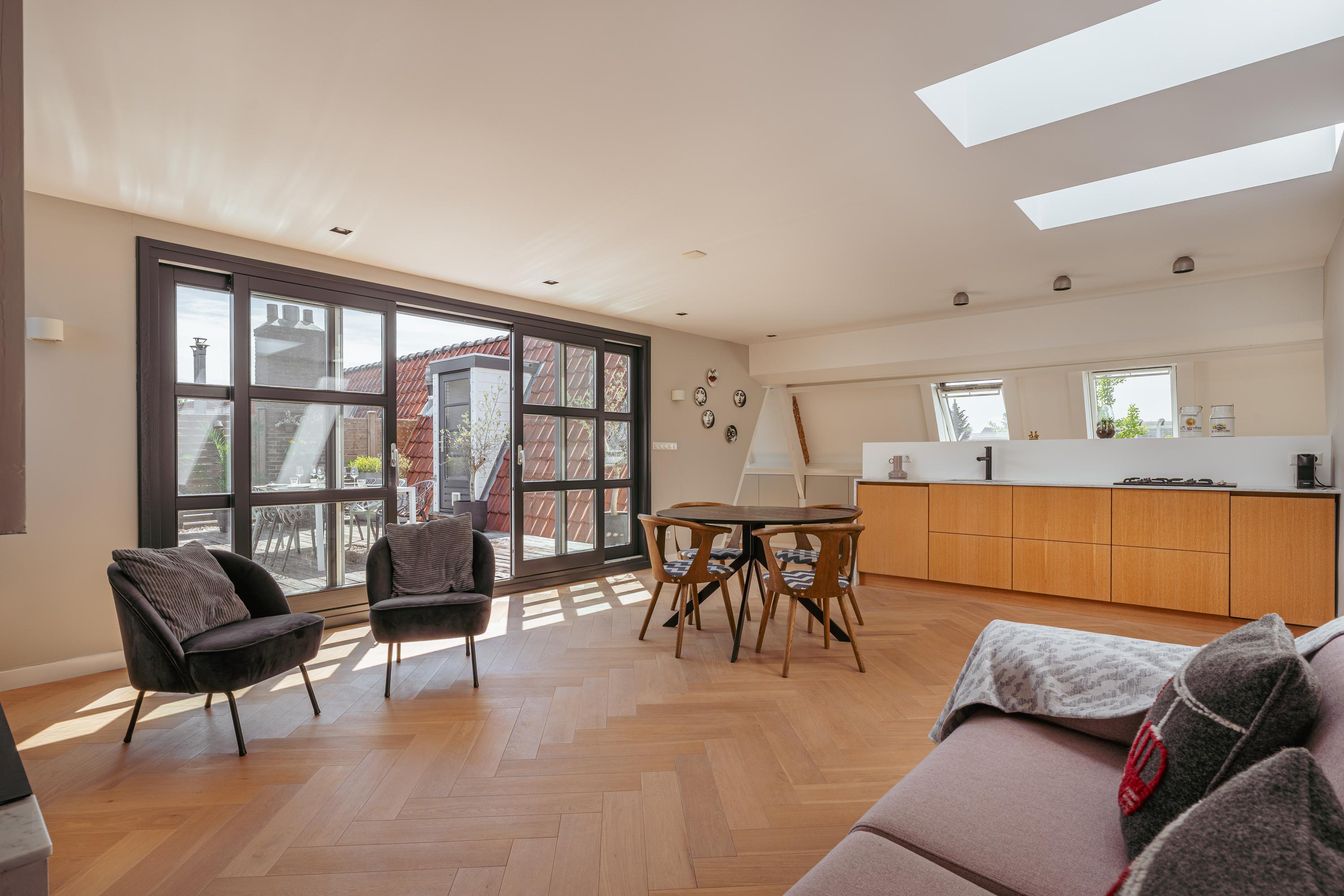 At this quiet location, just around the corner from the lively Beethovenstraat, you will find this stylish upper house full of light and character. Spread over three floors, this property offers approx. 334 m² of living comfort, with five spacious bedrooms, a generous living room with open kitchen and no fewer than four outdoor spaces – including an impressive 60 m² roof terrace.