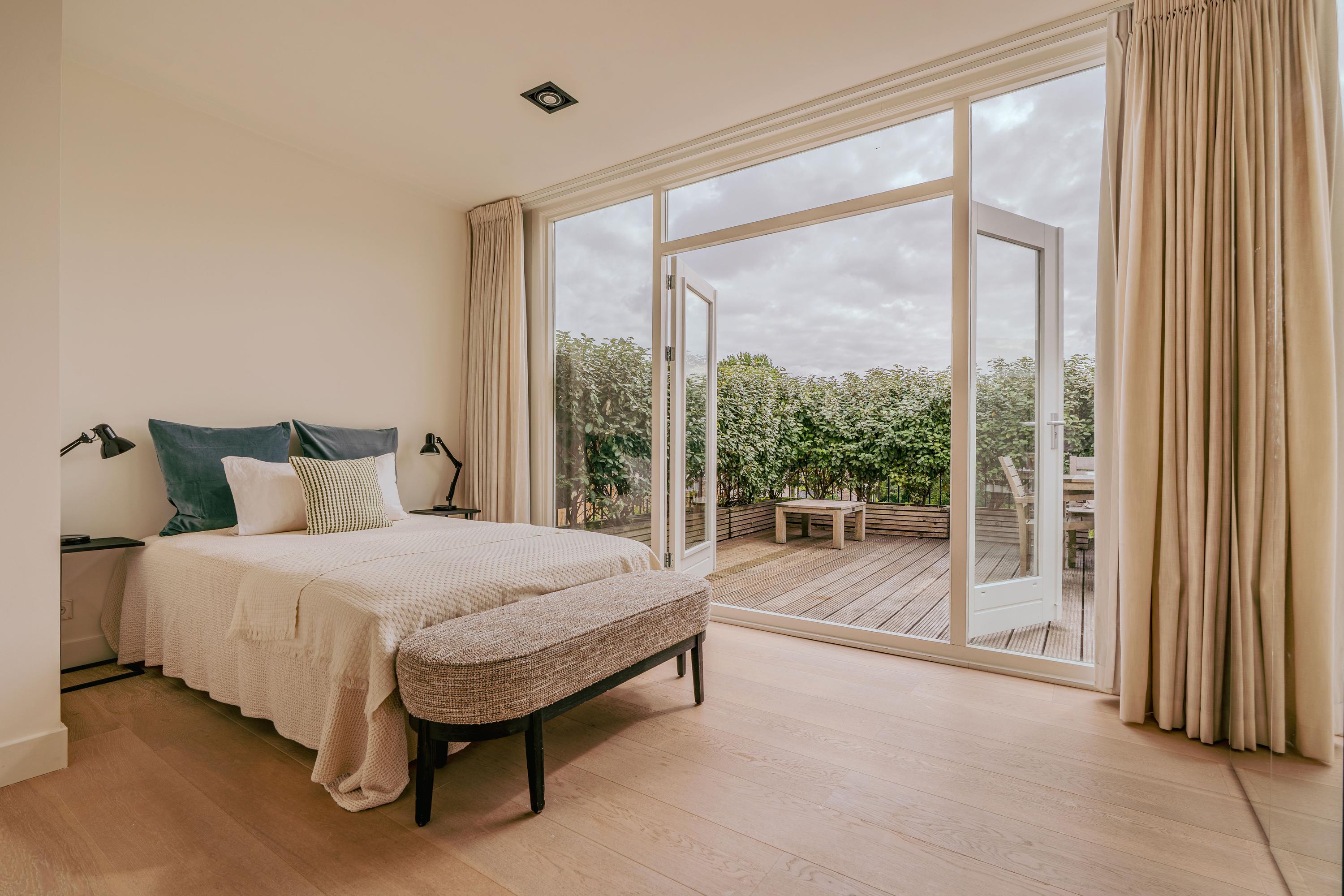 Situated in a quiet street just steps from the vibrant Beethovenstraat, this elegant and light-filled upper-level residence offers a perfect blend of comfort, charm, and functionality. Spread over two floors, the apartment features three bedrooms, a generous living room with open kitchen, and no fewer than three outdoor spaces. An ideal family home for those seeking space, tranquility, and the very best of Amsterdam-Zuid within easy reach.