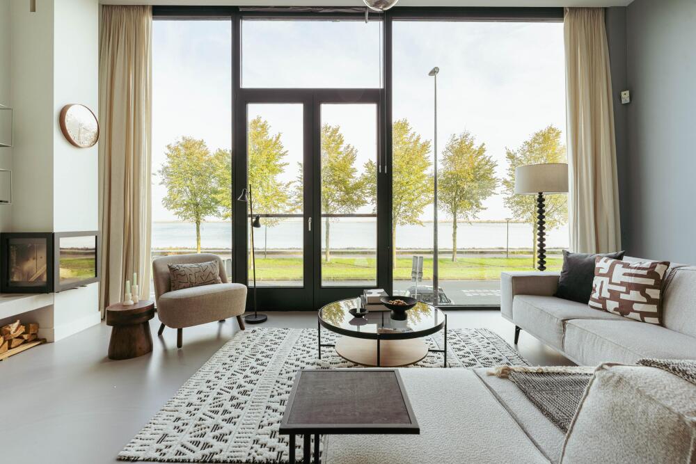 Modernes Familienhaus am Wasser in Amsterdam IJburg bietet eine seltene Kombination aus Offenheit, Helligkeit und Ruhe, direkt am Ufer des IJmeer. Mit einer Wohnfläche von 276 m² verbindet dieses vierstöckige Anwesen durchdachte Architektur mit Komfort und schafft ein Gleichgewicht zwischen Privatsphäre und Verbundenheit. Großzügige bodentiefe Fenster eröffnen einen weitreichenden Blick über das Wasser und durchfluten die Wohnbereiche mit natürlichem Licht.