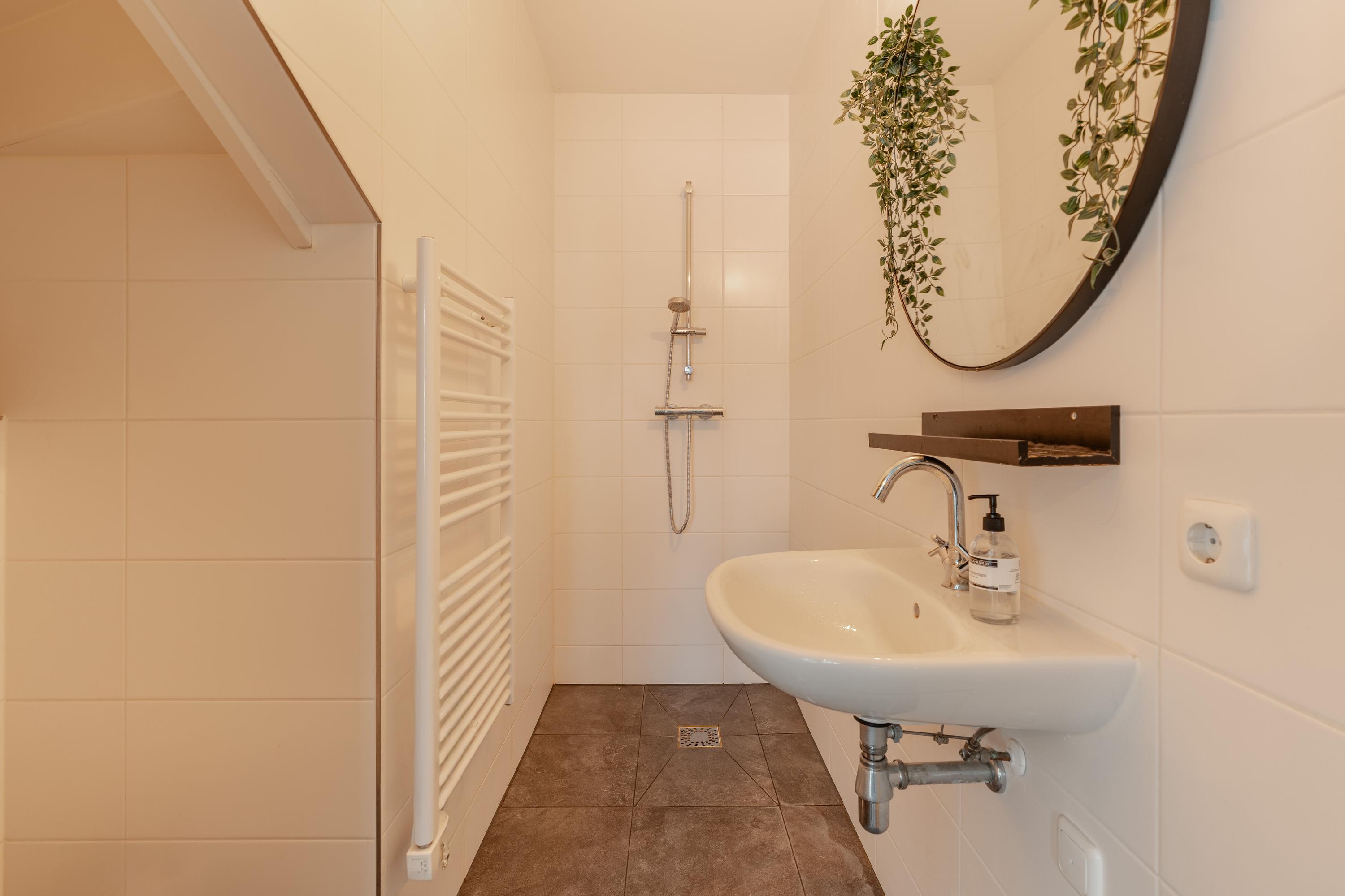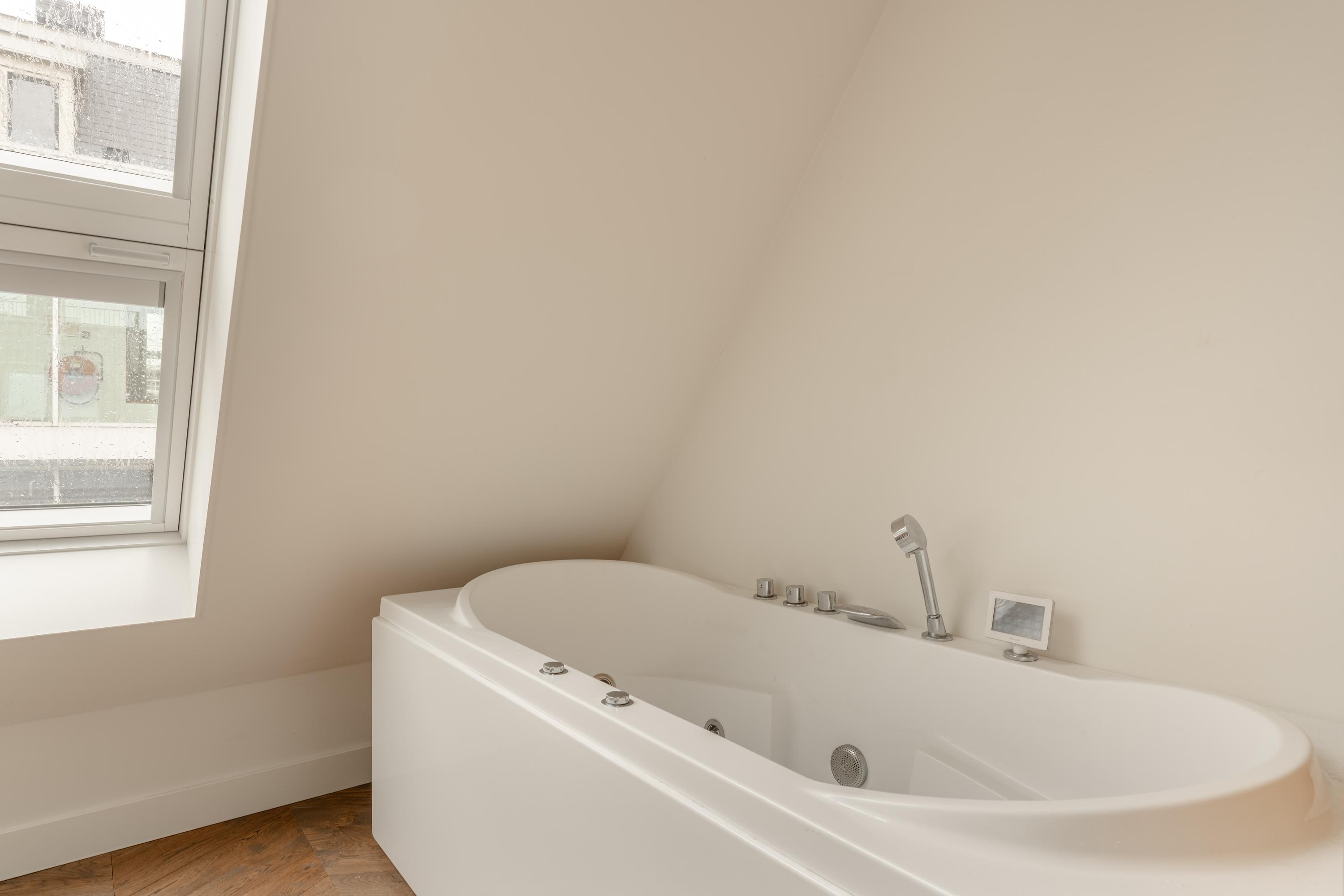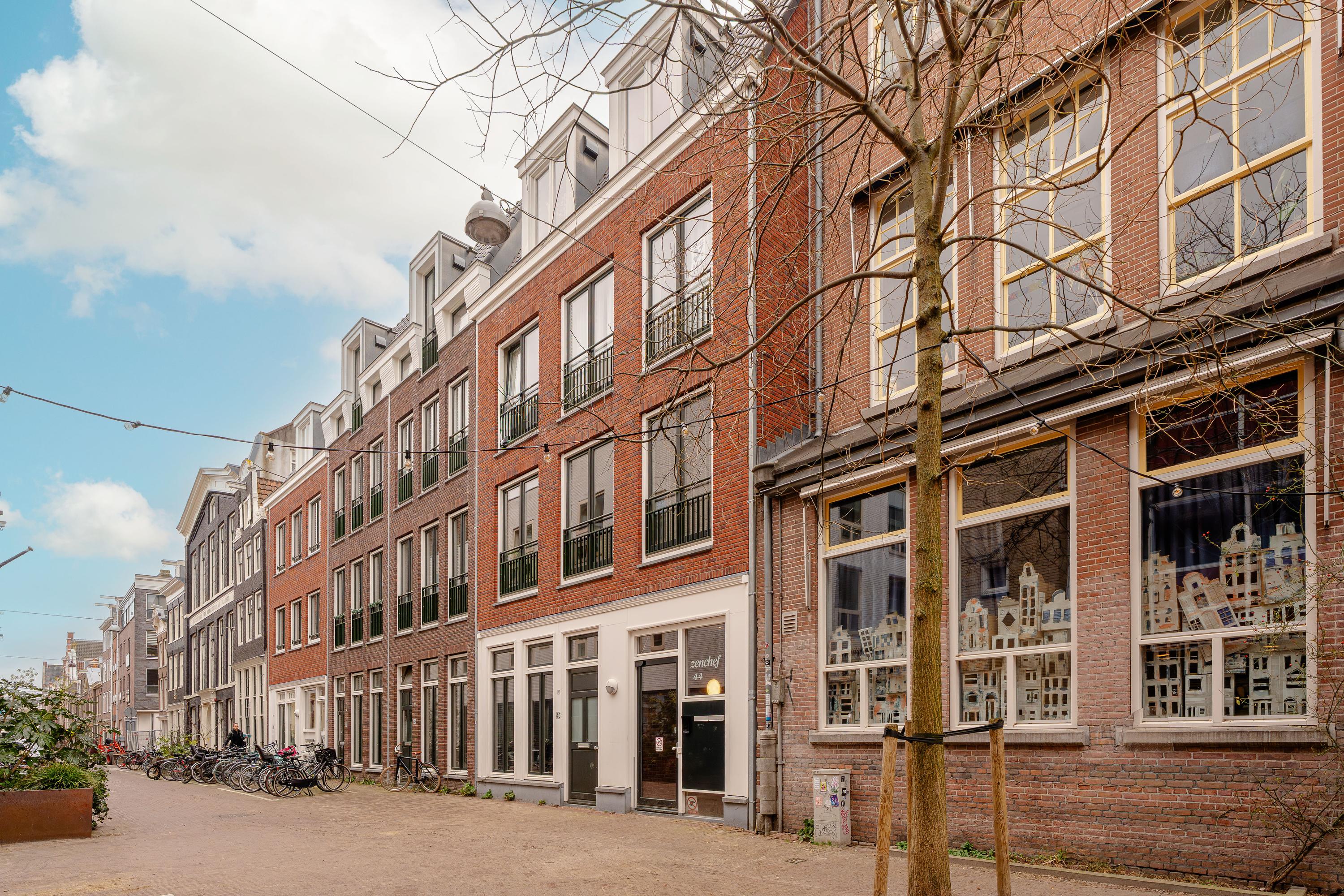 Ein besonderer Höhepunkt ist die 16 m² große Dachterrasse, die über das Wohnzimmer zugänglich ist und außergewöhnliche Ruhe sowie einen malerischen Blick über die Dächer des Jordaan bietet. Im Untergeschoss befindet sich ein privater Abstellraum mit hohen Decken, der weiteren praktischen Nutzen bietet. Das Gebäude verfügt über einen Aufzug, einen gemeinschaftlichen Innenhofgarten und wird von einer professionellen Eigentümergemeinschaft verwaltet. Energieklasse A, fortschrittliche Dämmung und Fußbodenheizung sorgen im gesamten Apartment für Komfort und Nachhaltigkeit.