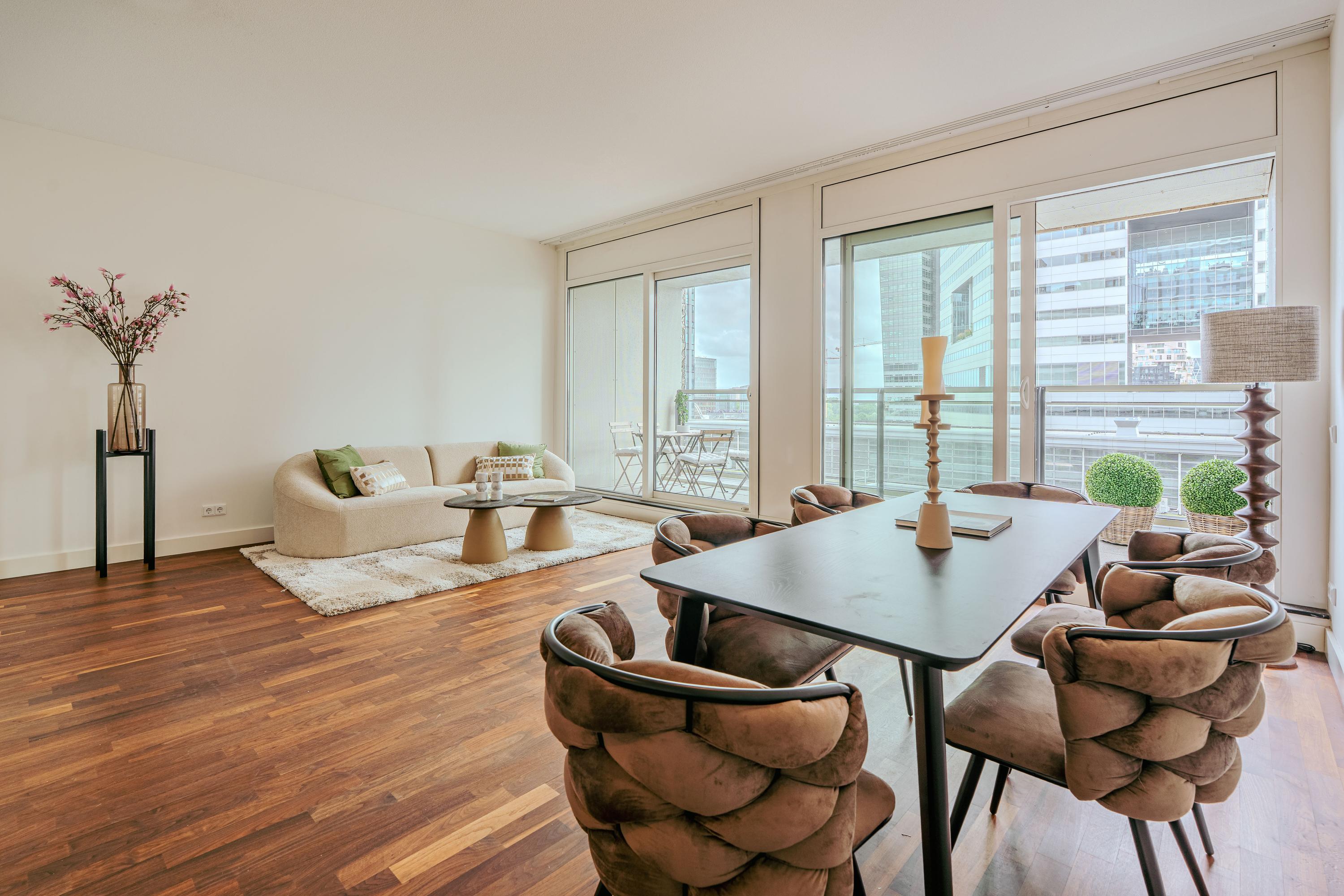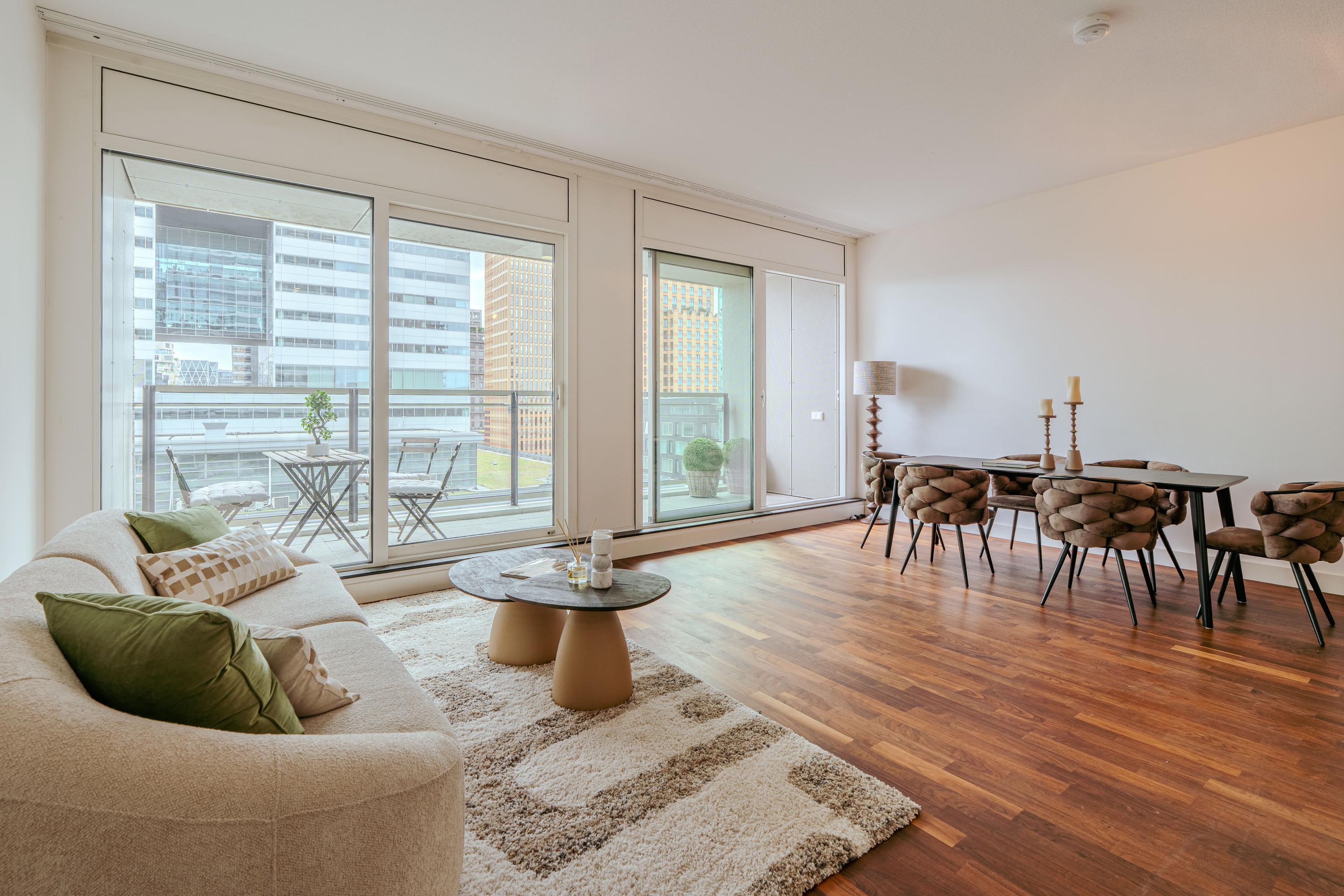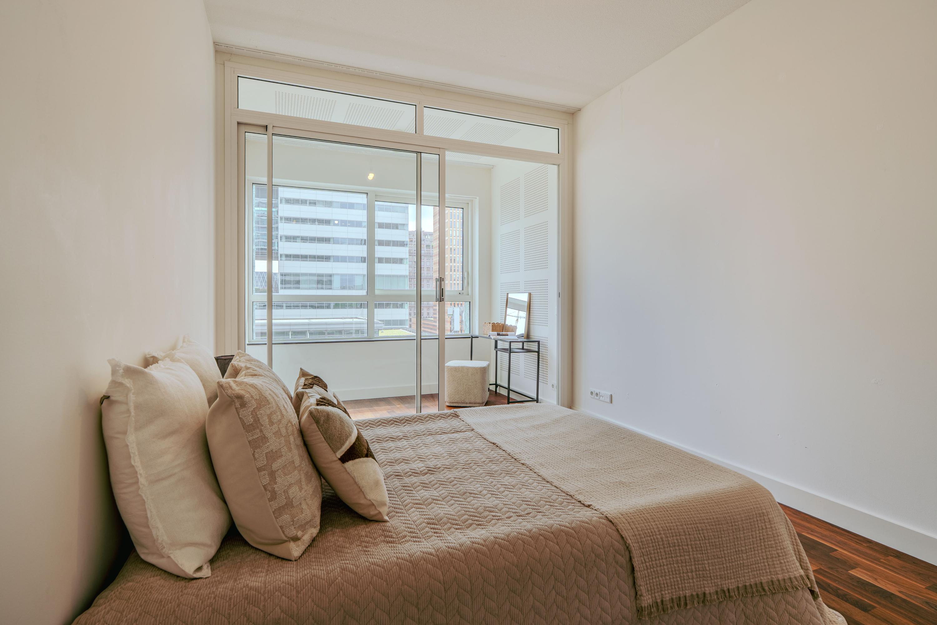 Das Apartment Amsterdam Zuidas präsentiert eine Adresse, an der Licht, Höhe und dezenter Luxus auf der achten Etage des New Amsterdam-Gebäudes miteinander verschmelzen. Diese 106 m² große Residenz bietet ein raffiniertes, zeitgenössisches Wohngefühl mit zwei großzügigen Schlafzimmern, einem modernen Badezimmer und einem etwa 11 m² großen Balkon mit Blick auf das pulsierende Geschäftsviertel der Stadt.