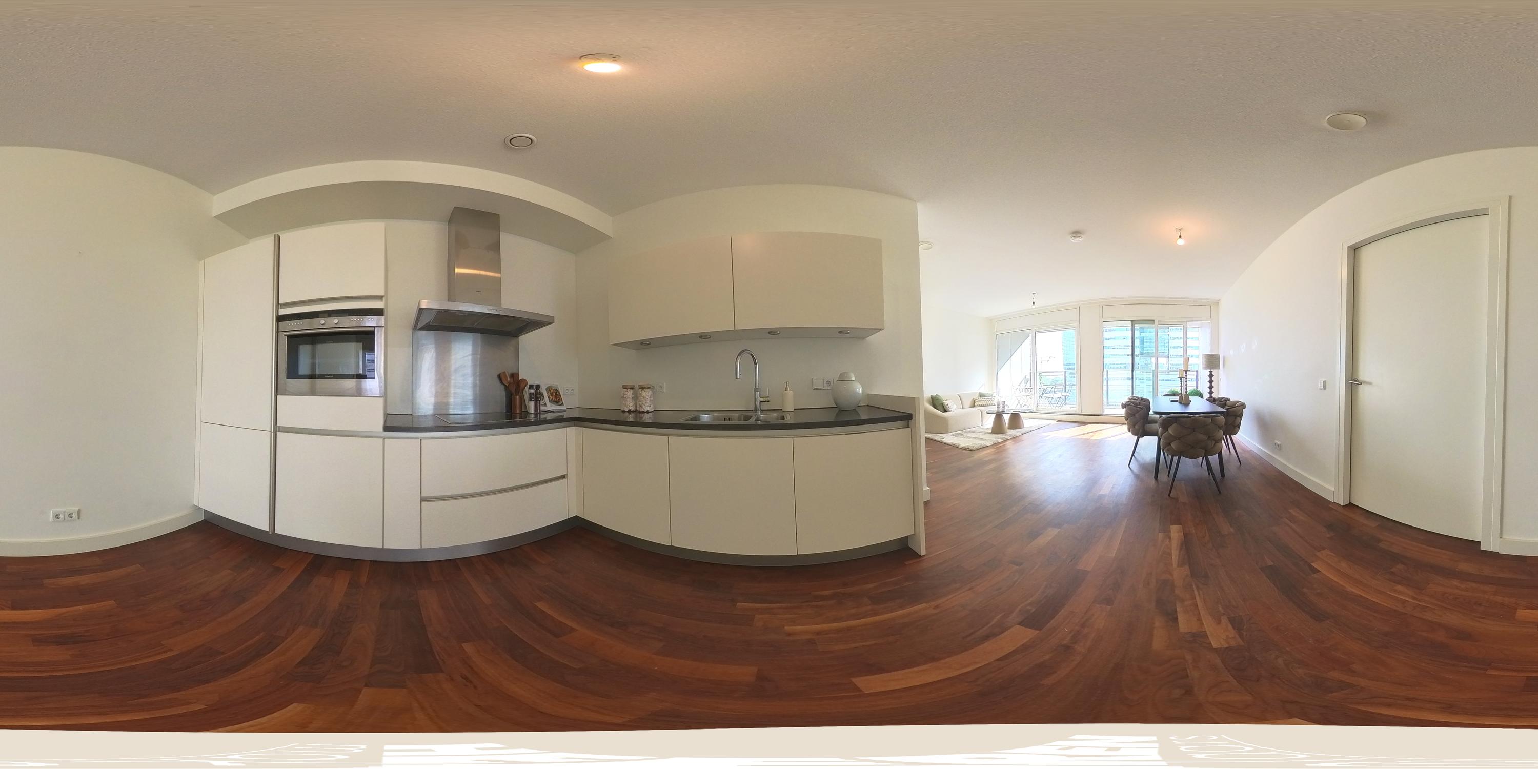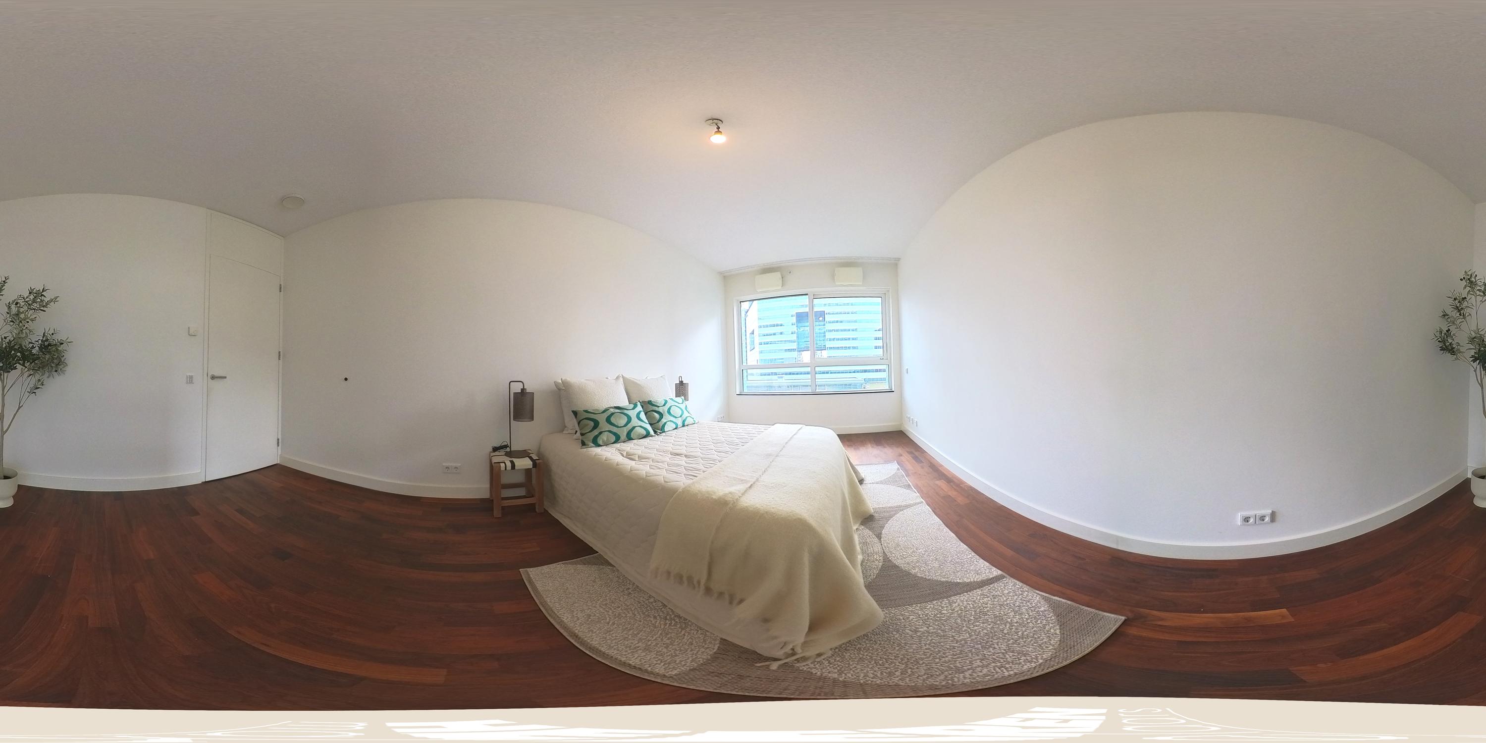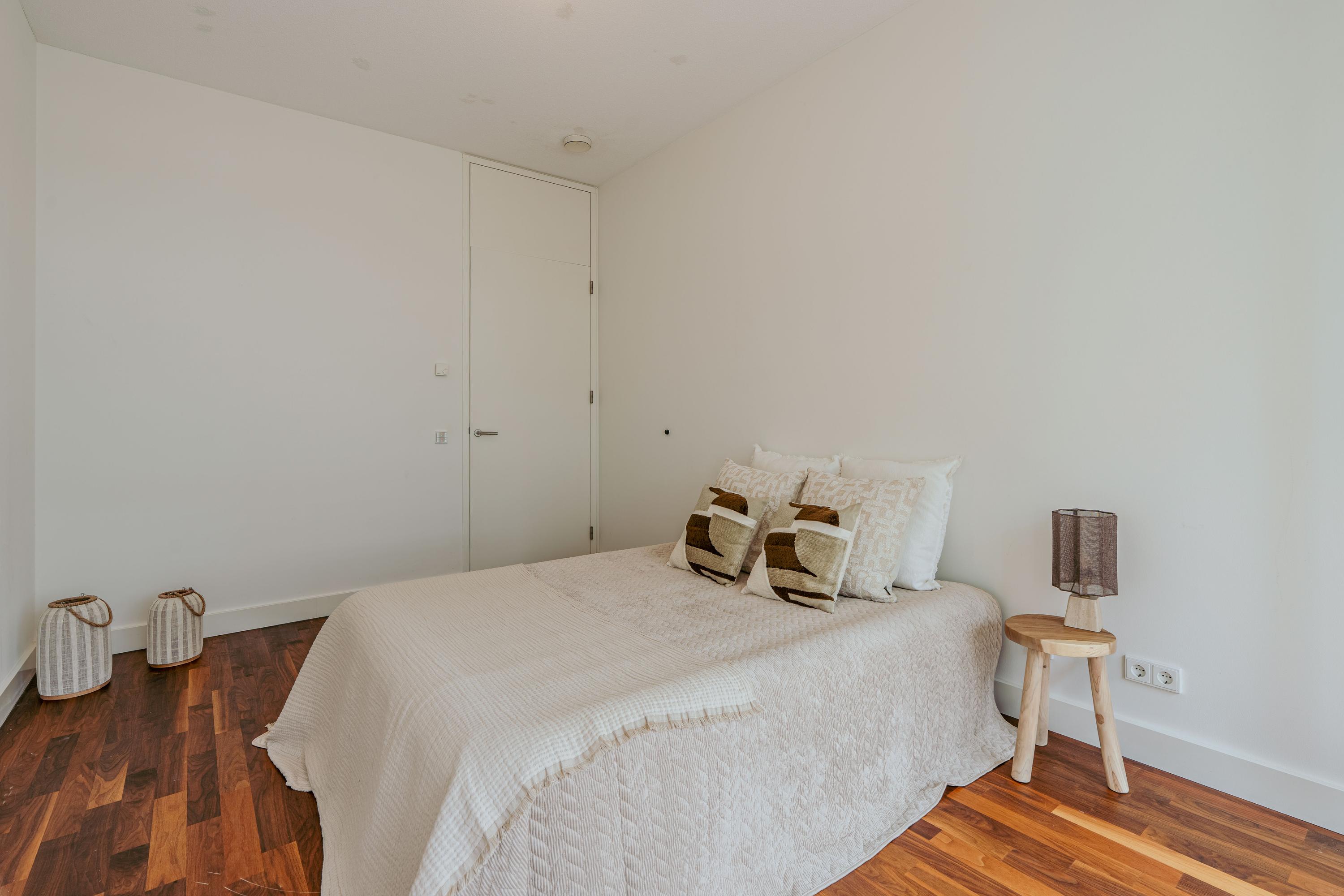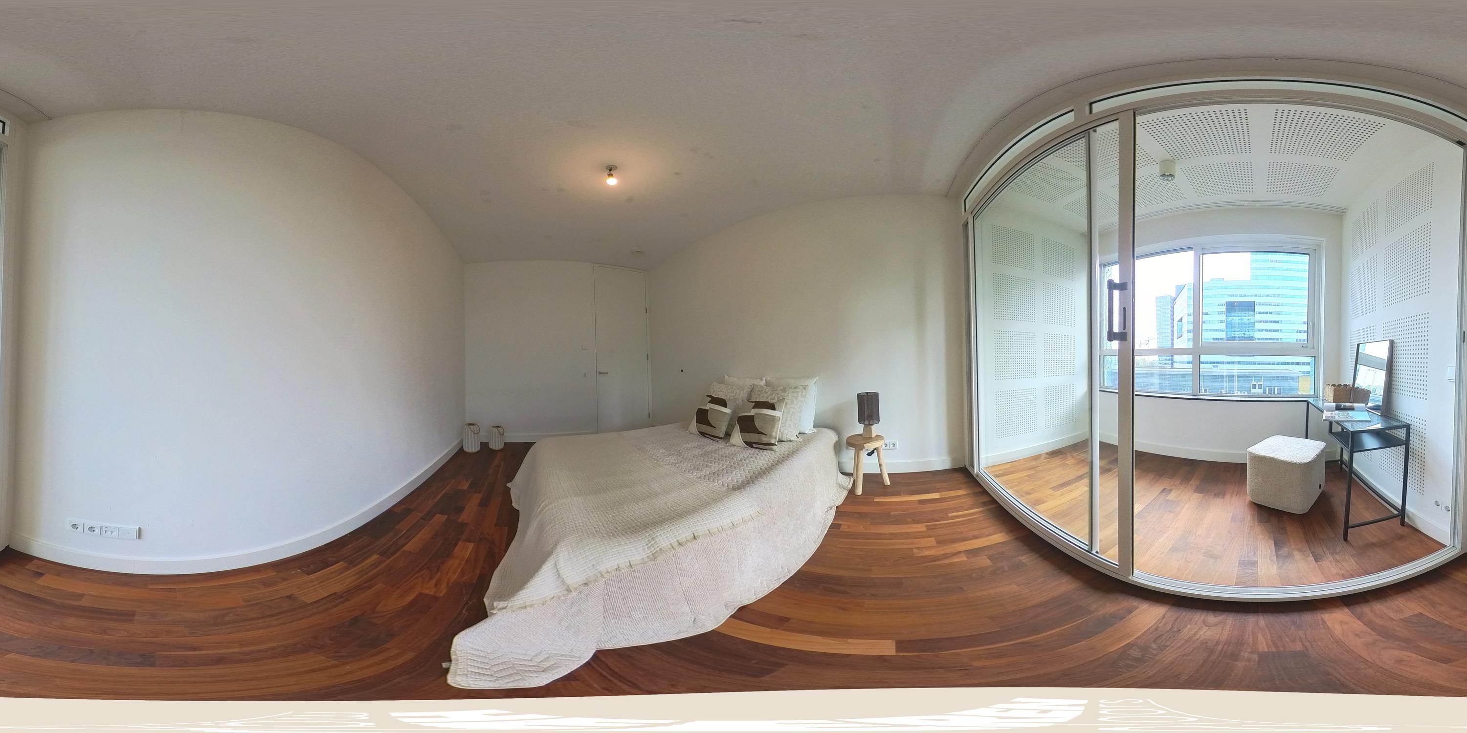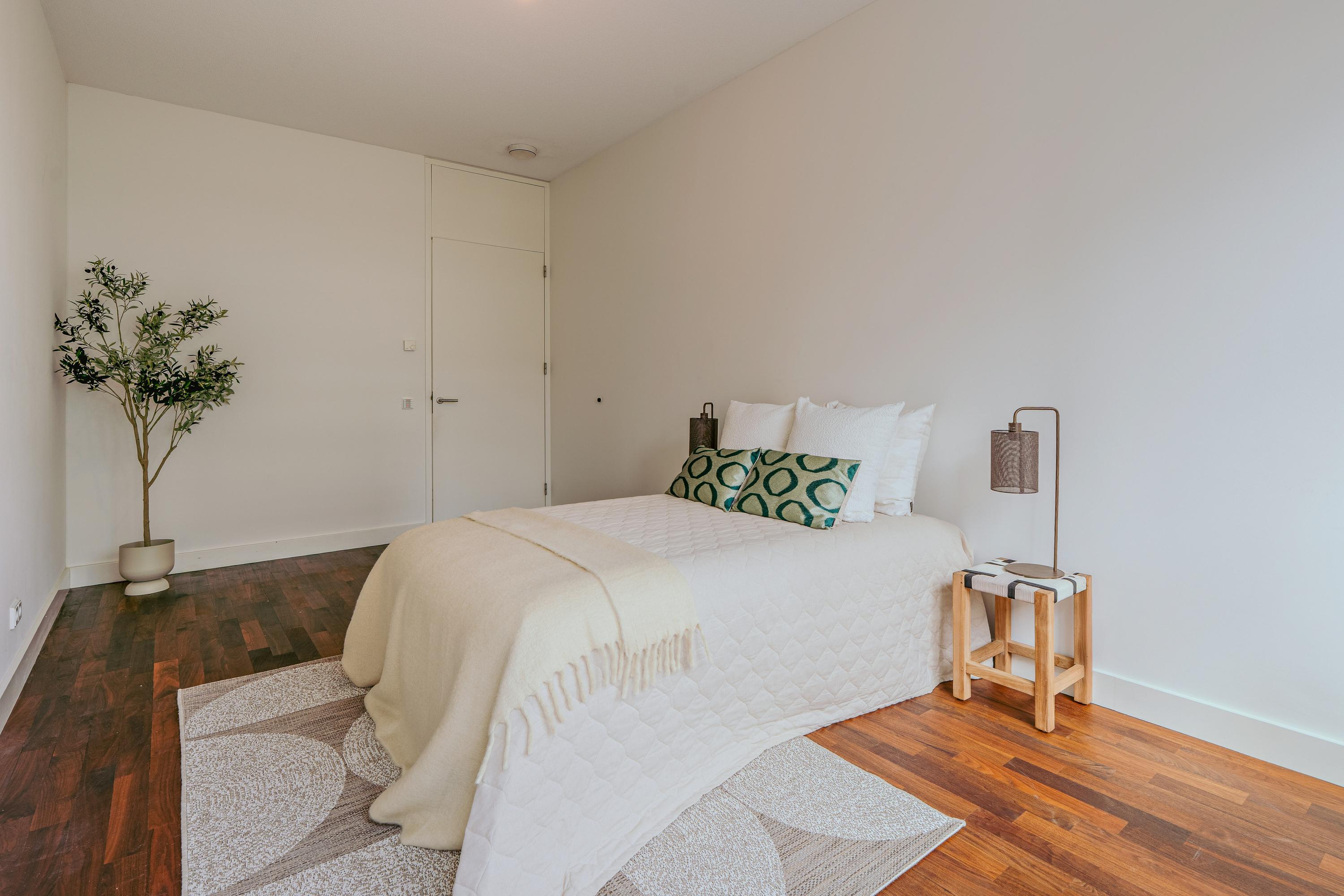 Das Raumerlebnis wird durch Panoramablicke und reichlich Tageslicht bestimmt, das durch bodentiefe Fenster sowohl im Wohnbereich als auch in den Schlafzimmern unterstrichen wird. Glasschiebetüren führen auf den Balkon und bieten eine Oase der Ruhe über dem Tempo der Zuidas. Die offene Küche ist mit Einbaugeräten ausgestattet, die keine kulinarischen Wünsche offenlassen, während das Hauptschlafzimmer einen ruhigen Wintergarten umfasst.