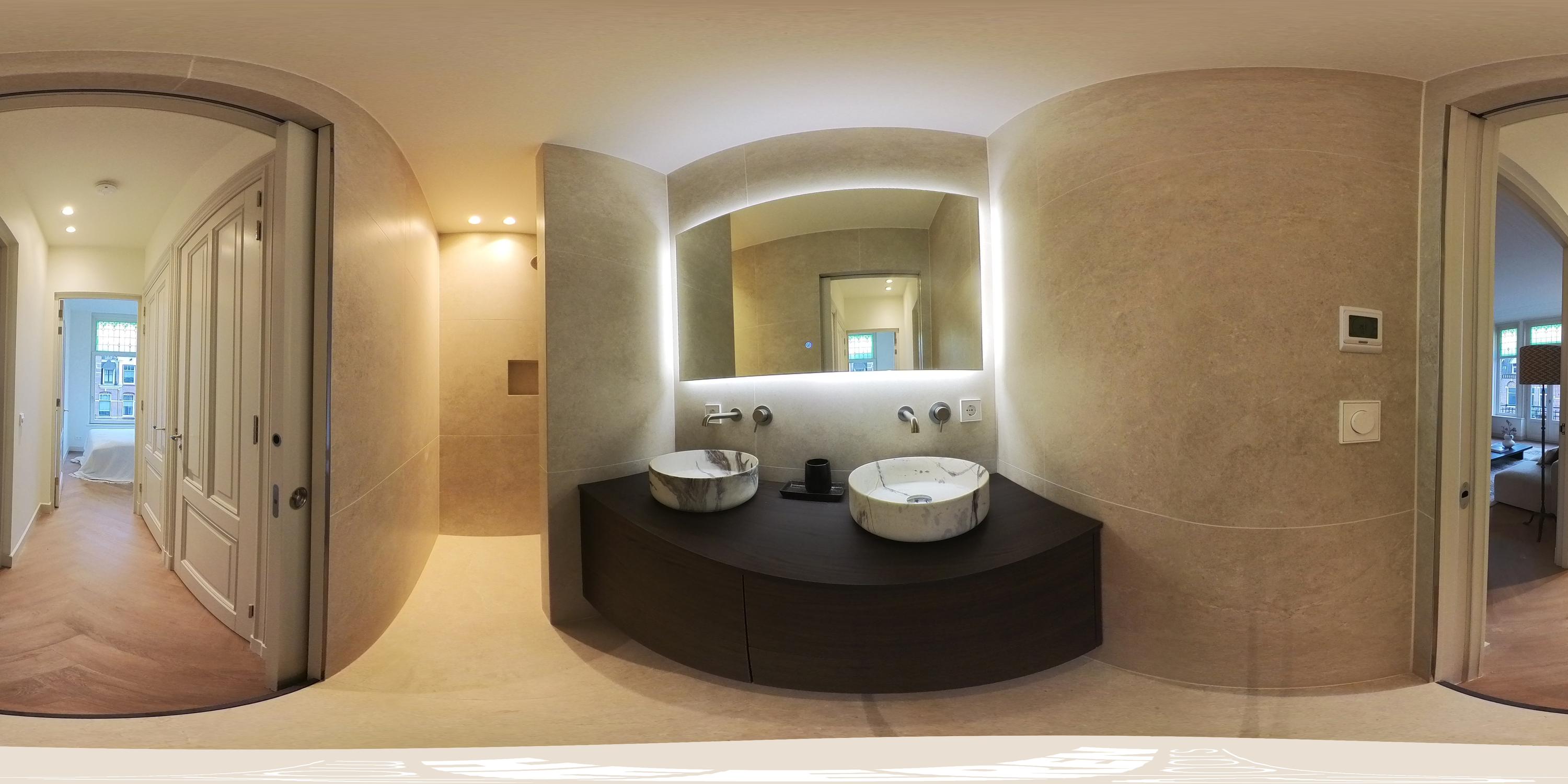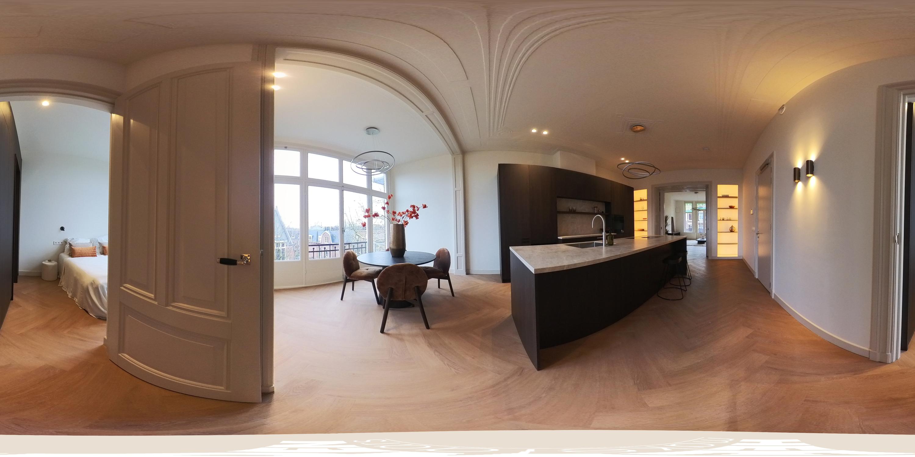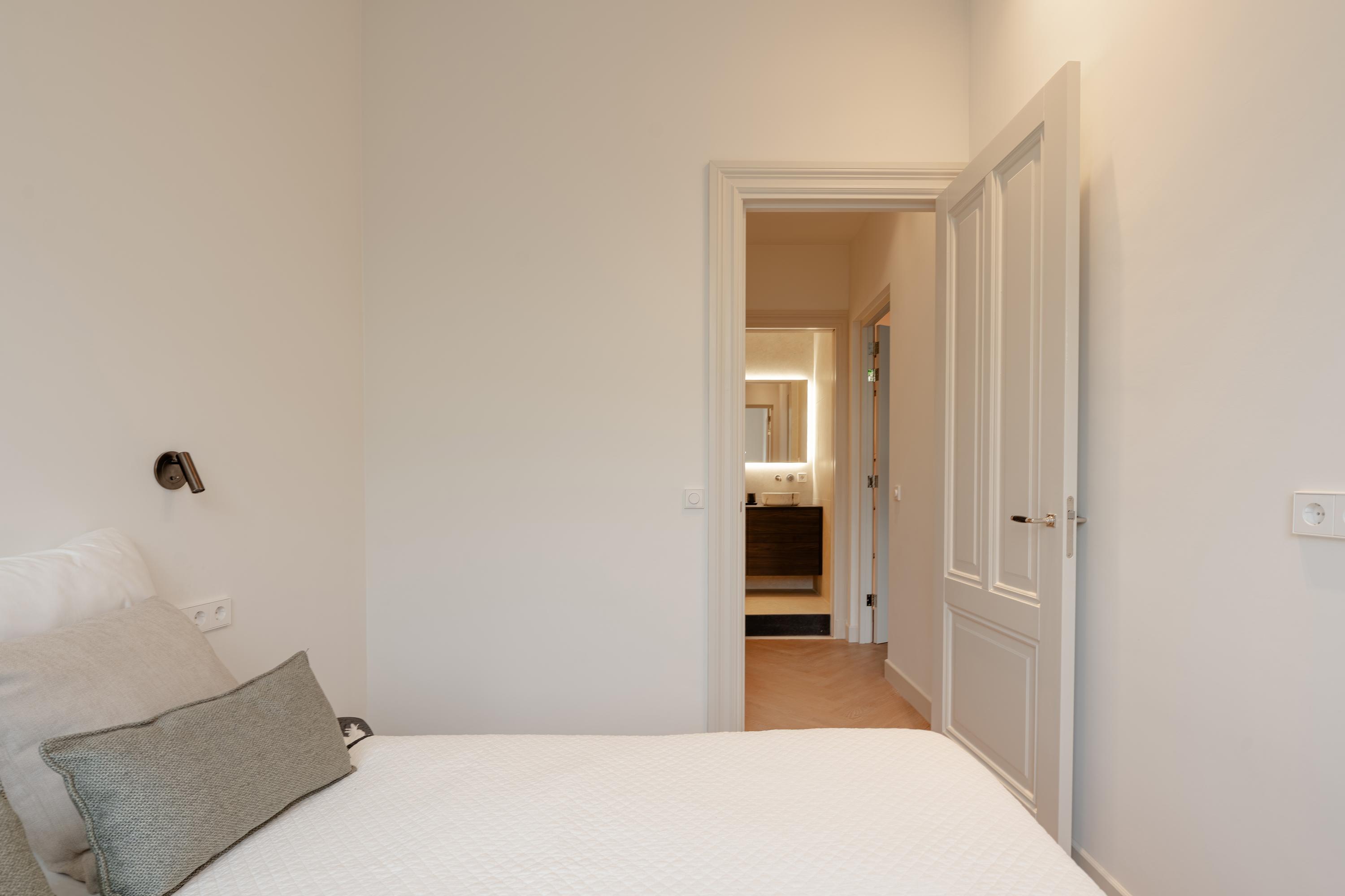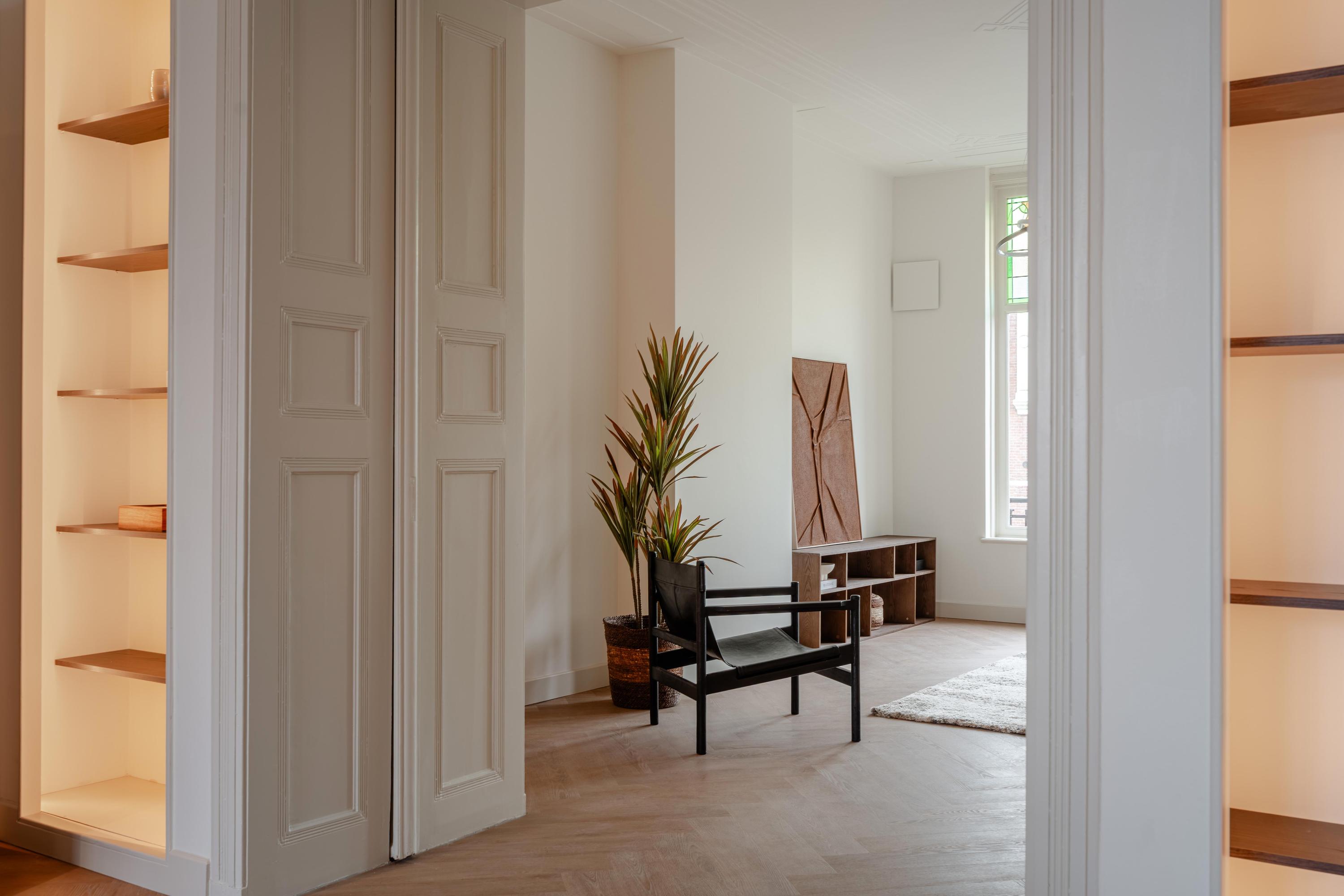 Ein Schlafzimmer mit eigenem Bad liegt ruhig zum Hinterhof, das zweite vorn mit angrenzendem Vollbad. Ein separater Hauswirtschaftsraum und ein Abstellraum werden durch einen eigenen, extern zugänglichen Stromzähler ergänzt. Mit exklusiven Einkaufsmöglichkeiten auf der Cornelis Schuytstraat sowie dem kulturellen Angebot des Museumsviertels und der Nähe zum Vondelpark verbindet diese Luxuswohnung modernen Komfort mit einem der begehrtesten Stadtteile Amsterdams.