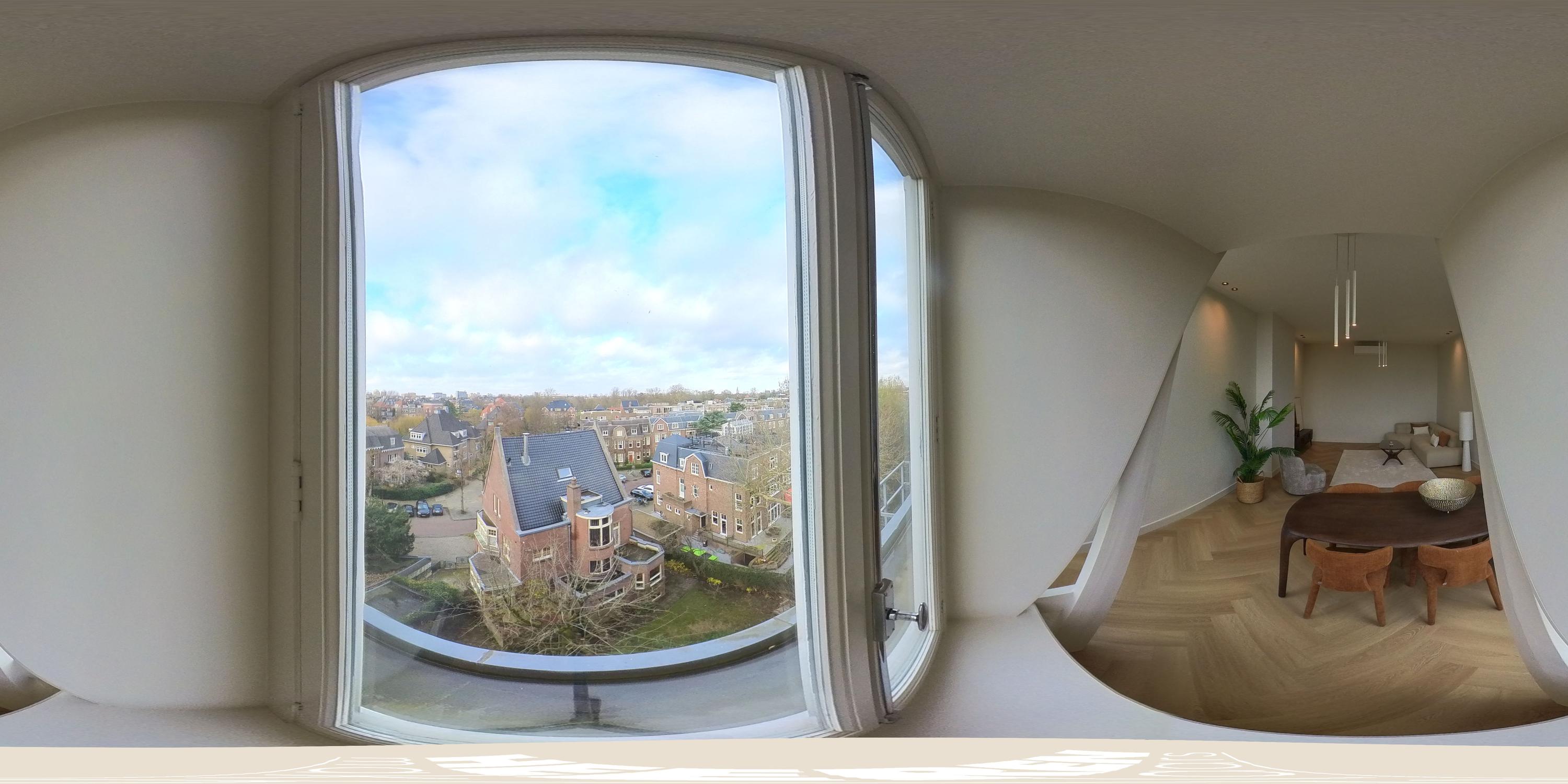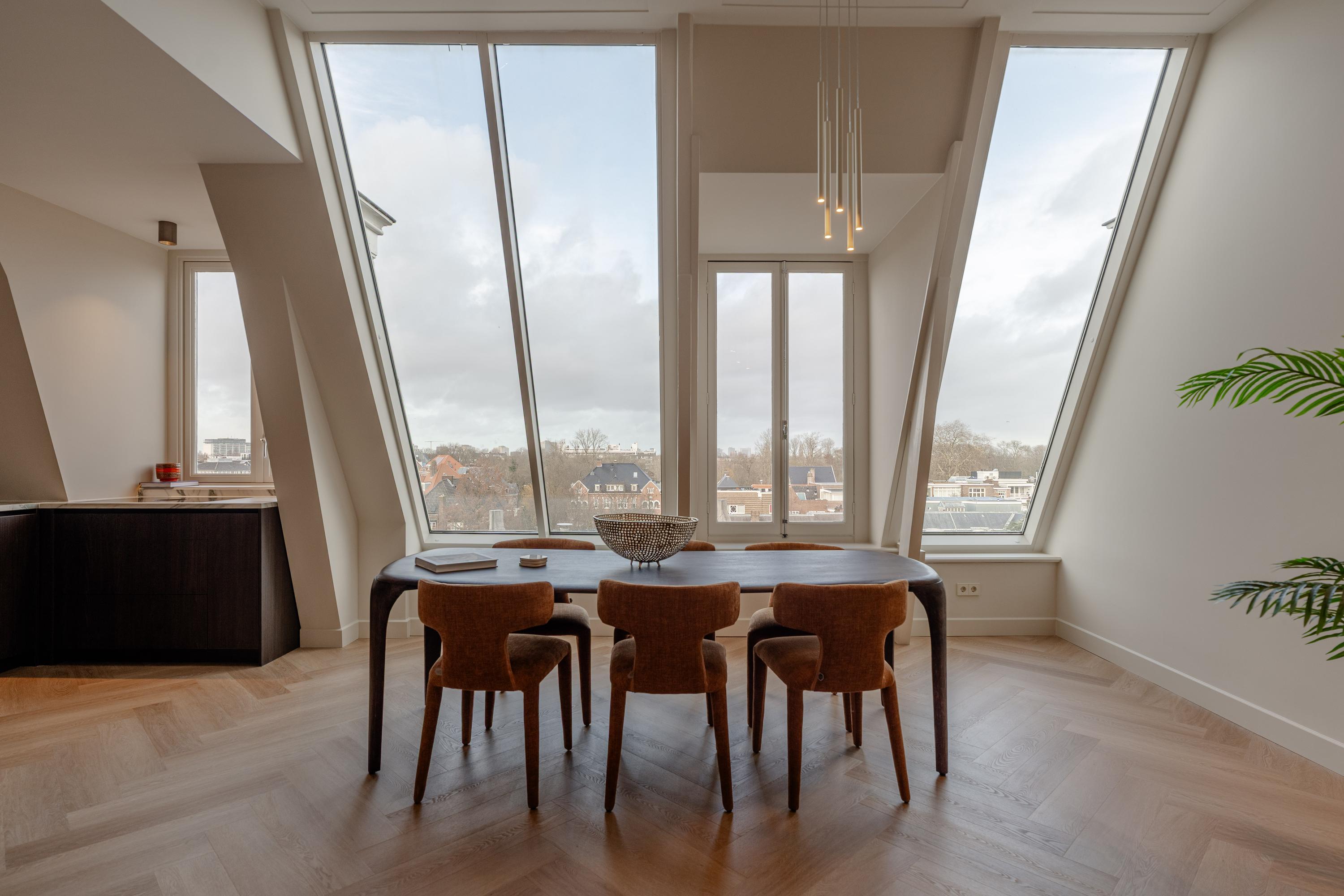 Das Apartment Amsterdam Oud-Zuid bietet ein anspruchsvolles Wohnerlebnis auf 102,4 m² Wohnfläche im vierten Stock einer eleganten Allee. Diese Wohnung im Amsterdam Oud-Zuid zeichnet sich durch hohe Decken und eine markante Dachkonstruktion aus, die im hinteren Bereich in großzügige Dachfenster mündet. Der Wohnbereich ist lichtdurchflutet und ermöglicht einen freien Blick auf die grüne Stadtkulisse, wodurch eine seltene Ruhe im Herzen der Stadt entsteht.