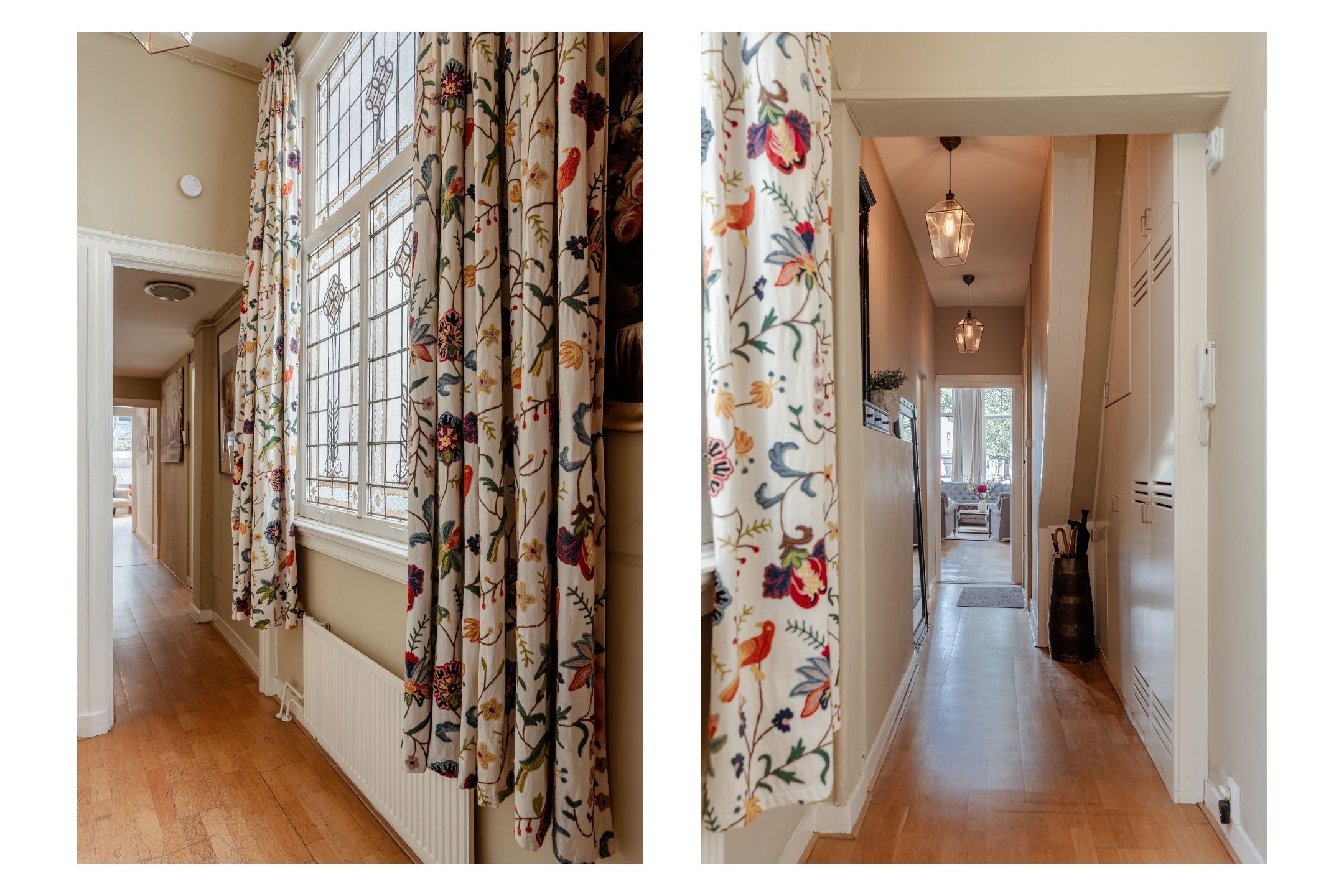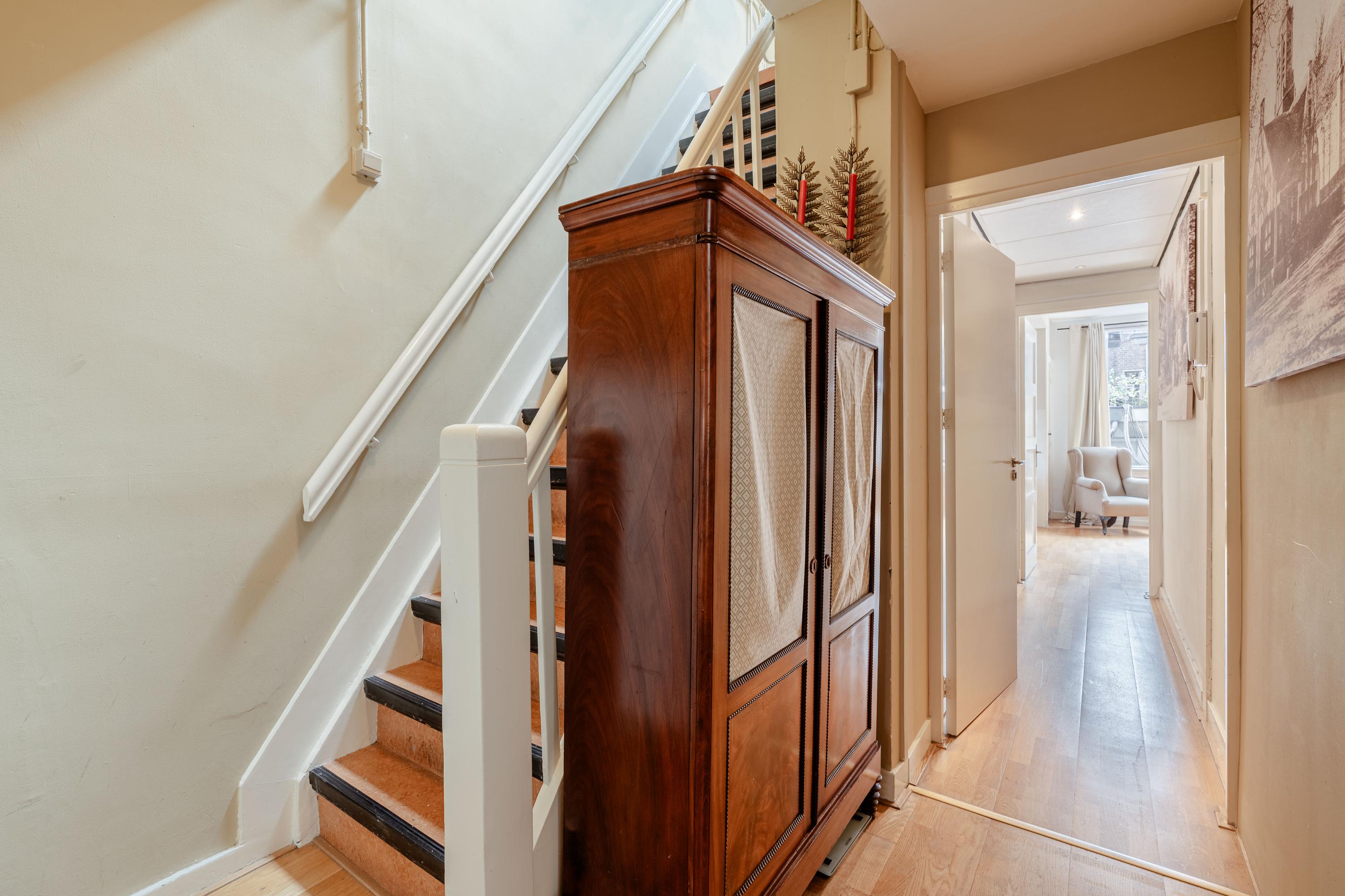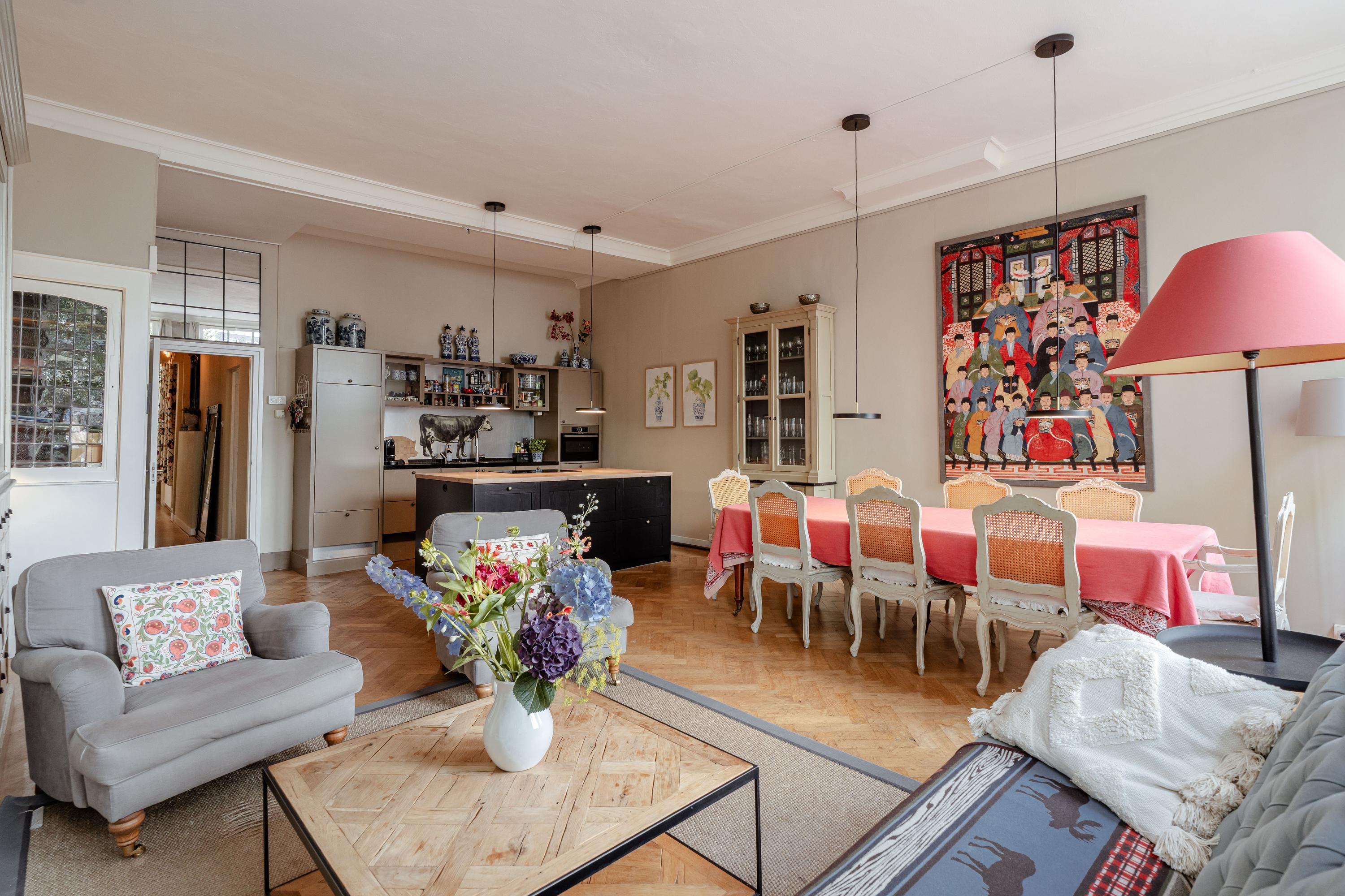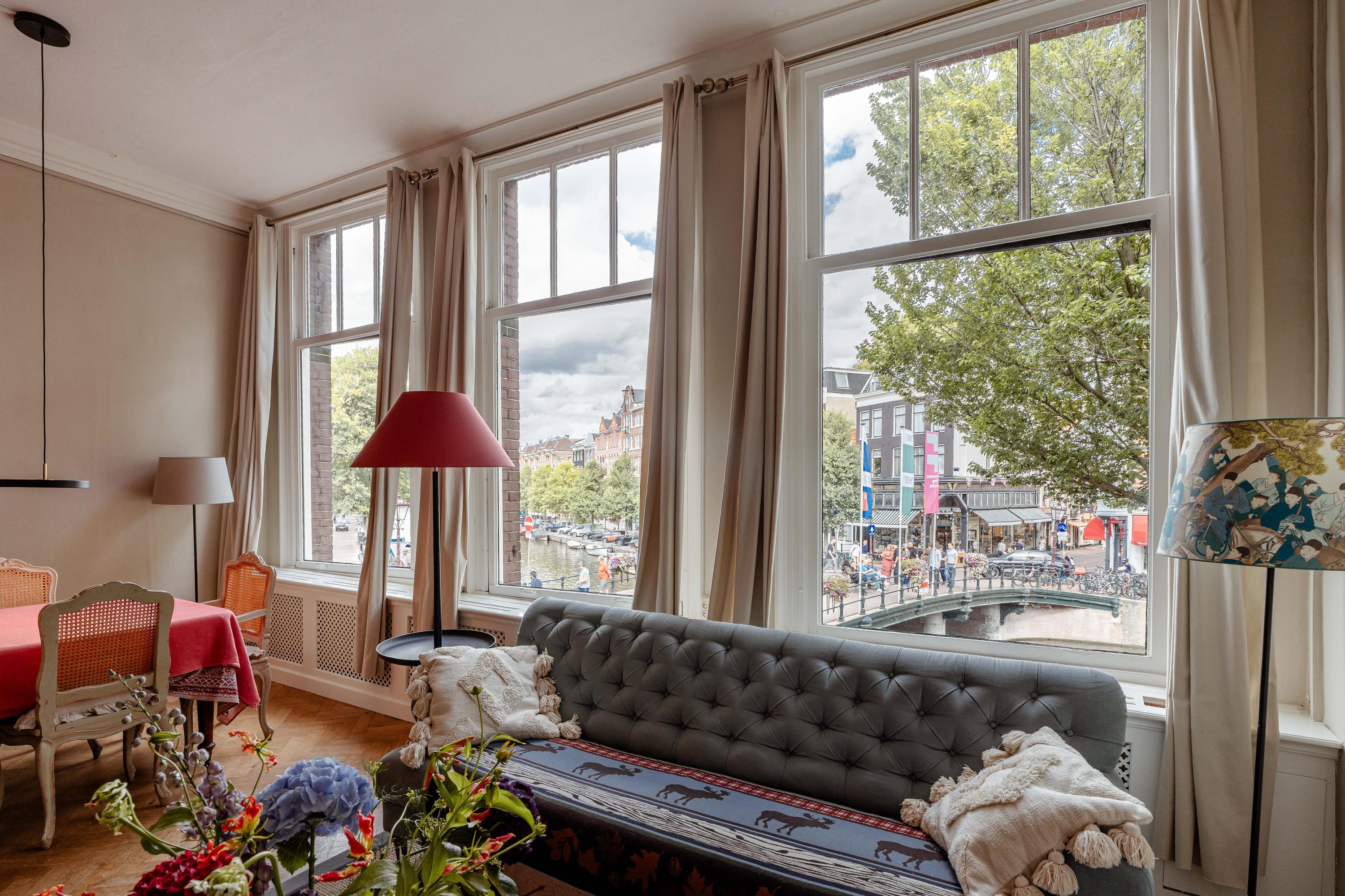 Sie betreten die Wohnung direkt von der Prinsengracht durch eine klassische Holztür neben Brooklyn Antiques. Im Inneren entfaltet sich ein großzügiger Raum mit hohen Decken und großen Fenstern, die ruhige Ausblicke auf die Gracht und natürliches Tageslicht ermöglichen. Die Hauptetage verbindet drei Schlafzimmer, darunter eine Suite mit eigenem Bad, sowie ein flexibles Arbeits- oder Wohnzimmer. Zwei weitere Bäder und Gästeeinrichtungen sorgen dafür, dass die Funktionalität die Großzügigkeit des Ambientes widerspiegelt.