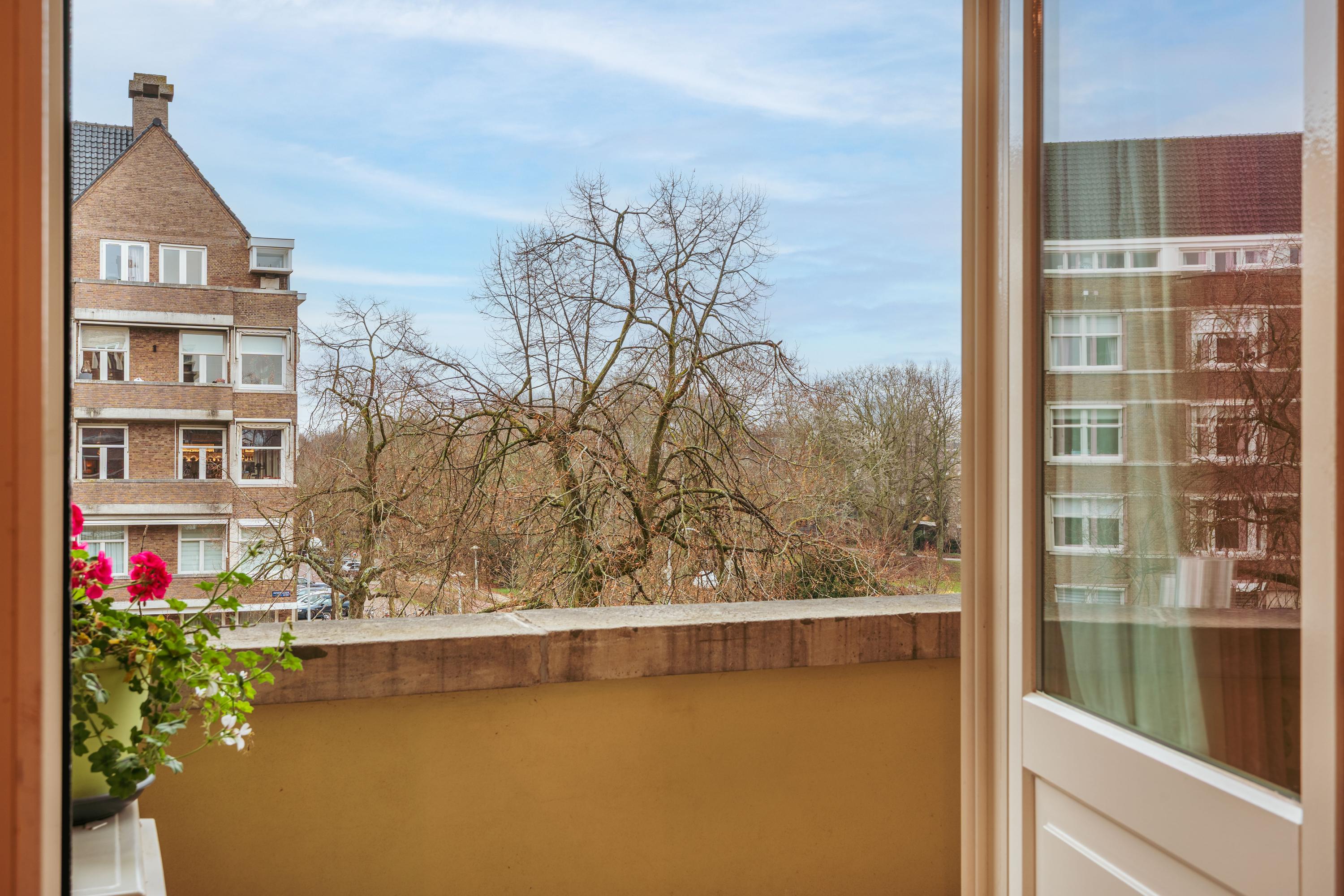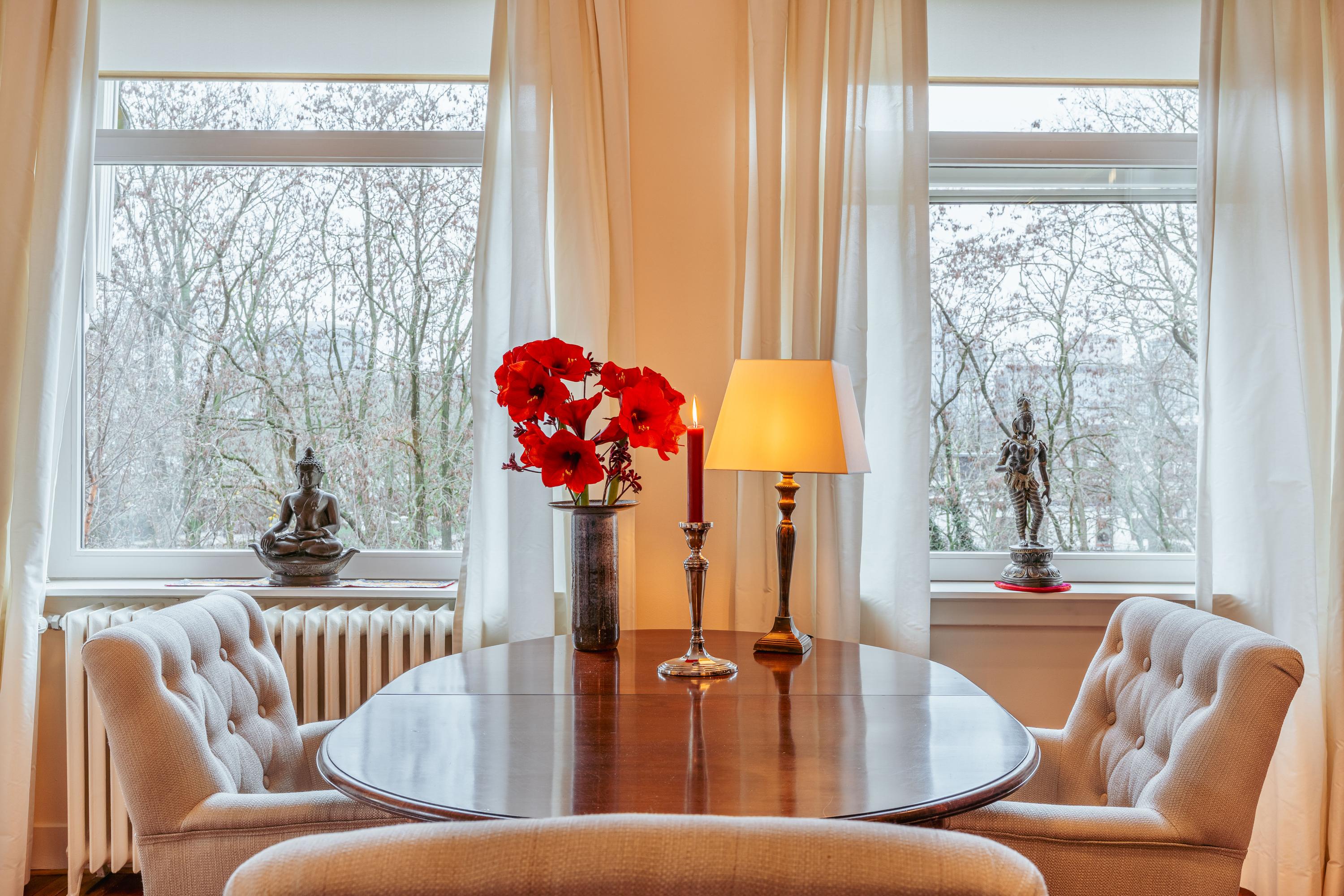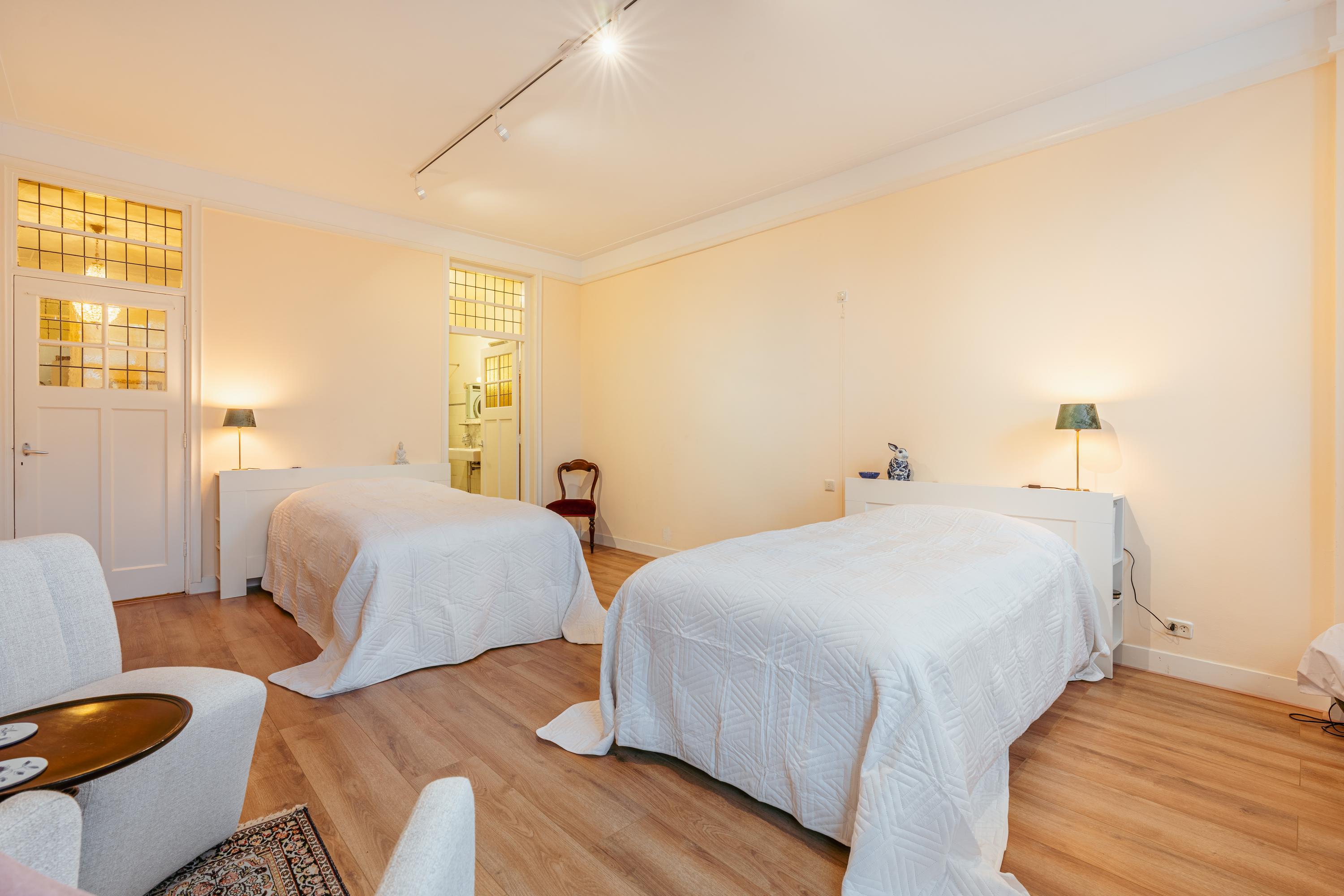 Das Apartment Amsterdam Zuid verkörpert eine harmonische Balance zwischen urbaner Lebendigkeit und entspanntem Wohnen am Wasser. Diese 120 m² große Eckwohnung befindet sich in den ruhigen Vierteln Stadion und Beethoven und bietet Ausblicke auf das Wasser und die Minervalaan. Großzügige Fensterfl ächen erfüllen die Räume mit Tageslicht und unterstreichen die großzügige Aufteilung. Das Apartment verfügt über ein helles Wohn- und Esszimmer mit Zugang zum Balkon, zwei Schlafzimmer, eine gut ausgestattete Küche mit Arbeitsplatte aus Holz sowie ein hochwertig ausgestattetes Badezimmer mit begehbarer Dusche und Doppelwaschbecken. Zeitgemäßer Komfort wird durch Annehmlichkeiten wie Aufzug, Doppelverglasung und Fernwärme gewährleistet, während ein privater Abstellraum von ca. 10 m² im vierten Stock zusätzlichen Stauraum bietet.