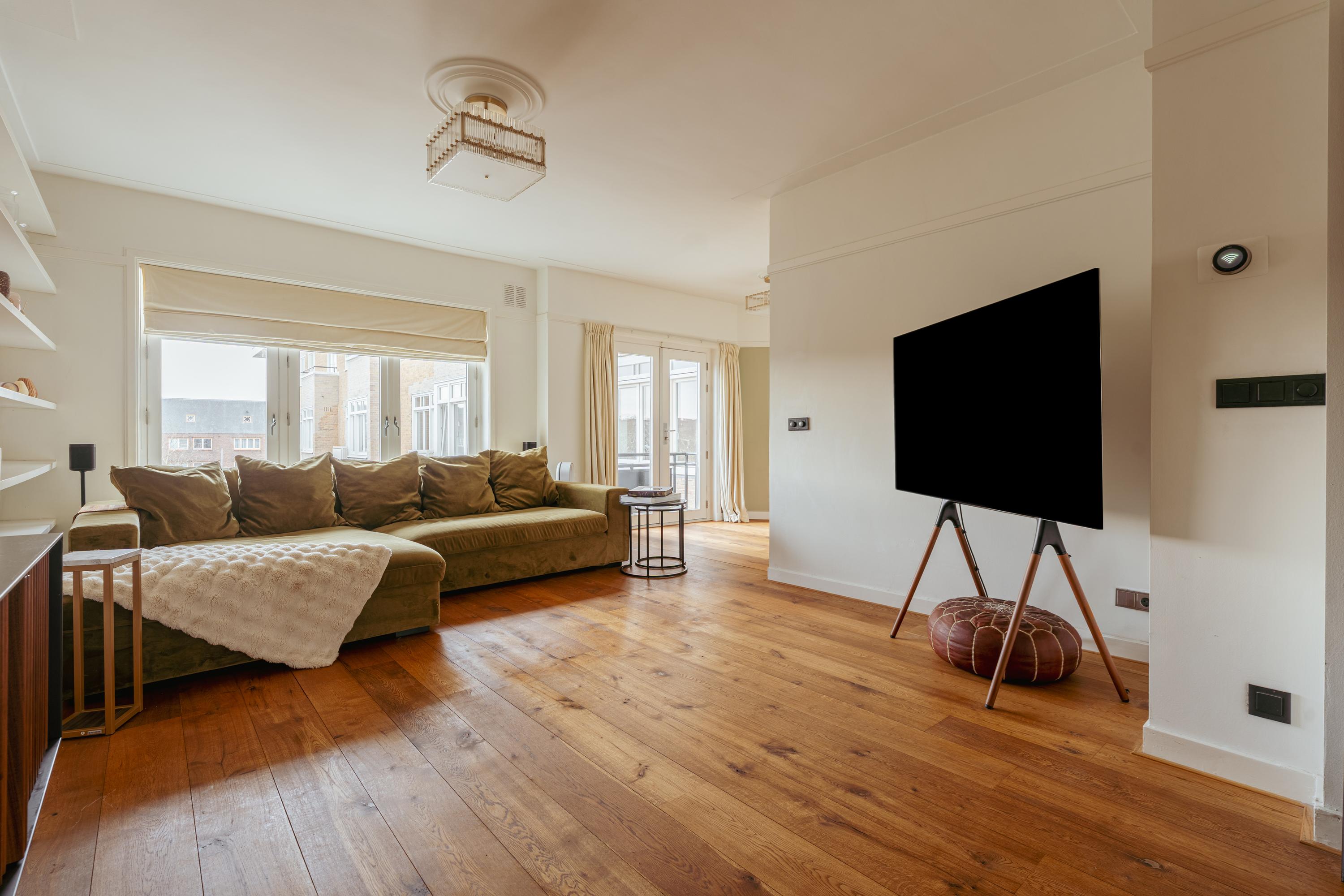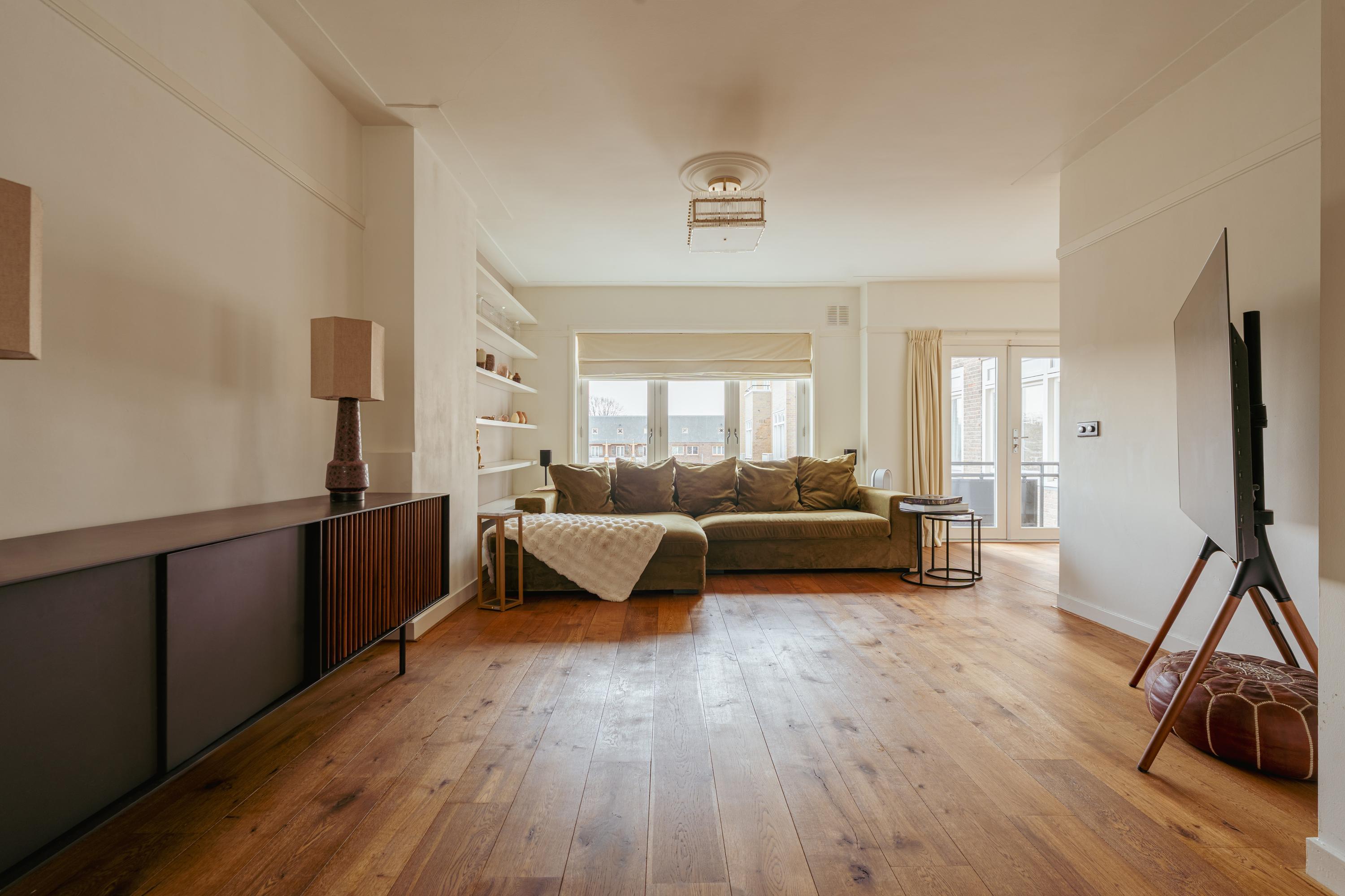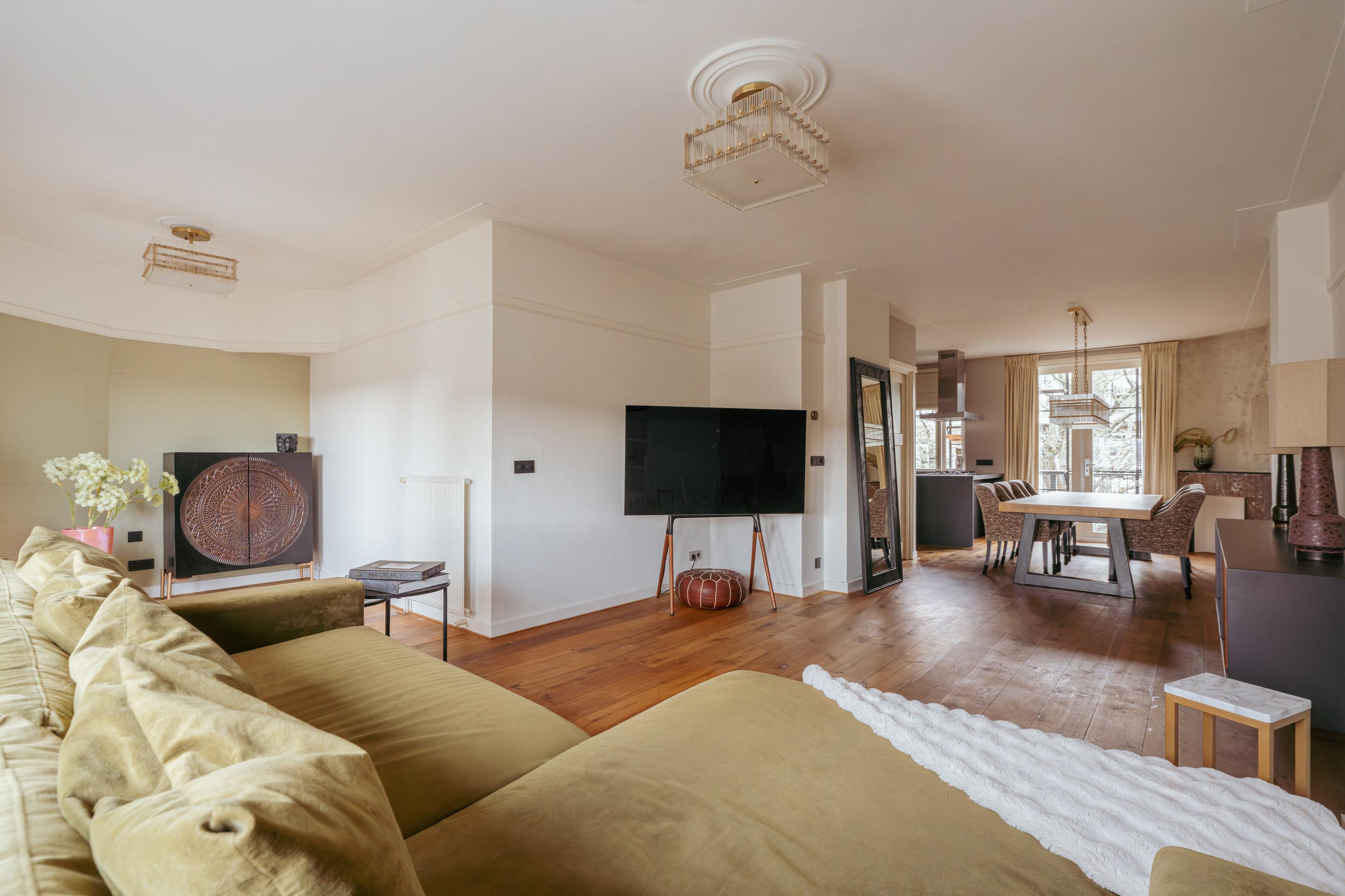 Apartment Amsterdam South präsentiert ein elegantes Maisonette-Obergeschossapartment von etwa 110 m², das durch großzügige Raumaufteilung und natürliches Licht die Bühne für zeitgemäßes Stadtleben setzt. Der offene Wohnbereich in L-Form mit Zugang zu einem französischen Balkon gibt den Blick auf den pulsierenden Stadionplein frei und bringt urbanes Leben ins Zentrum des Zuhauses.