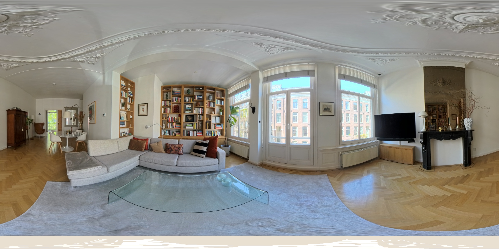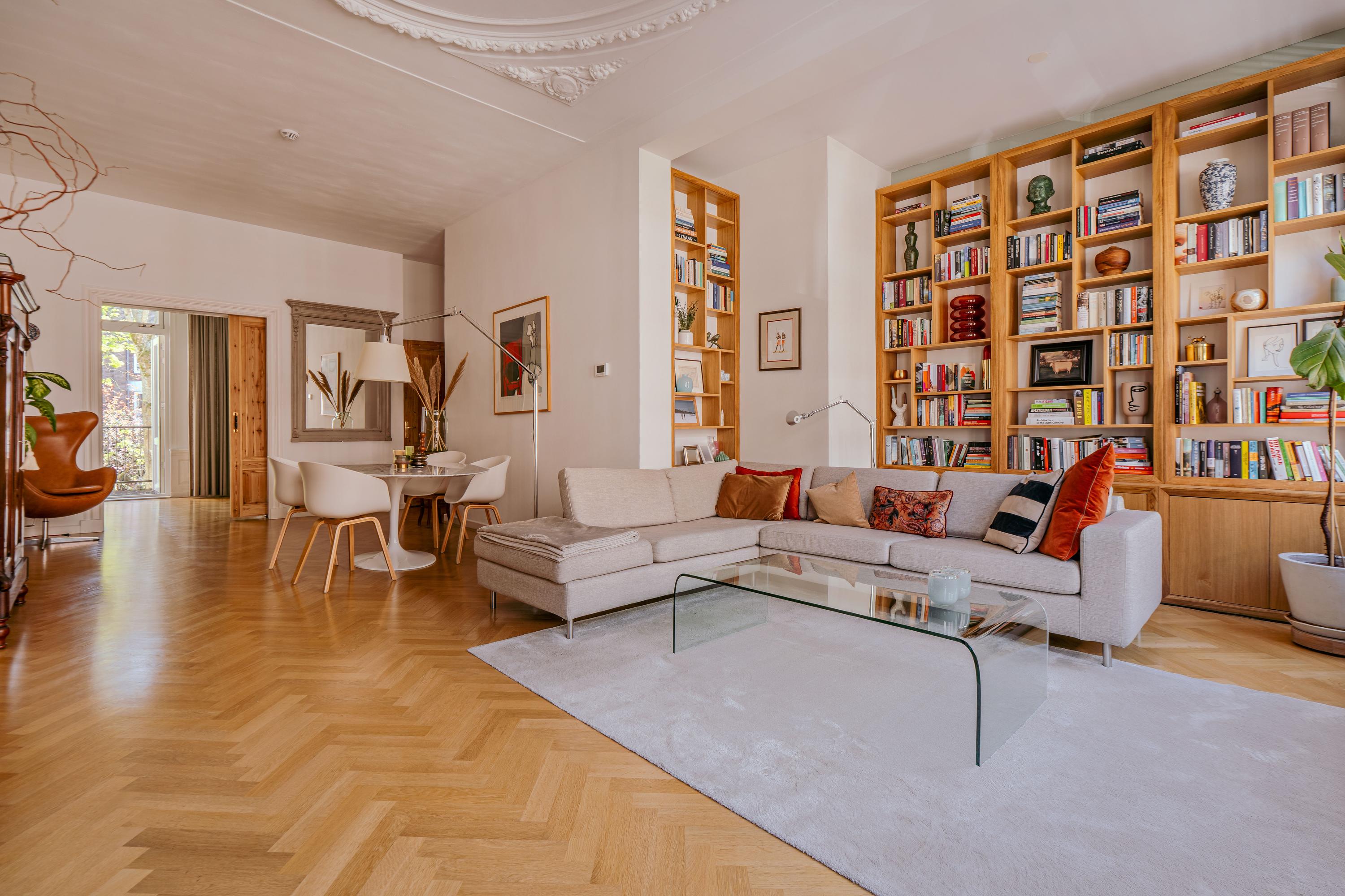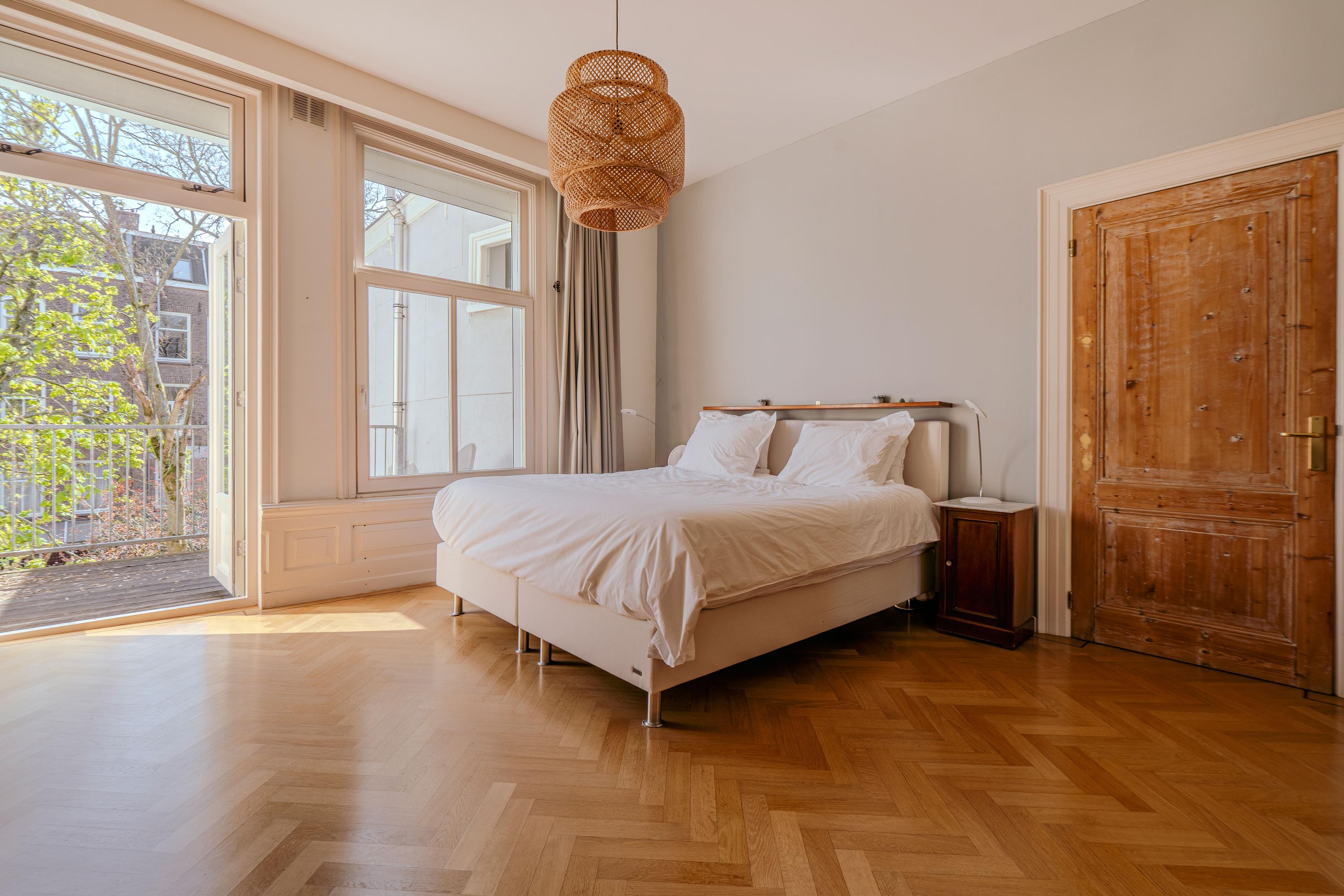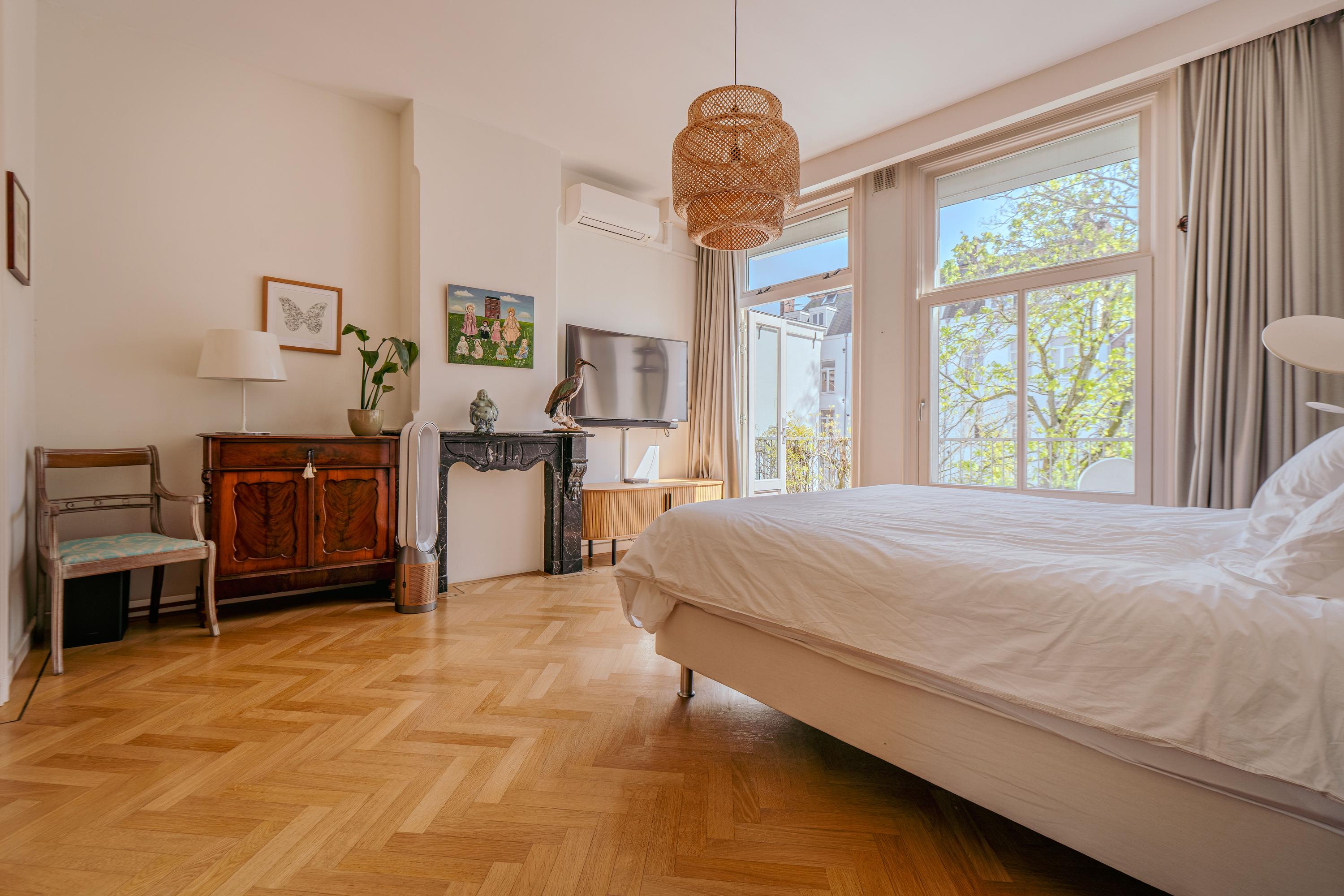 Das Apartment Amsterdam befindet sich in der Tweede Jan van der Heijdenstraat, einer begehrten Adresse in De Pijp, wo sich 223 m² Wohnfläche über drei durchdacht konfigurierte Etagen erstrecken. Diese Eigentumswohnung verbindet klassische Großzügigkeit mit zeitgemäßer Raffinesse und bietet vier Schlafzimmer, ein Homeoffice sowie eine separate Ankleide. Hohe Decken und große Fenster schaffen ein Gefühl von Offenheit und Licht, während ausgewählte Balkone und eine großzügige Dachterrasse von 23 m² den Blick über die Stadt und die Amstel freigeben und bis in die Abendstunden Sonnenlicht einfangen.