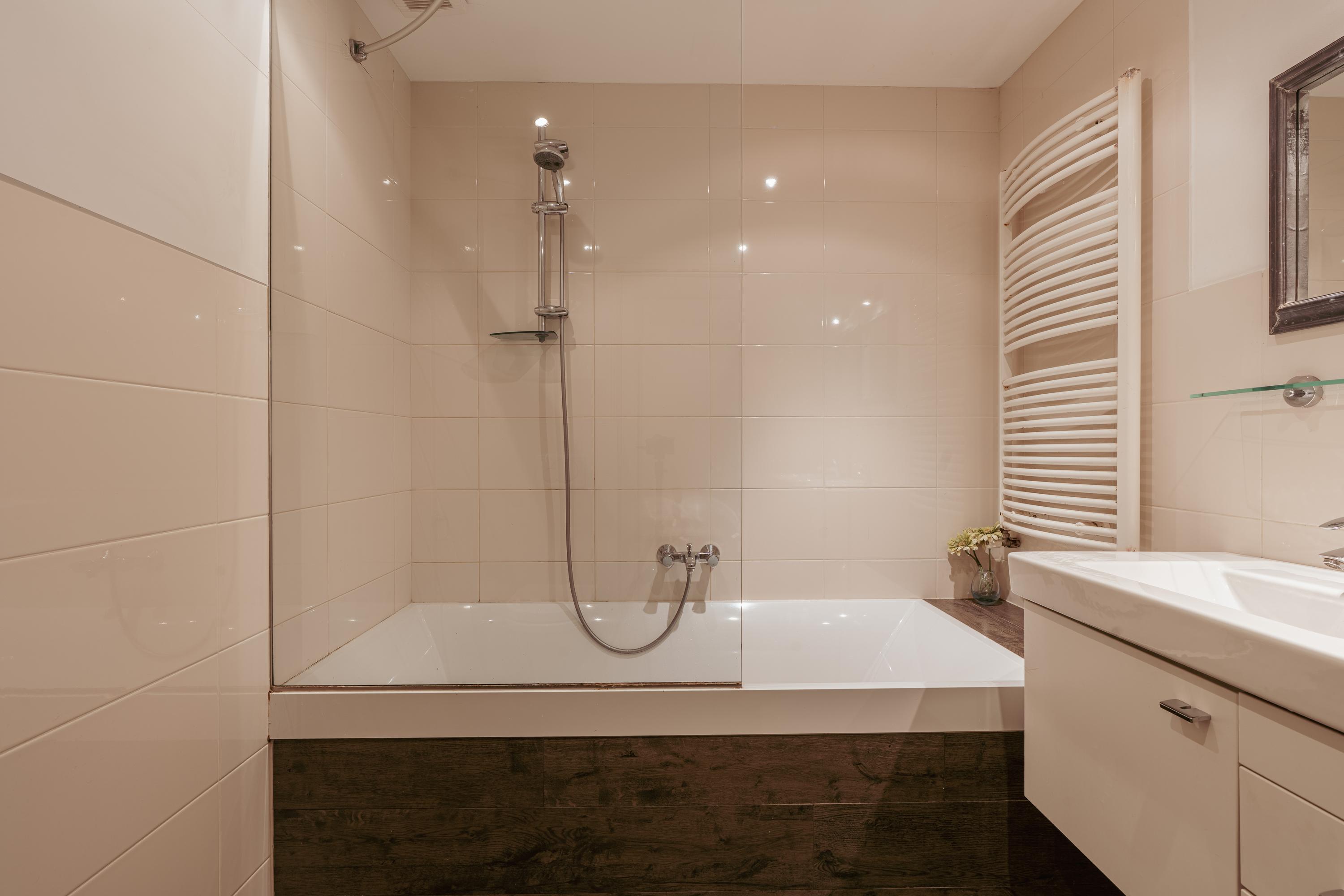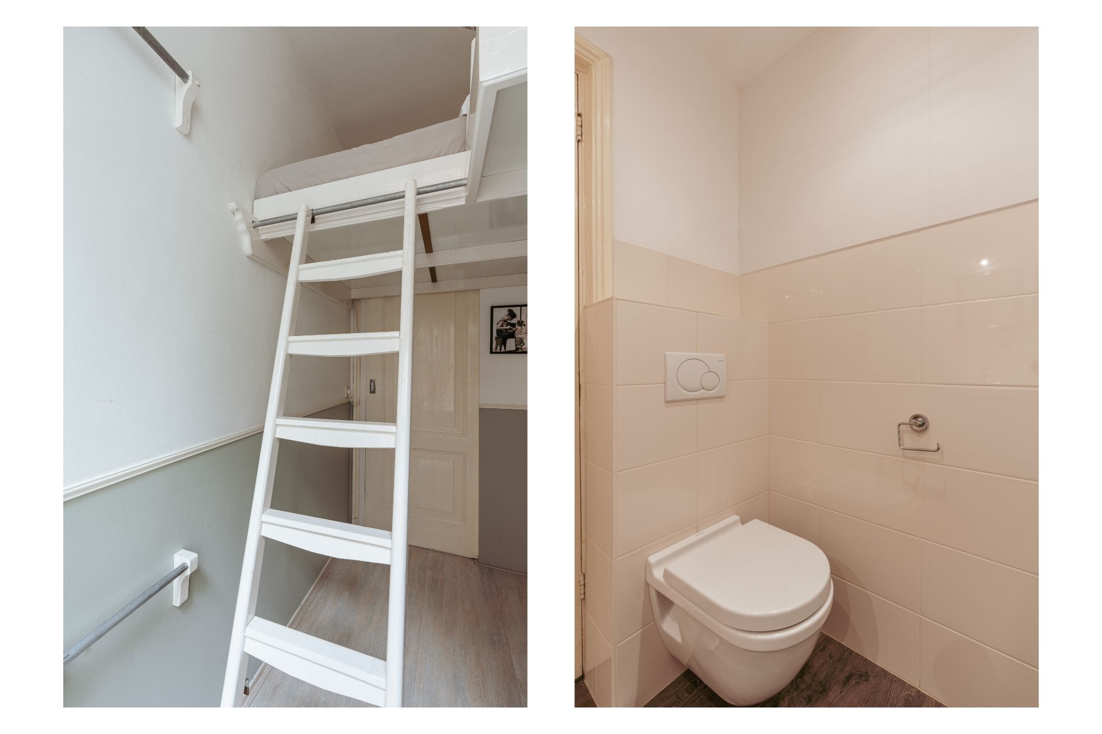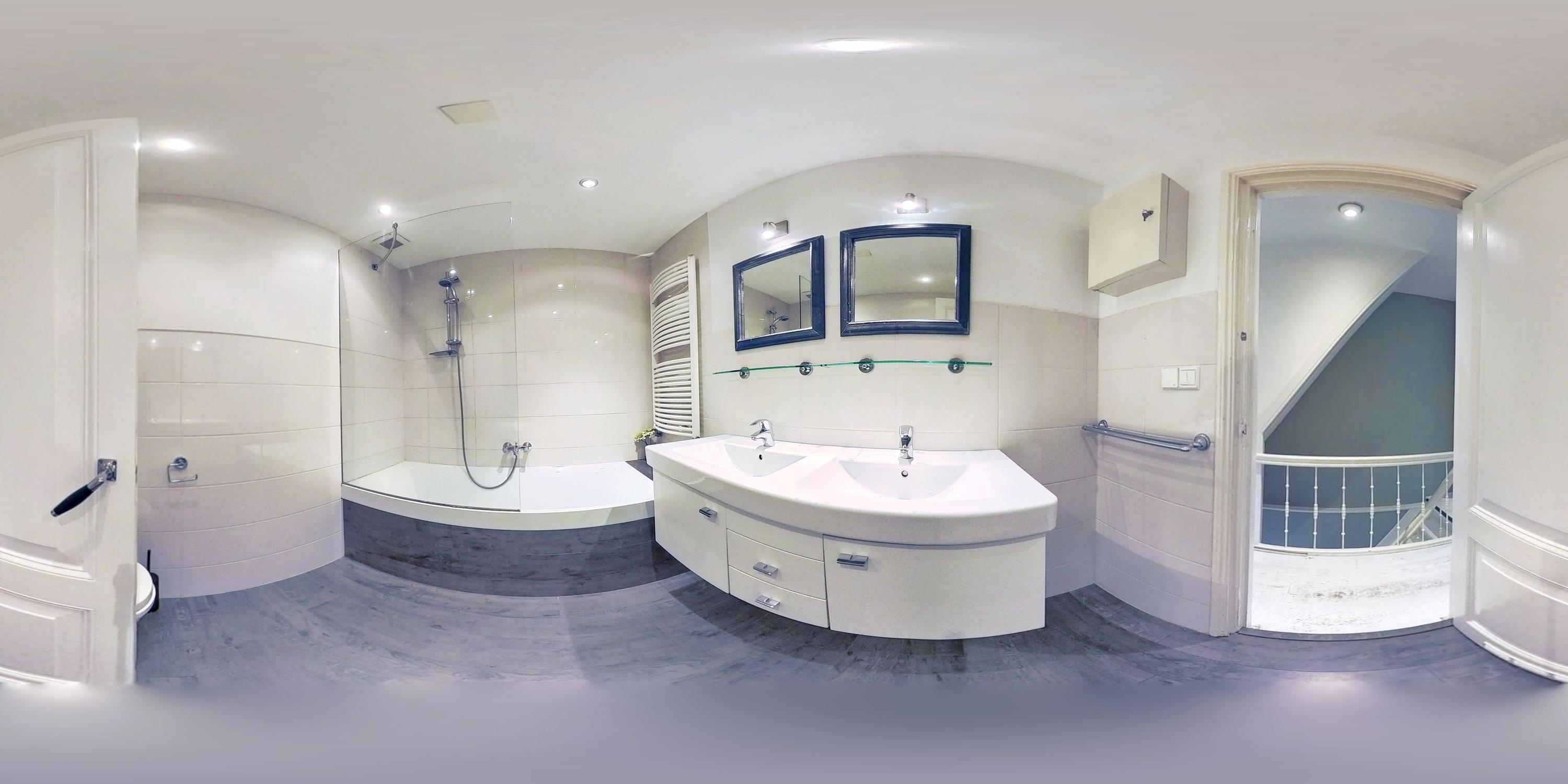 The landing provides access to three bedrooms and the centrally located bathroom. At the rear you will find the spacious master bedroom with an impressive ceiling height of no less than 3 meters, creating a wonderful sense of space. At the front there is a second generously sized bedroom, as well as a third bedroom ideal as a child’s room or home office. The centrally located bathroom is equipped with a bathtub with shower, washbasin cabinet, and toilet. Thanks to several built-in cupboards, this floor offers ample storage space.