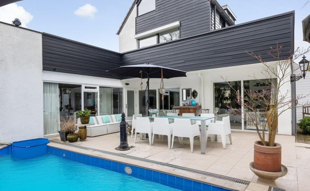 Im Inneren überzeugt die Villa mit Flexibilität. Das Erdgeschoss umfasst separate Wohn-, Garten- und Hauswirtschaftsräume sowie ein Büro, das ungestörtes Arbeiten oder die Nutzung als Zweitbüro ermöglicht. Im Obergeschoss öffnet sich die Mastersuite zu einer L-förmigen Terrasse, ergänzt durch maßgeschneiderte Einbauschränke und ein ensuite Badezimmer mit Marmorakzenten. Ein kürzlich renoviertes zweites Badezimmer sorgt für zeitgemäßen Komfort. Weitere Schlafzimmer, darunter zwei im lichtdurchfluteten Dachbereich, passen sich unterschiedlichen Lebensphasen an und werden durch umfassende Dämmung, Klimaanlage und effiziente Heizung unterstützt.