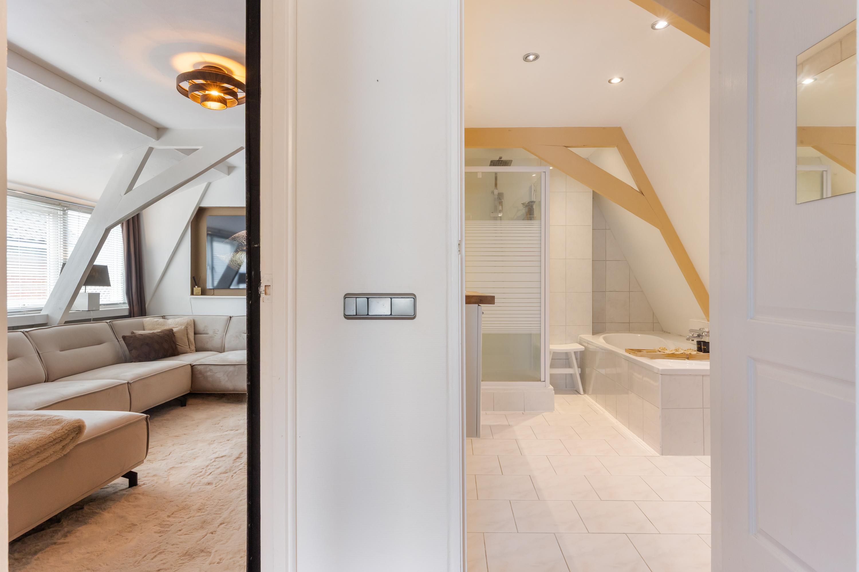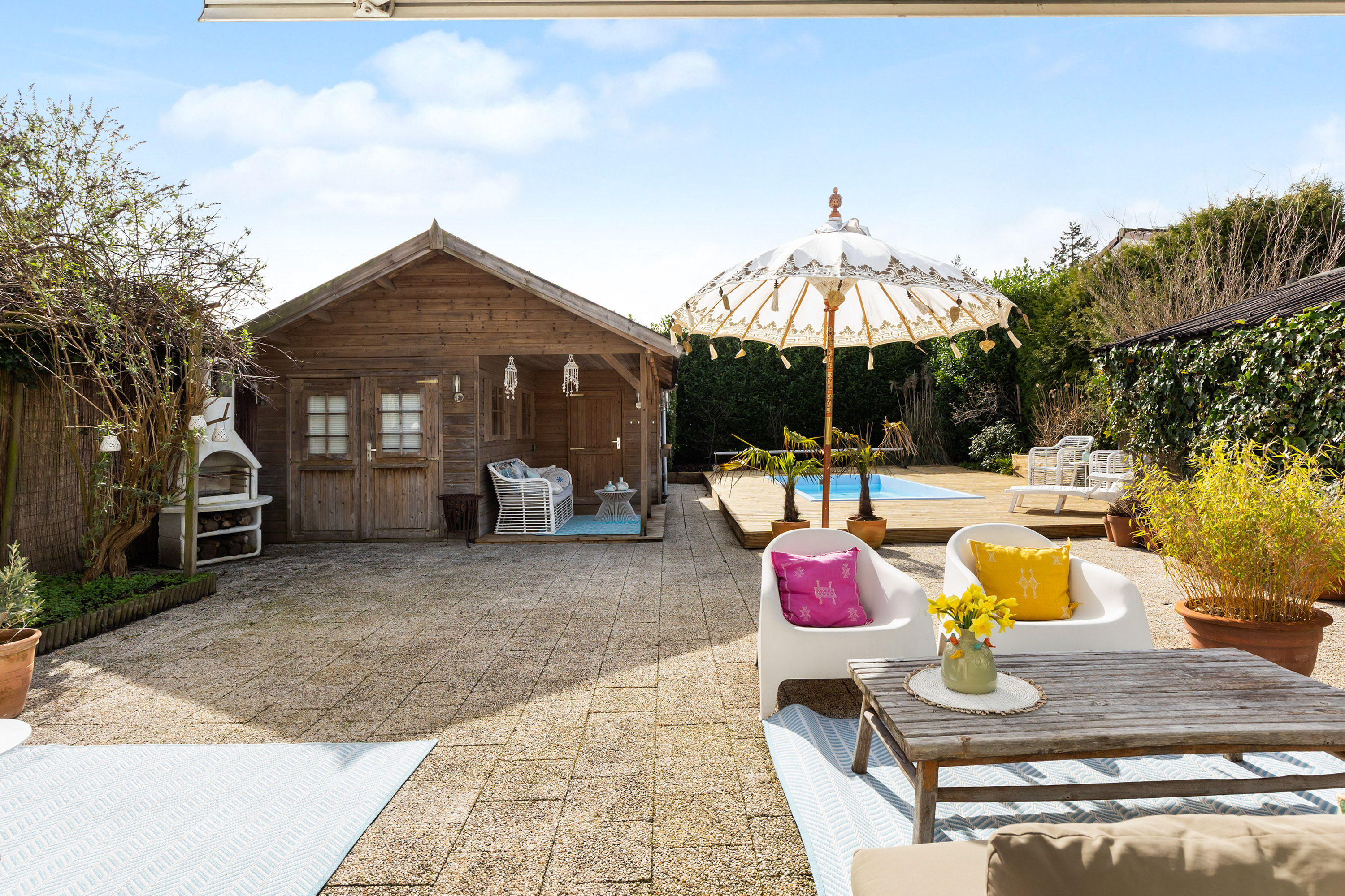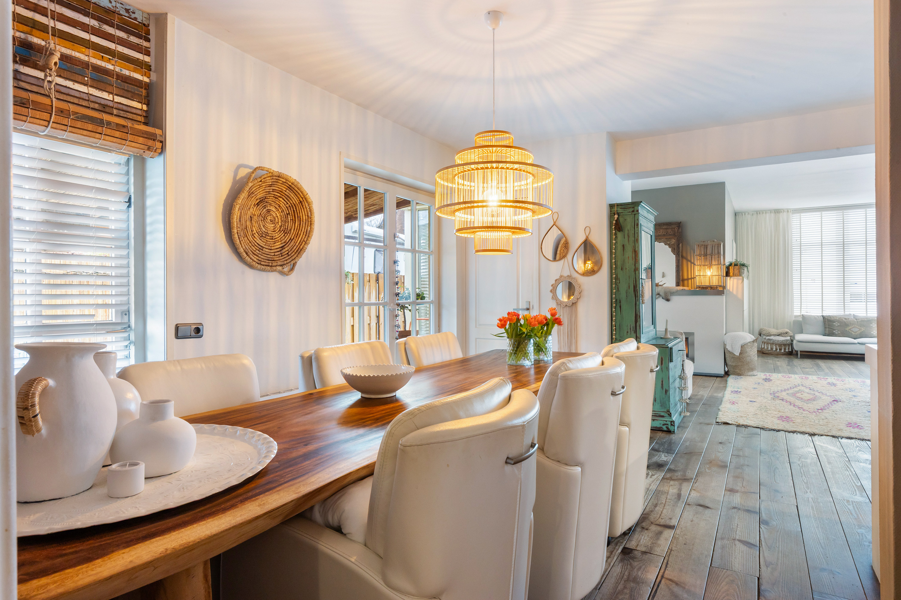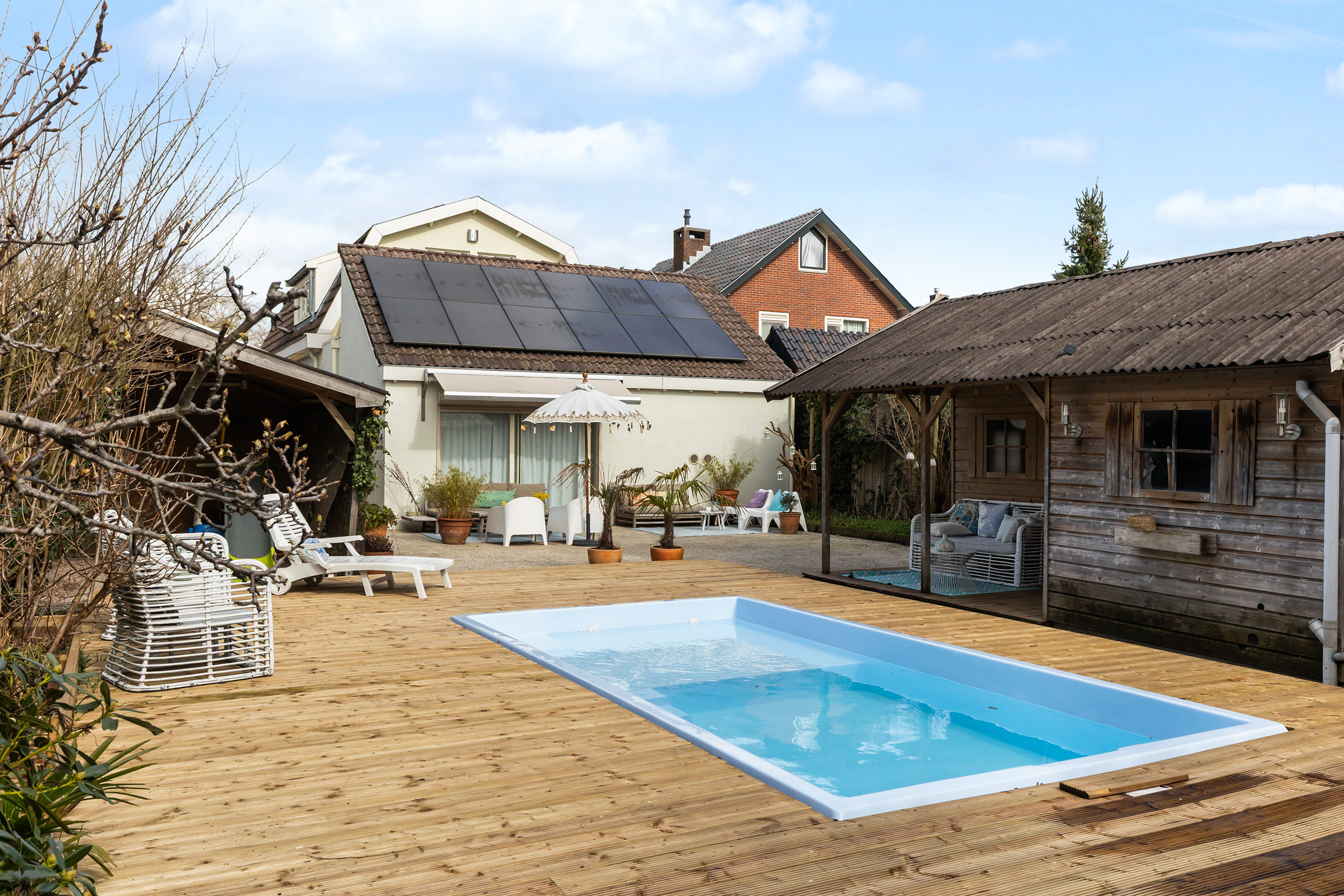 Die freistehende Villa Apeldoorn bietet eine gelungene Verbindung aus historischer Architektur und zeitgenössischem, von Ibiza inspiriertem Stil in ruhiger, grüner Wohnlage nahe Schloss Het Loo und den Wäldern der Veluwe. Ursprünglich 1910 mit charakteristischem Knickdach erbaut und 2005 erweitert, steht dieses Anwesen auf einem 668 m² großen Grundstück und entfaltet auf 188 m² Wohnfläche ein harmonisches Gleichgewicht zwischen Geborgenheit und überraschender Großzügigkeit.