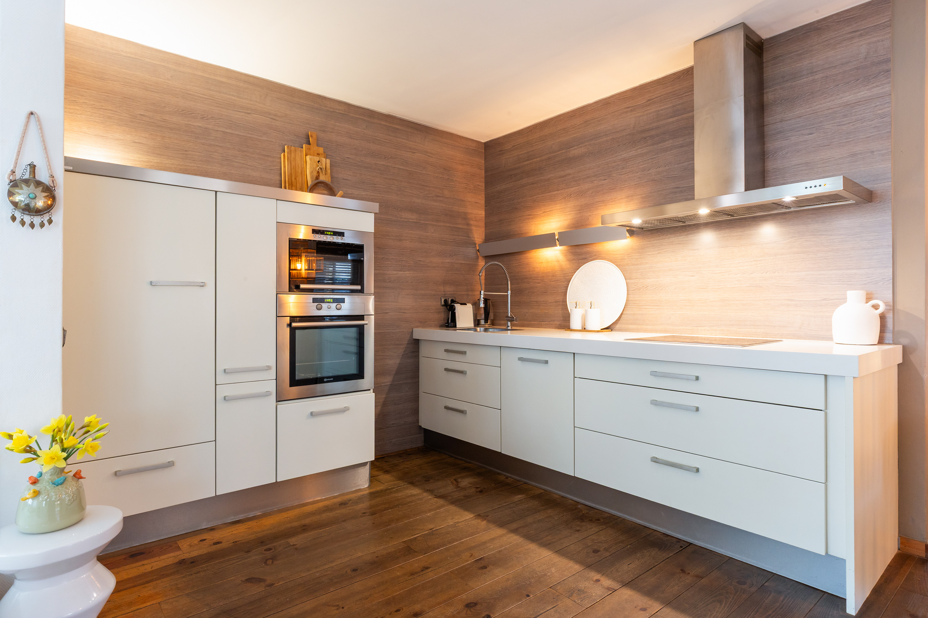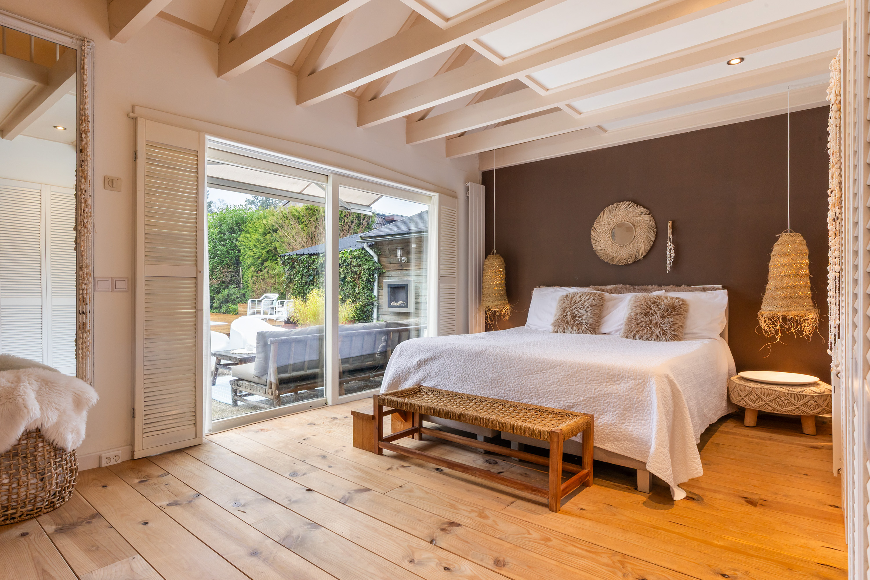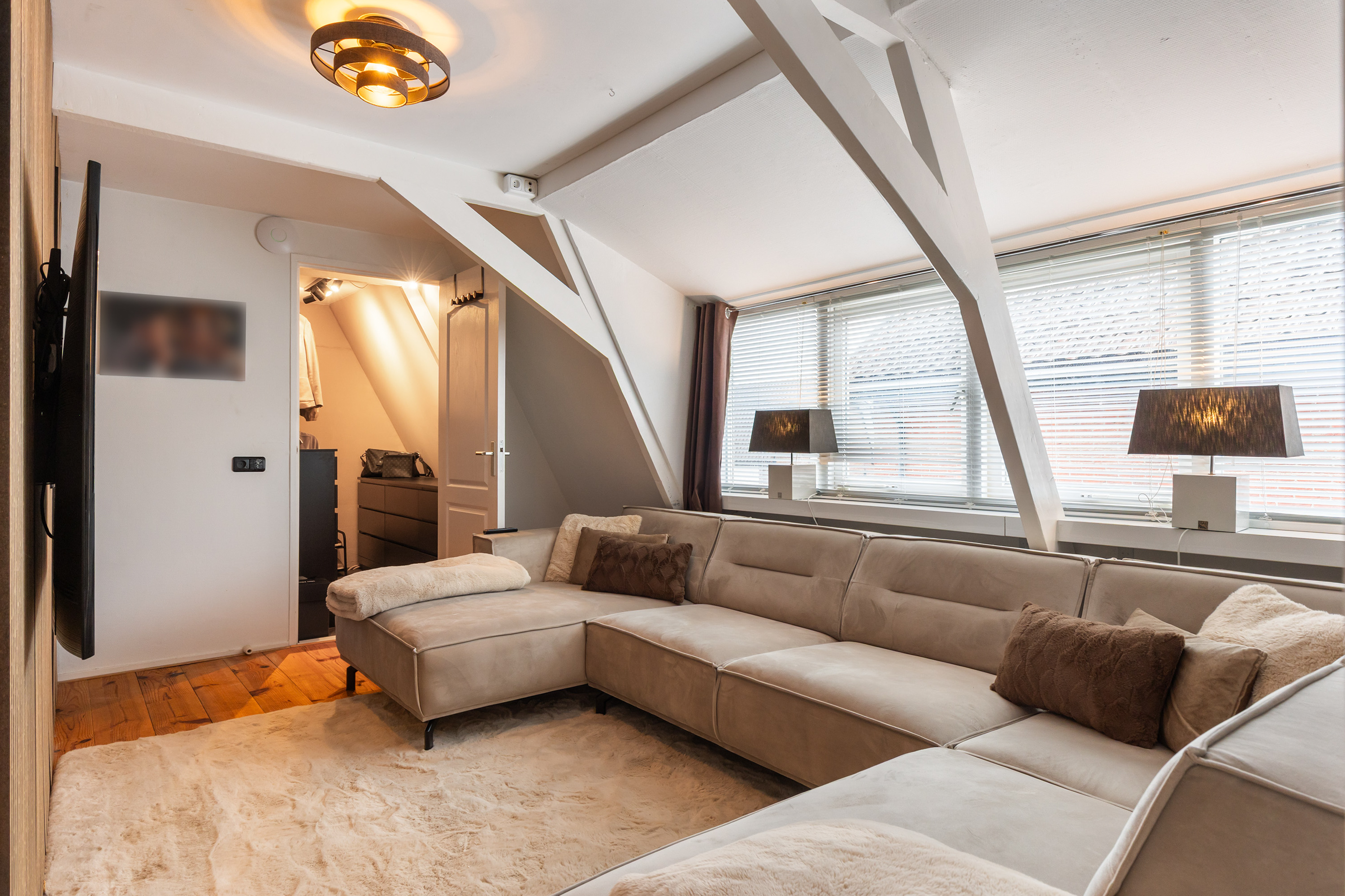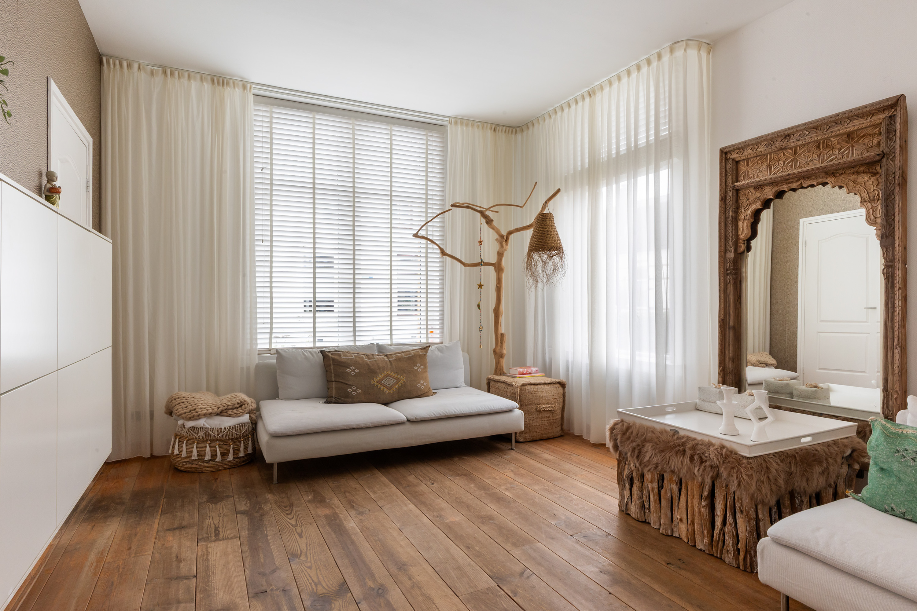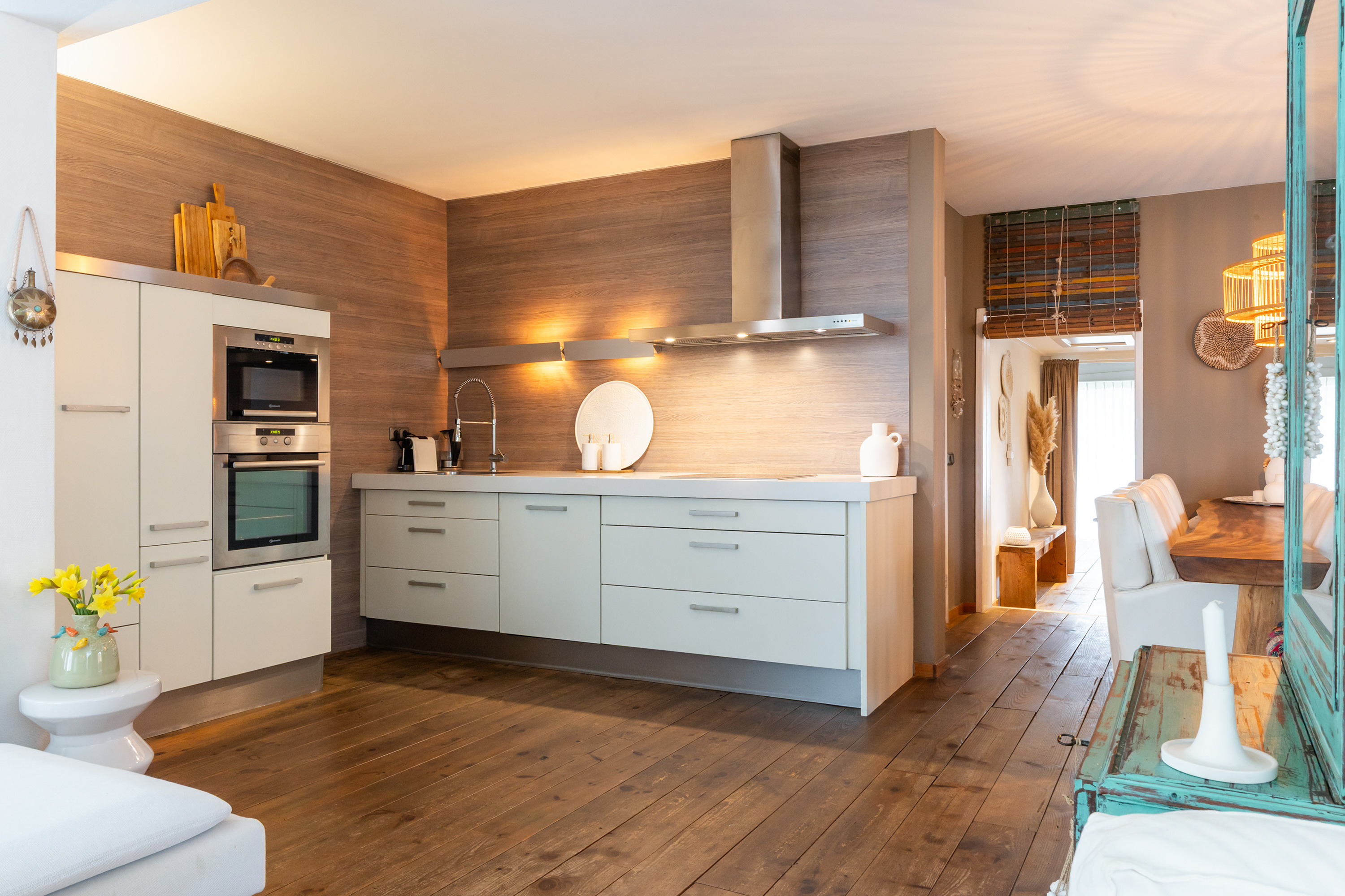 Die freistehende Villa Apeldoorn bietet eine gelungene Verbindung aus historischer Architektur und zeitgenössischem, von Ibiza inspiriertem Stil in ruhiger, grüner Wohnlage nahe Schloss Het Loo und den Wäldern der Veluwe. Ursprünglich 1910 mit charakteristischem Knickdach erbaut und 2005 erweitert, steht dieses Anwesen auf einem 668 m² großen Grundstück und entfaltet auf 188 m² Wohnfläche ein harmonisches Gleichgewicht zwischen Geborgenheit und überraschender Großzügigkeit.