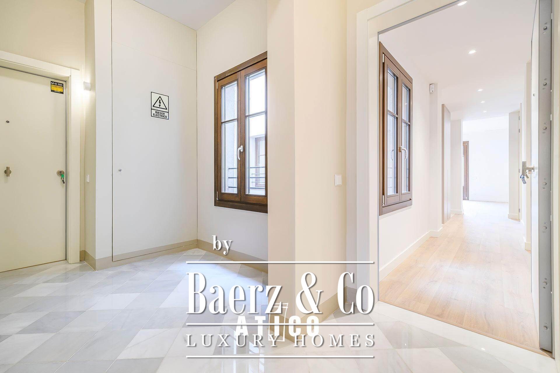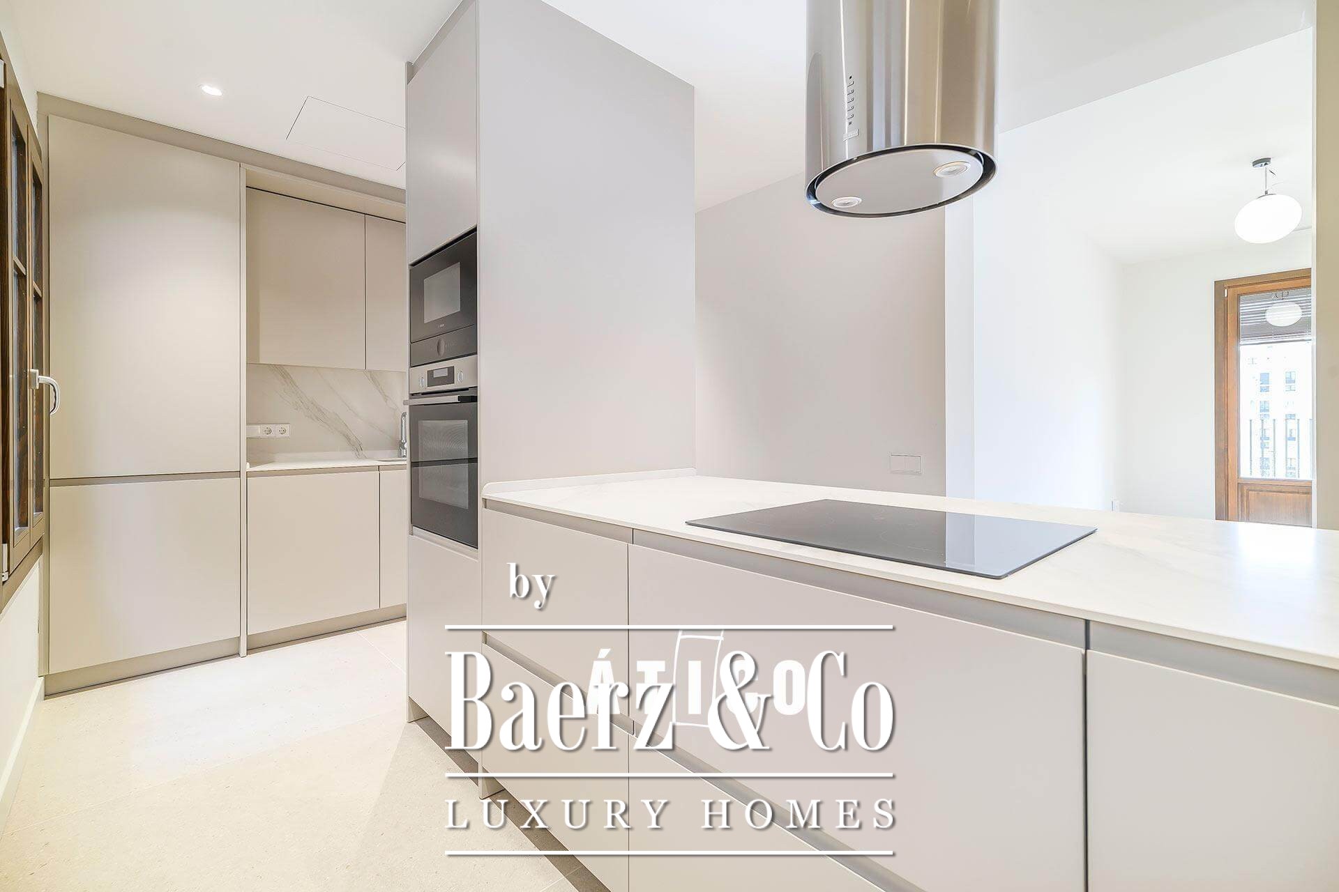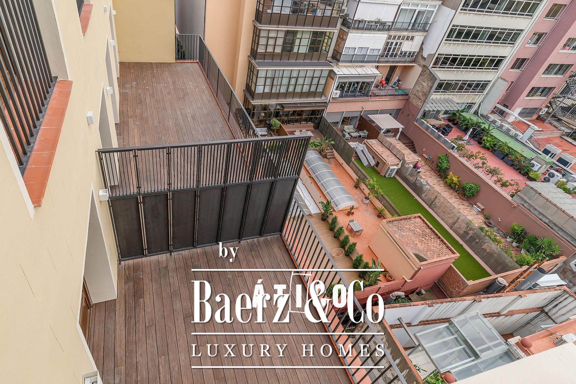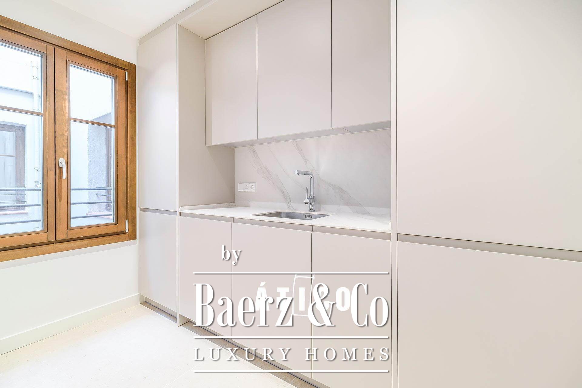 Das Penthouse Barcelona im Golden Square setzt Maßstäbe für ein anspruchsvolles urbanes Wohnerlebnis. Diese frisch renovierte Residenz erstreckt sich über 103,70 m² und besticht durch eine harmonische Aufteilung sowie ein großzügiges Raumgefühl, das beim Eintreten augenblicklich Ruhe vermittelt. Das Penthouse verfügt über zwei Schlafzimmer und zwei sorgfältig gestaltete Bäder, wobei jedes Detail – von der Auswahl des Bodens bis zur maßgefertigten Holzverarbeitung – höchste Aufmerksamkeit widerspiegelt. Die moderne Küche verbindet Funktionalität mit gestalterischem Anspruch und bietet viel Stauraum bei klaren architektonischen Linien.