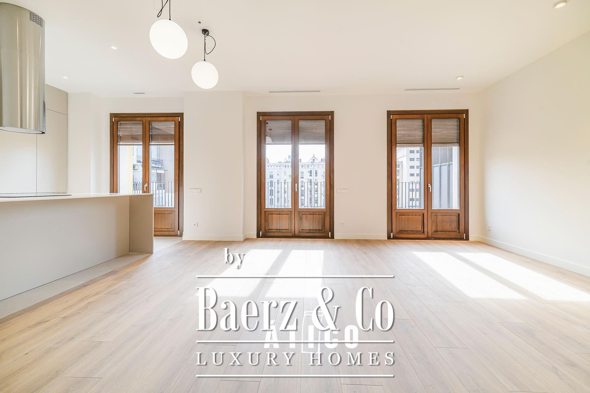 Das Penthouse Barcelona Golden Square verkörpert einen raffinierten Ansatz urbanen Wohnens mit 166,60 m² durchdachtem Design und sorgfältig ausgeführter Renovierung. Diese Residenz balanciert offene, einladende Wohnbereiche mit wohltuender Privatsphäre und bietet drei großzügig geschnittene Schlafzimmer sowie zwei modernisierte Bäder. Die Raumwirkung wird von Großzügigkeit und natürlichem Licht geprägt; der 23 m² große Terrasse dient als Verlängerung des Wohnzimmers und eignet sich gleichermaßen für entspannte Morgenstunden, ruhige Momente und informelle Zusammenkünfte.