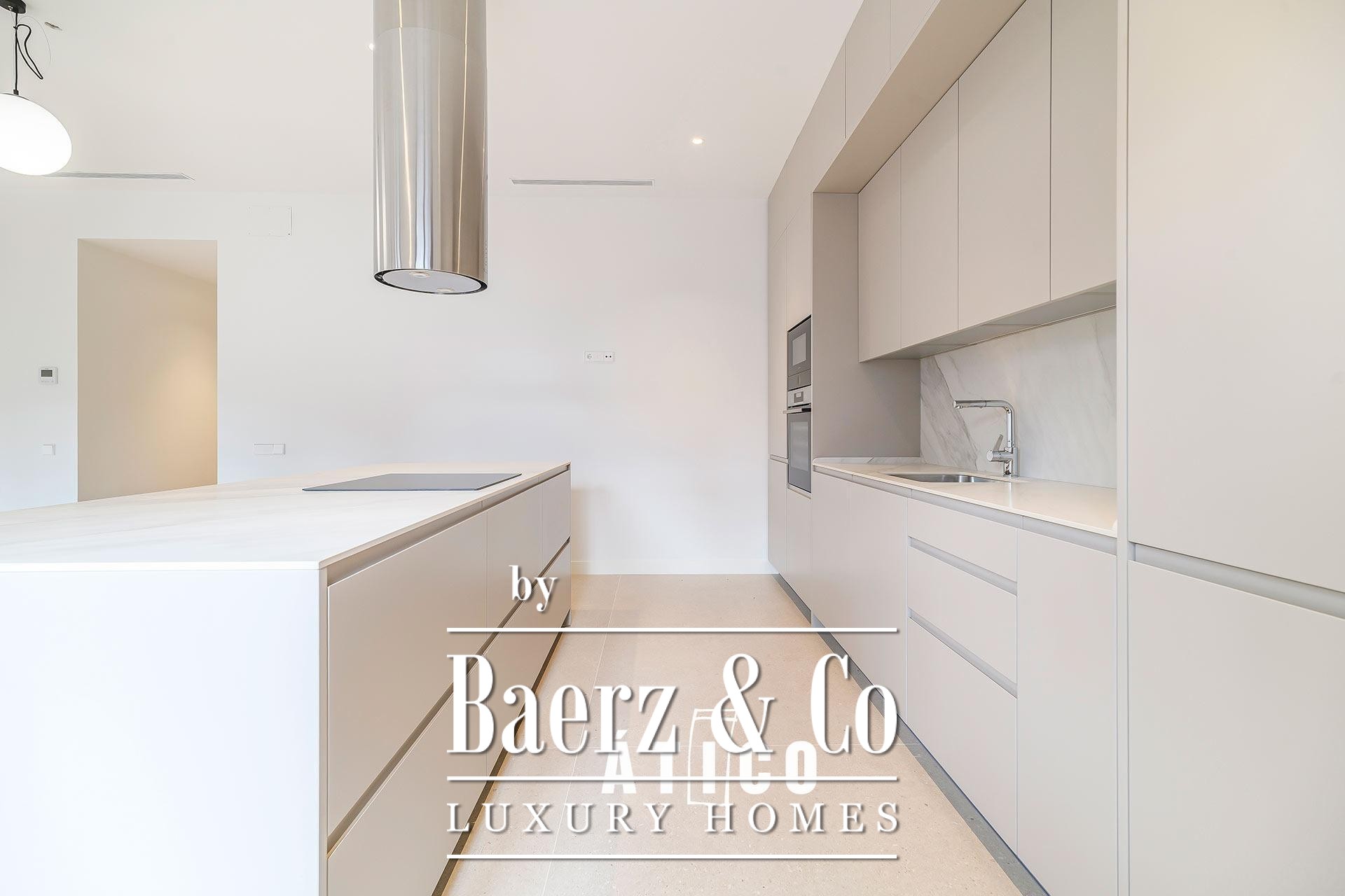 Die Küche wurde auf höchste Funktionalität und optimale Organisation ausgerichtet, wobei durchdachte Stauraumlösungen mit puristischem Stil harmonieren. Liebe zum Detail zeigt sich in allen Ausführungen: von den Böden bis hin zu maßgefertigten Holzarbeiten, was sofortige Bezugsfertigkeit und dauerhafte Qualität garantiert. Die Auswahl der Materialien zeugt von handwerklichem Anspruch und Beständigkeit.