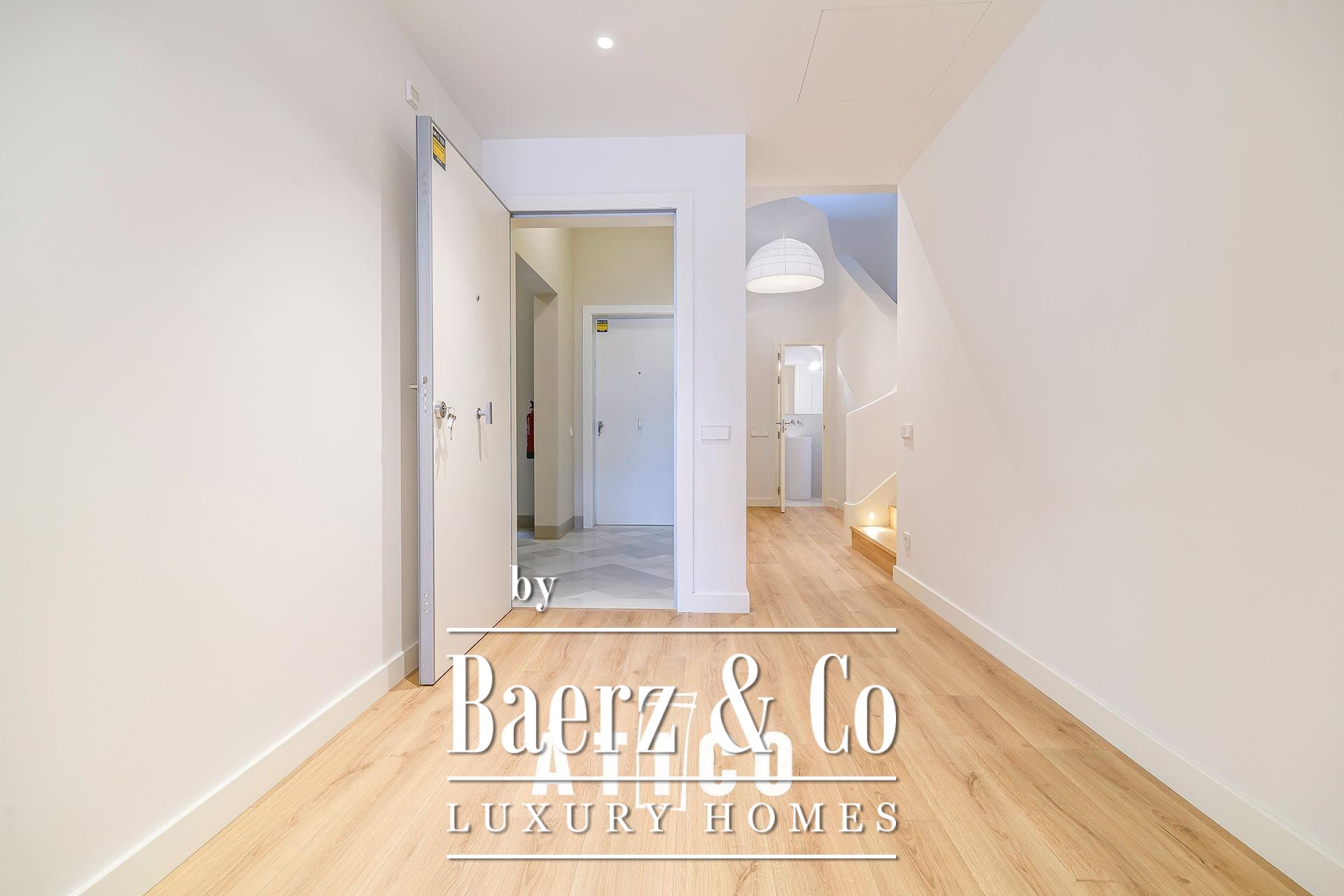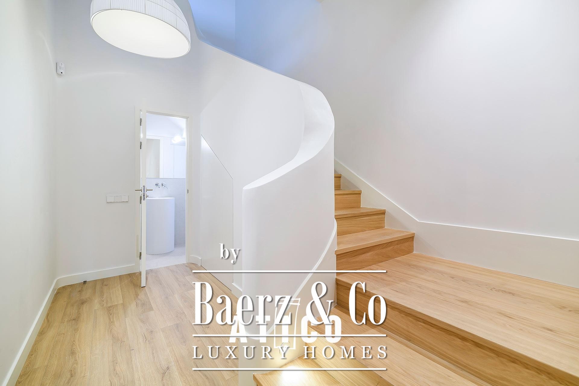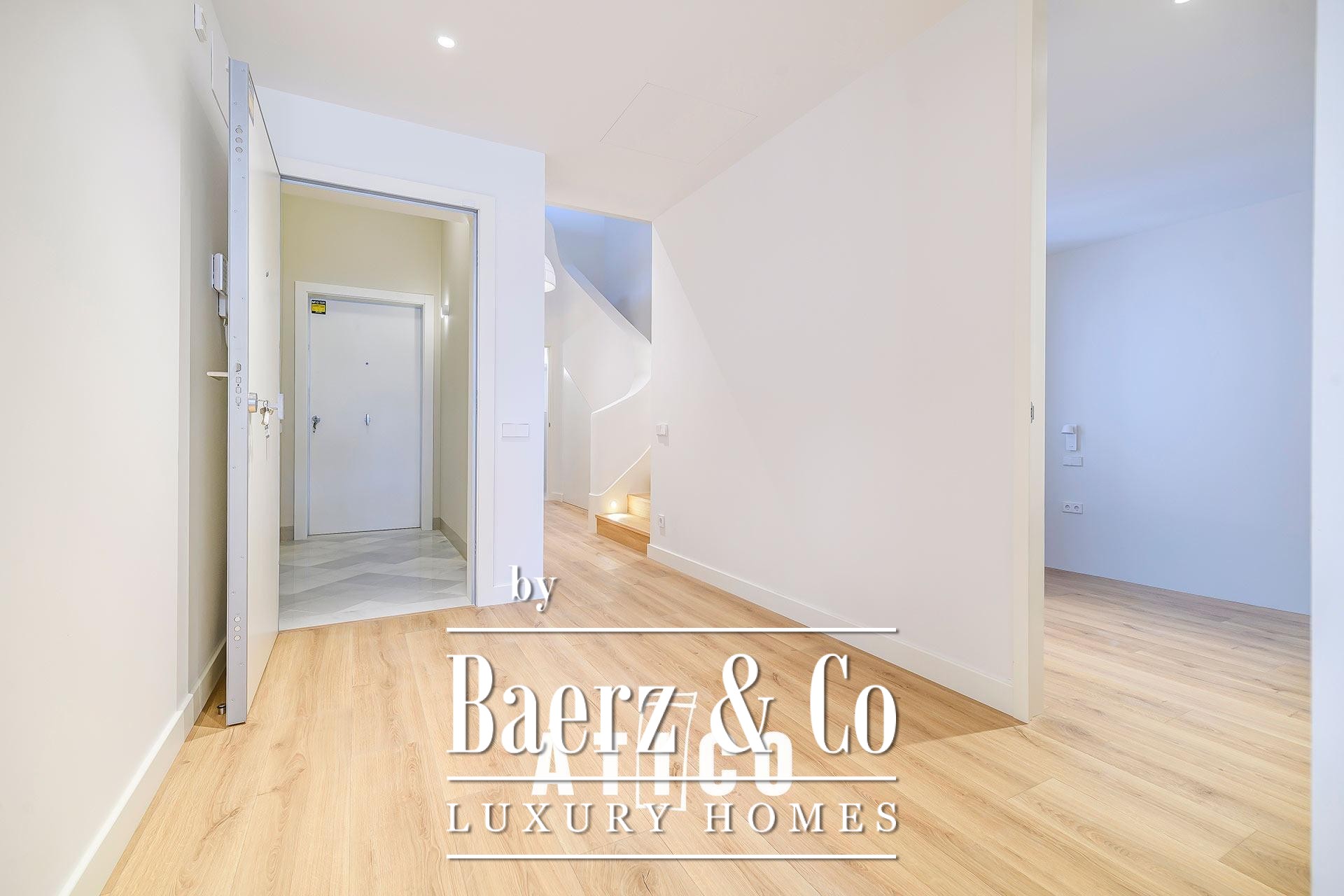 Dieses Duplex-Apartment in Barcelona ist ein Inbegriff für kultiviertes Stadtleben und bietet 212,51 m² frisch renovierte Fläche auf zwei eigenständigen Ebenen. Mit Fokus auf Flexibilität gestaltet, erlauben die getrennten Eingänge Möglichkeiten für Privatsphäre, Arbeiten oder Gastlichkeit und ermöglichen so mühelose Übergänge zwischen Tag- und Nachtbereichen oder multifunktionalem Wohnen. Beim Betreten prägt eine moderne Treppe das Innenleben, verleiht der Wohnung eine selbstbewusste architektonische Rhythmik und verbindet beide Etagen.