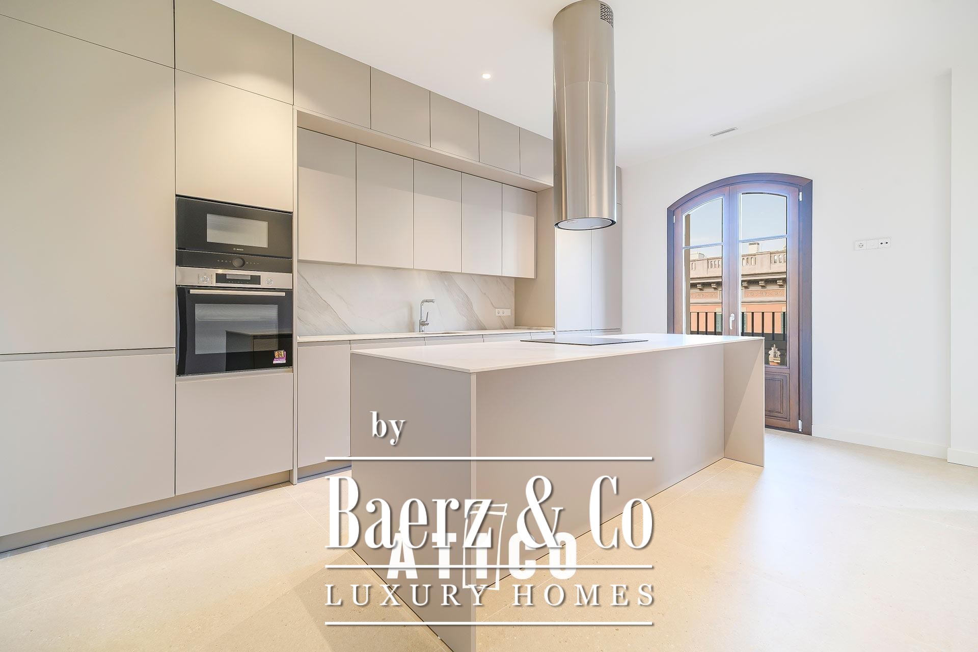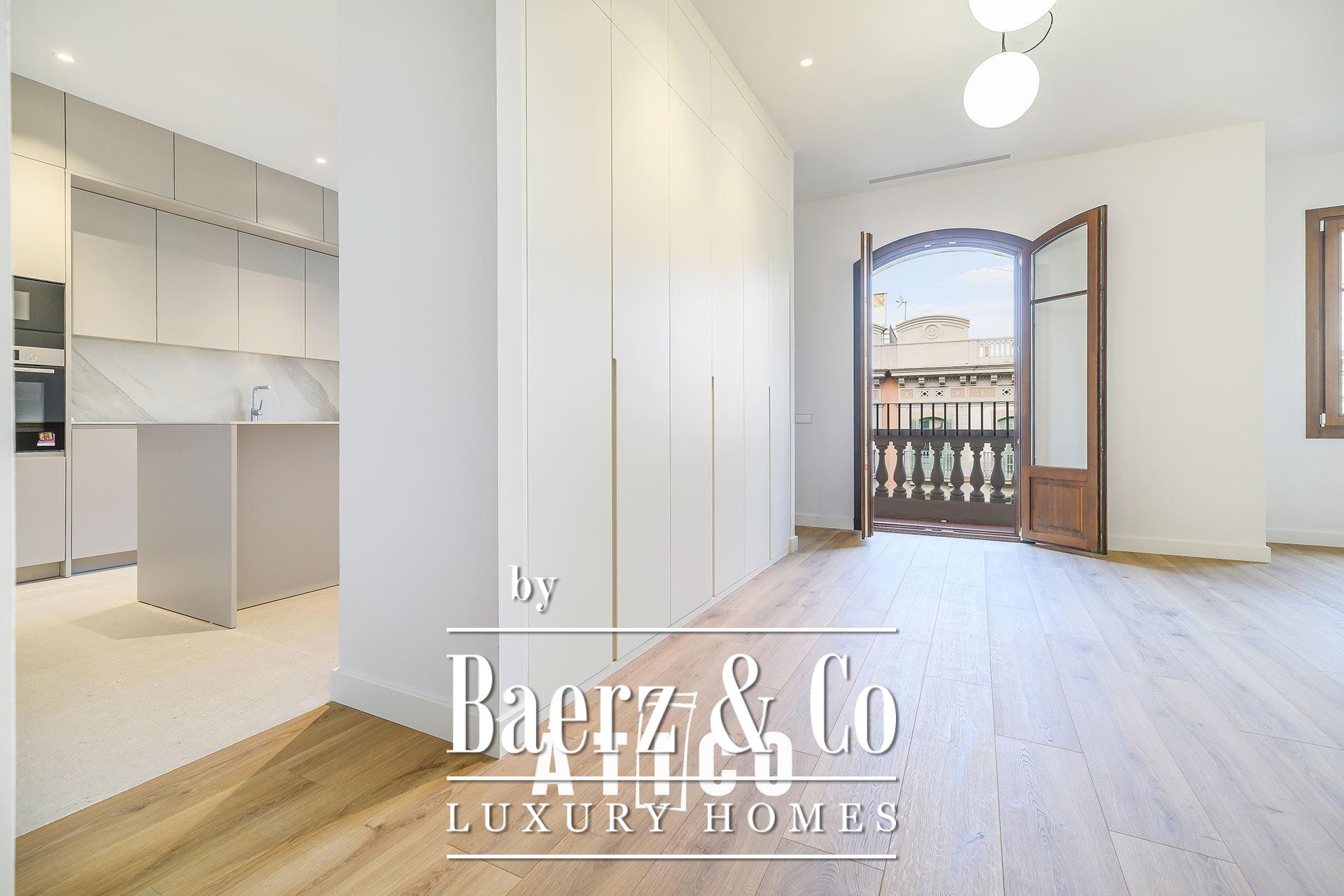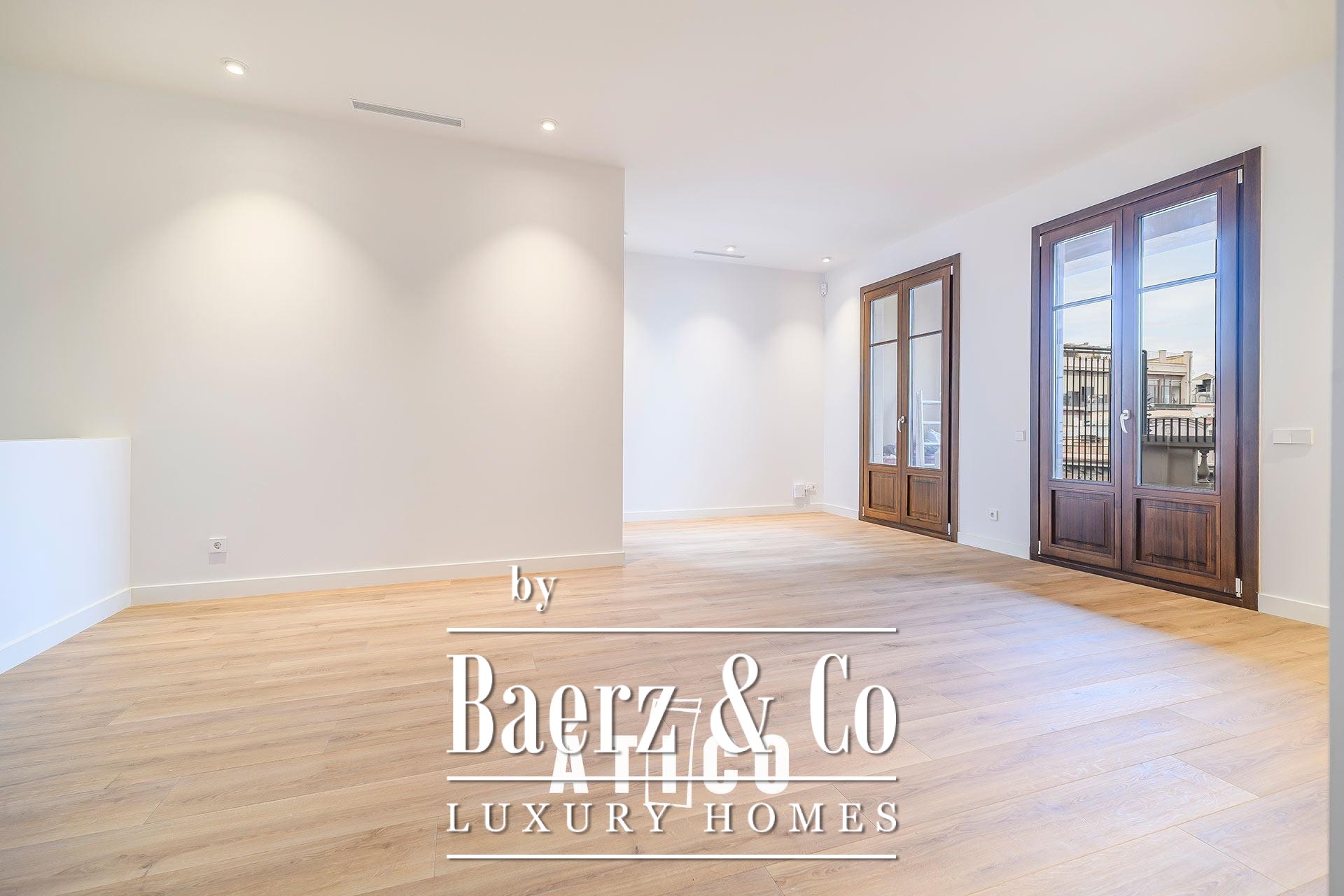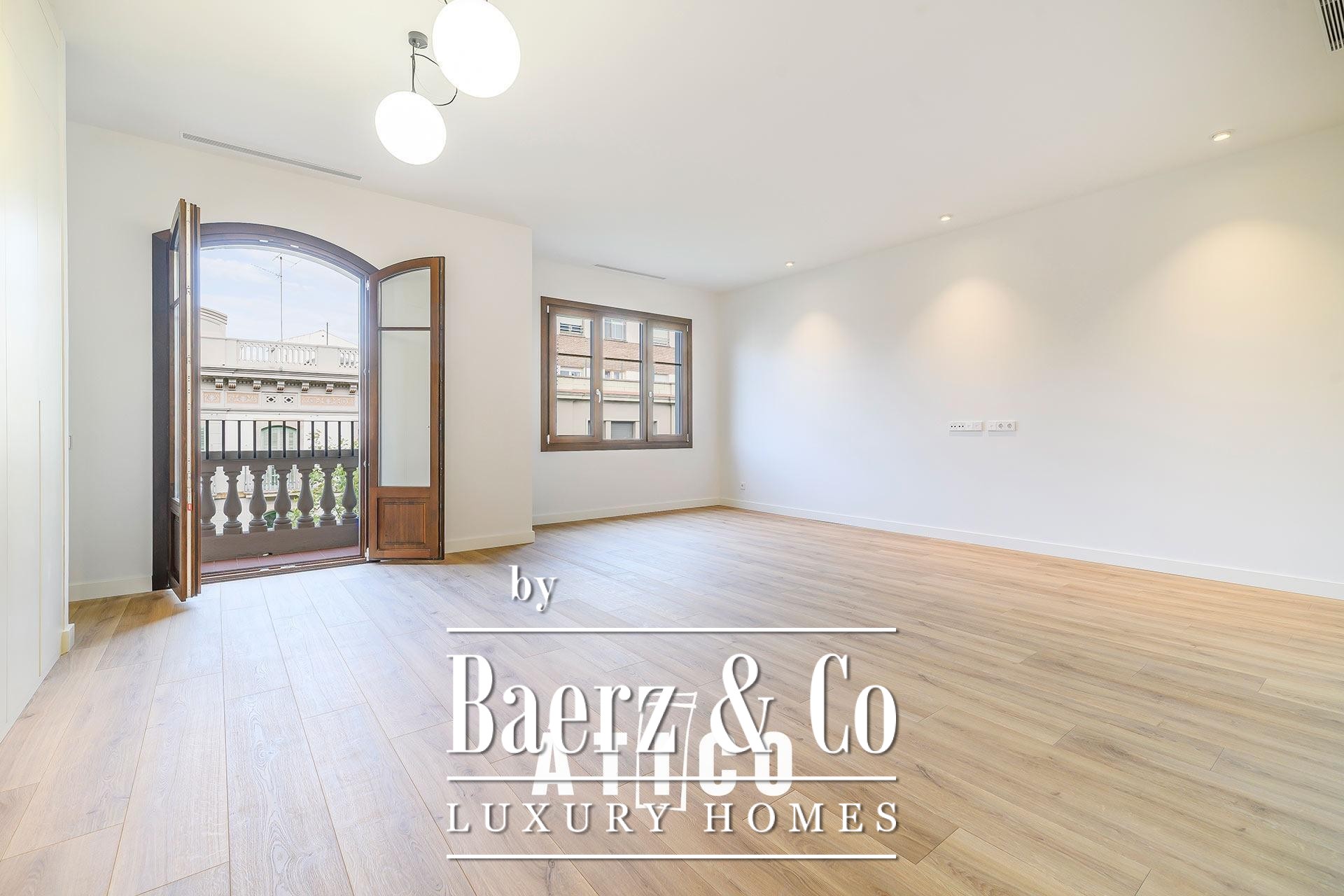 Dieses Duplex-Apartment in Barcelona ist ein Inbegriff für kultiviertes Stadtleben und bietet 212,51 m² frisch renovierte Fläche auf zwei eigenständigen Ebenen. Mit Fokus auf Flexibilität gestaltet, erlauben die getrennten Eingänge Möglichkeiten für Privatsphäre, Arbeiten oder Gastlichkeit und ermöglichen so mühelose Übergänge zwischen Tag- und Nachtbereichen oder multifunktionalem Wohnen. Beim Betreten prägt eine moderne Treppe das Innenleben, verleiht der Wohnung eine selbstbewusste architektonische Rhythmik und verbindet beide Etagen.
