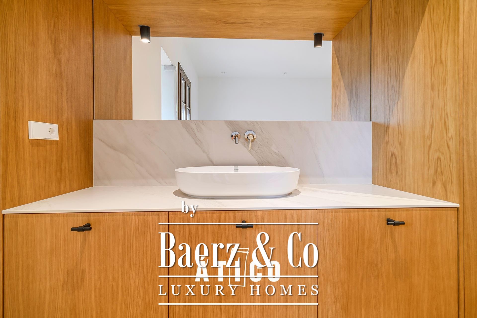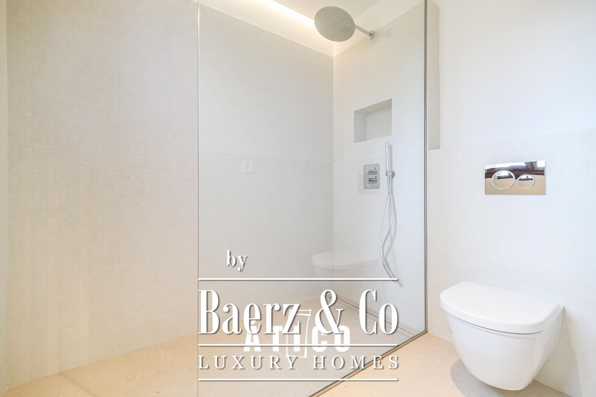Im oberen Stockwerk finden sich ein Schlafzimmer, ein vielseitig nutzbarer Raum für Arbeit oder Freizeit sowie ein voll ausgestattetes Bad. Eine 38,85 m² große Terrasse erweitert den Wohnraum nach draußen und bietet den perfekten Rahmen für offene Zusammenkünfte oder stille Momente unter dem Himmel der Stadt. Drei Schlafzimmer und drei Bäder sorgen für eine ausgewogene Balance aus Komfort und Rückzug, während ausgesuchte Materialien und tadellose Verarbeitung den durchgehenden Anspruch an höchste Handwerkskunst unterstreichen. Die Küche ist ebenso durchdacht gestaltet, sie bietet großzügigen Stauraum und eine durchdachte Lösung für den Alltag.