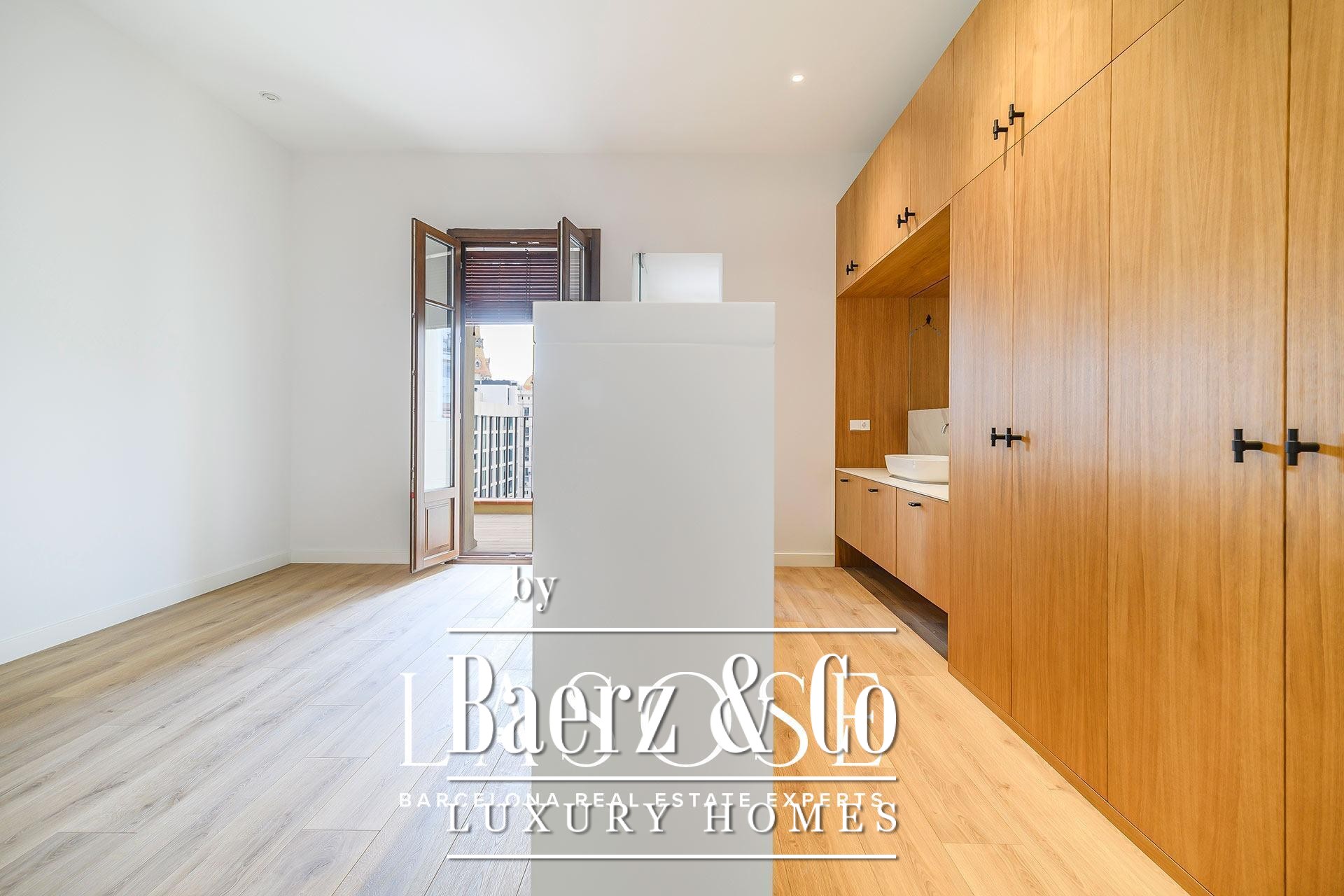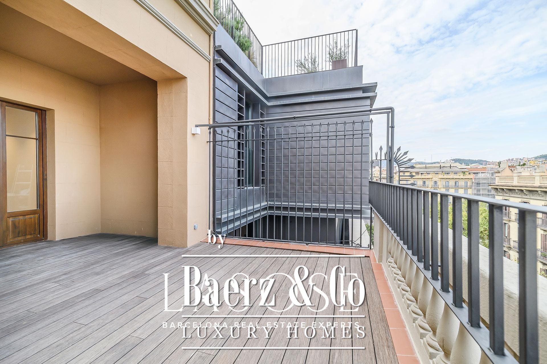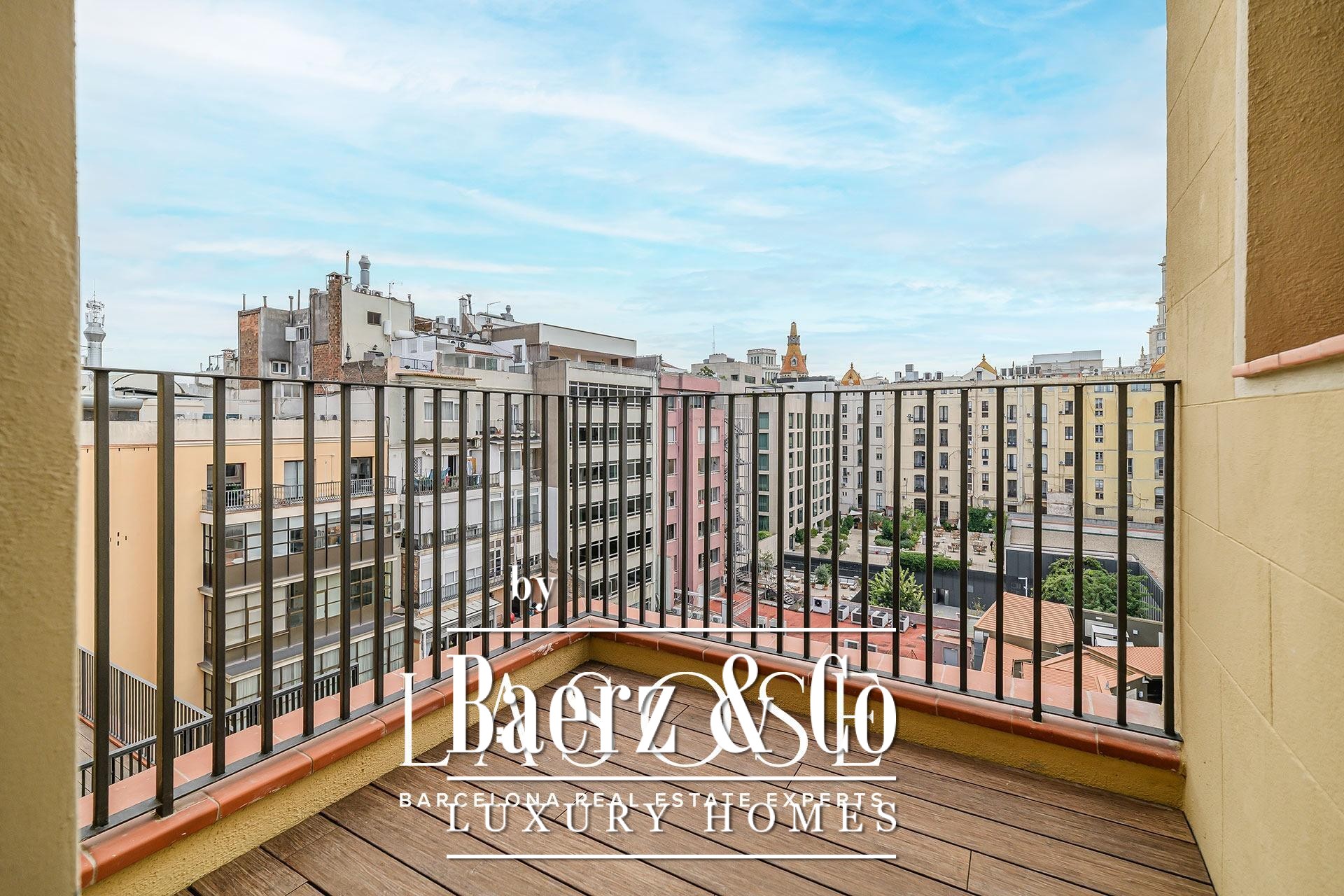Jedes Penthouse wurde mit viel Sorgfalt und hochwertigen Materialien sowie leistungsstarken Fassaden umfassend saniert und garantiert so Isolierung, Ruhe und alltäglichen Komfort. Großzügige private Terrassen gehen nahtlos in die Innenräume über, ermöglichen privilegierte Blicke auf Eixample und bieten einen friedlichen Zufluchtsort, um das mediterrane Klima Barcelonas zu genießen. Balkone, maßgefertigte Einbauschränke, Einbaugeräte und gut proportionierte Wohnbereiche unterstreichen das angenehme Wohngefühl.