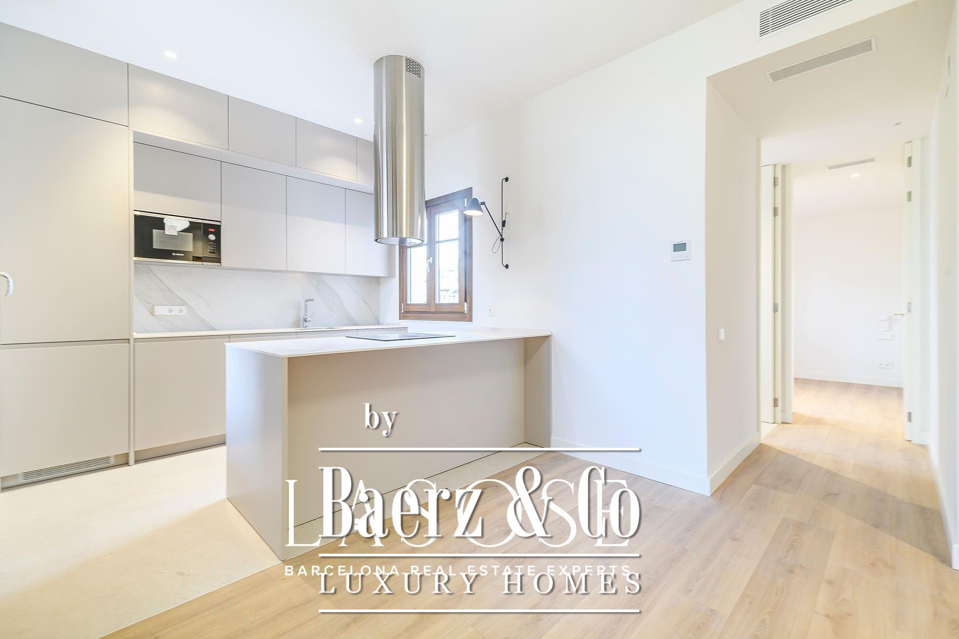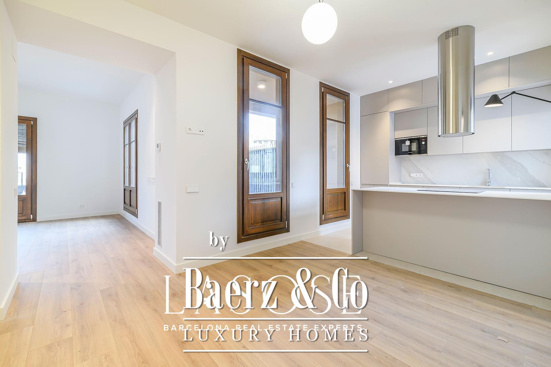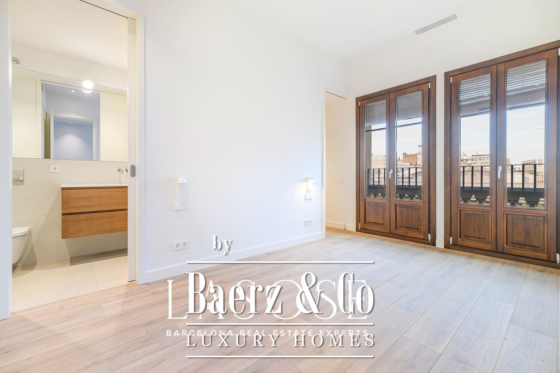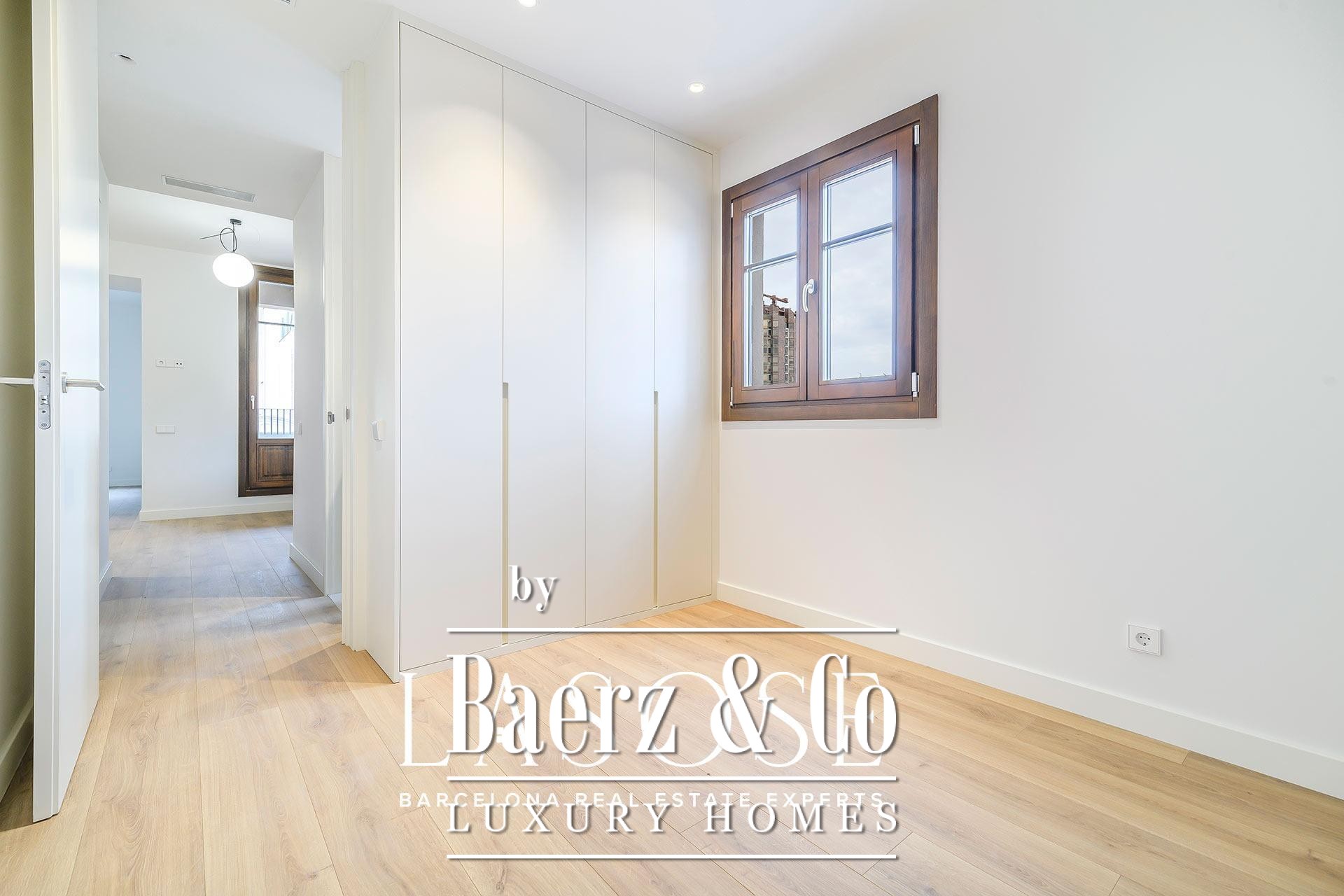 Jede Residenz wurde auf 110 m² mit größter Sorgfalt vollständig renoviert und vermittelt durch beeindruckend hohe Decken sowie viel Tageslicht ein unverwechselbares Raumgefühl. Die durchdachten Grundrisse bieten zwei Schlafzimmer und zwei Badezimmer, was Funktionalität und Komfort auf ein neues Niveau hebt, während moderne Ausstattungen und hochwertige Isolierungen dauerhafte Ruhe garantieren. Private Terrassen eröffnen eindrucksvolle Blicke auf Eixample und bieten einen seltenen urbanen Rückzugsort, der dem mediterranen Klima entspricht.