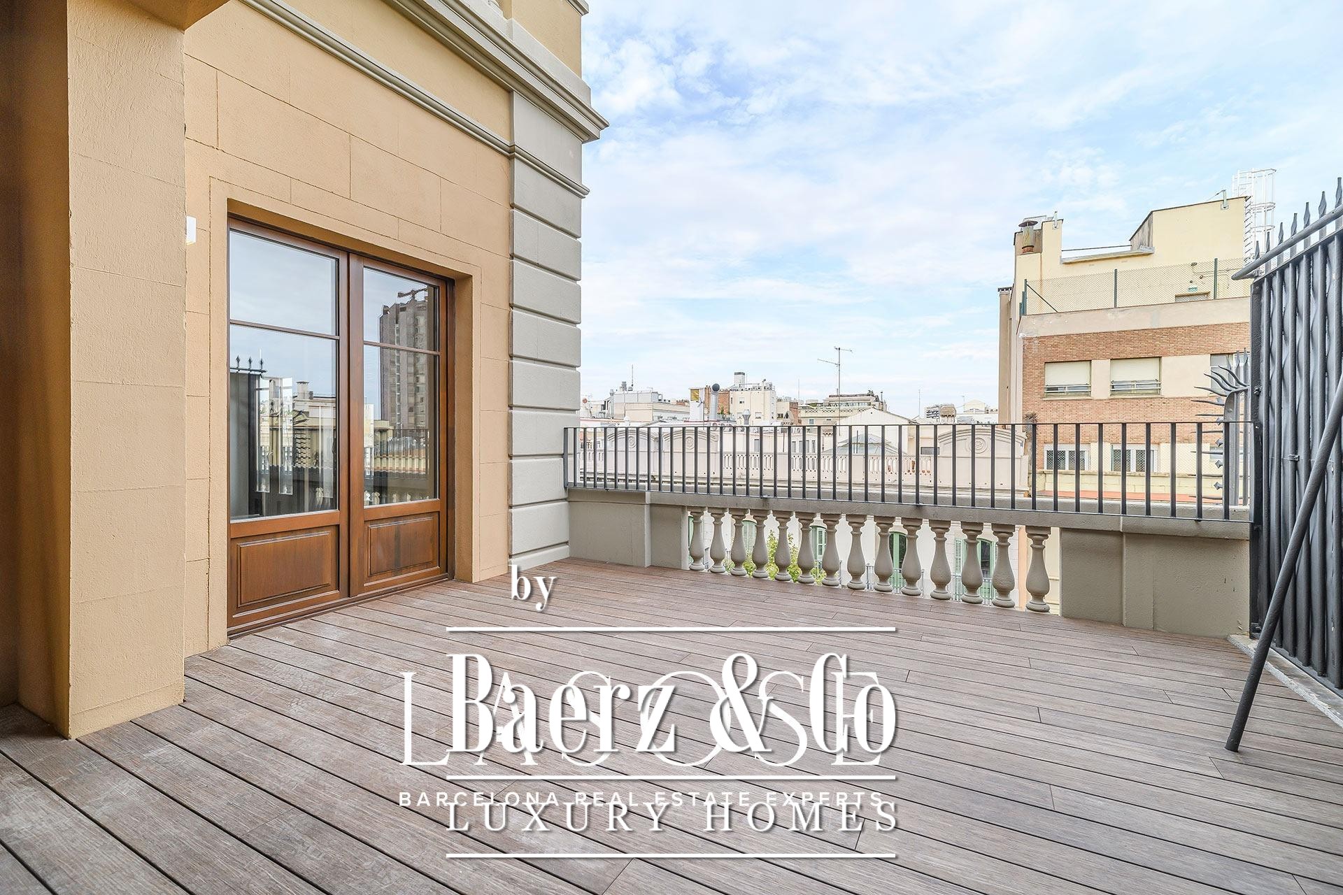 Den Bewohnern stehen Annehmlichkeiten wie Concierge-Service, zwei Aufzüge, Klimaanlage, maßgefertigte Einbauschränke und hochwertige Geräte zur Verfügung. Direkt an der Pau Claris Straße gelegen, nur wenige Schritte vom Passeig de Gràcia entfernt, ist das Penthouse bestens angebunden an renommierte Restaurants, Kunstgalerien und Luxus-Boutiquen. Hier bilden Historie, Innovation und Privatsphäre eine exklusive Lebenswelt in Barcelonas berühmtestem Viertel.