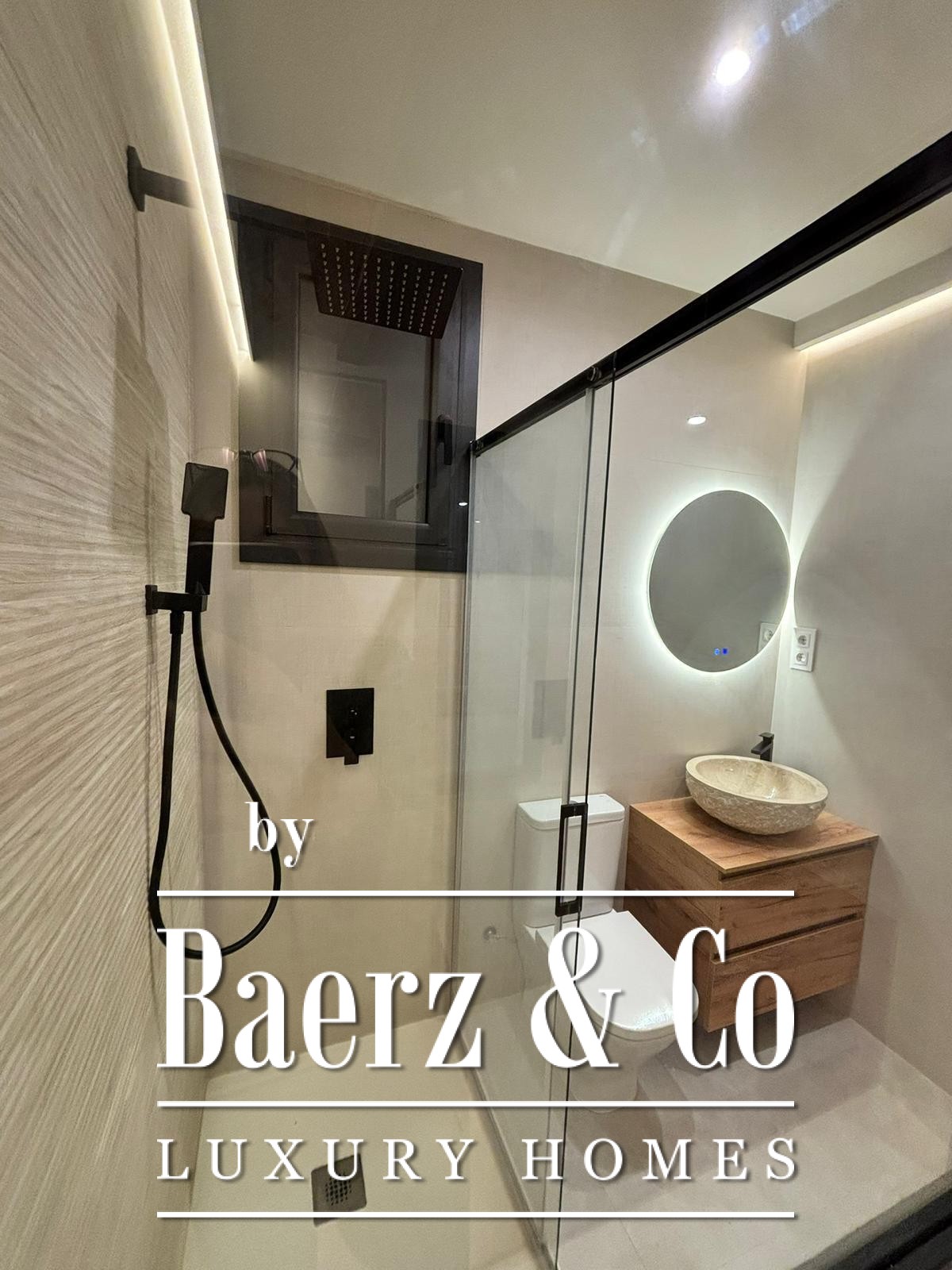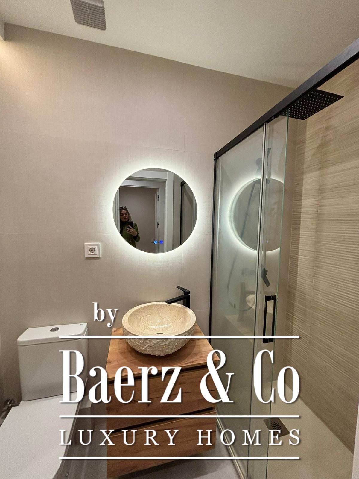Drei Schlafzimmer gestalten die privaten Bereiche, darunter eine Mastersuite und ein Doppelschlafzimmer mit direktem Zugang zu einer nach Westen ausgerichteten Terrasse sowie ein flexibles, innenliegendes Einzelzimmer, das sich ideal als Homeoffice eignet. Zwei Bäder sind mit Möbeln von Salgar sowie Armaturen von Sky ausgestattet – Ausdruck eines kompromisslosen Qualitätsanspruchs.