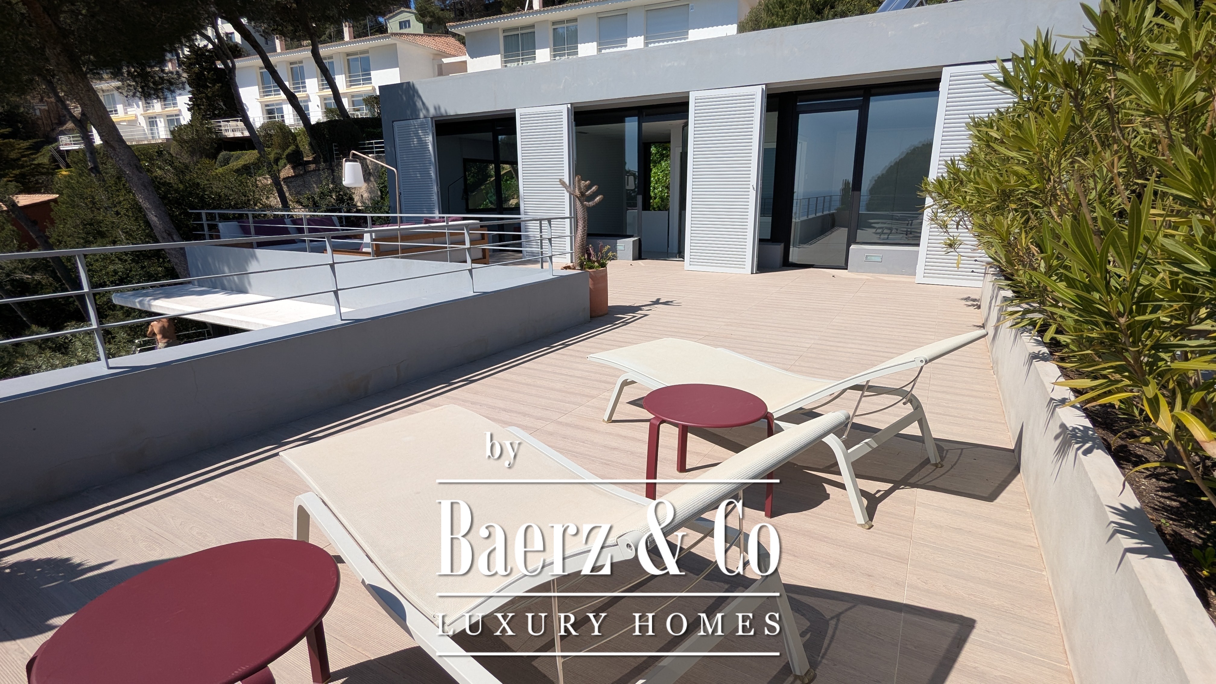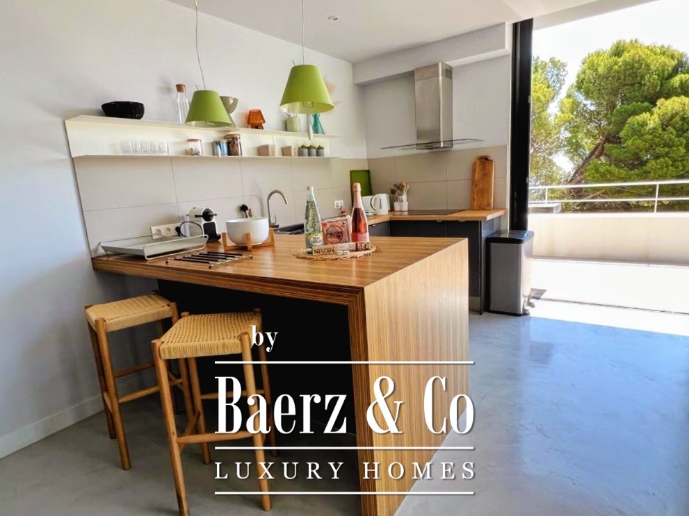 Die untere Ebene bietet zwei Doppelschlafzimmer und ein Badezimmer, wobei jeder Raum auf Komfort und Harmonie ausgerichtet ist. Im Obergeschoss teilen sich zwei weitere Doppelschlafzimmer ein Badezimmer; beide haben Zugang zu einer 50 m² großen Terrasse mit außergewöhnlichem Meerblick.