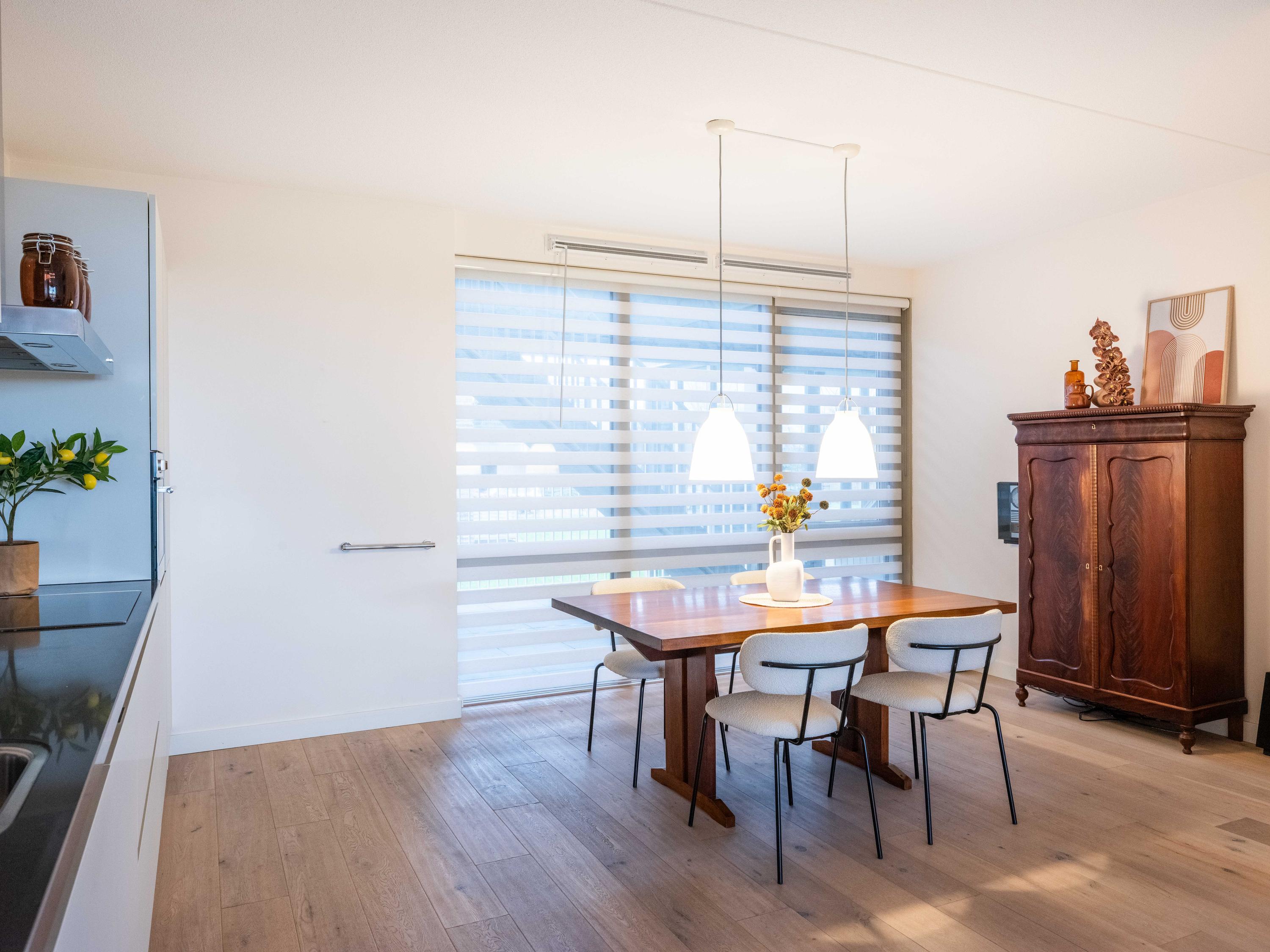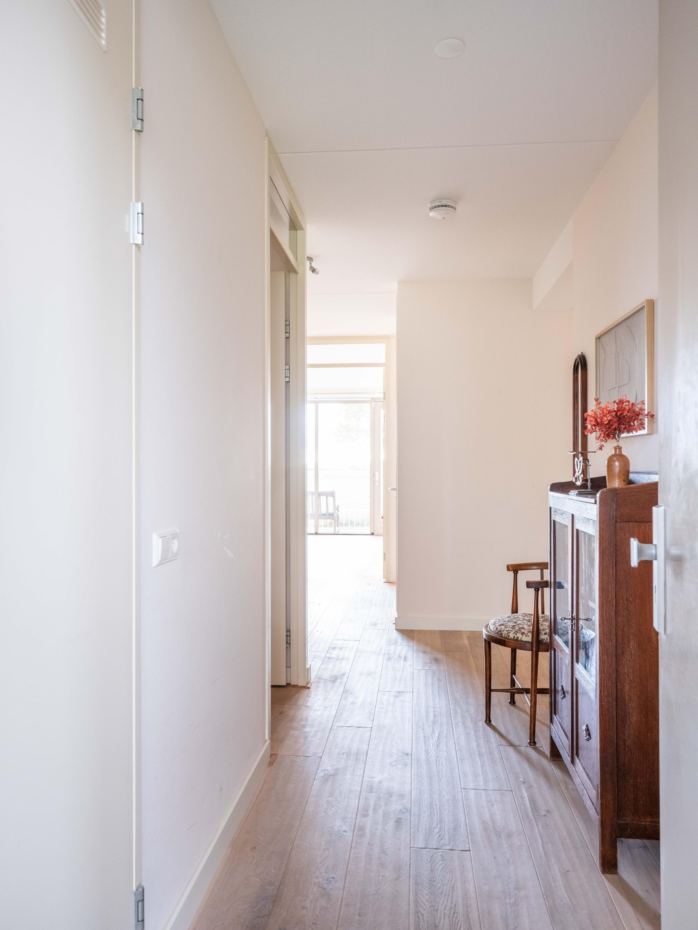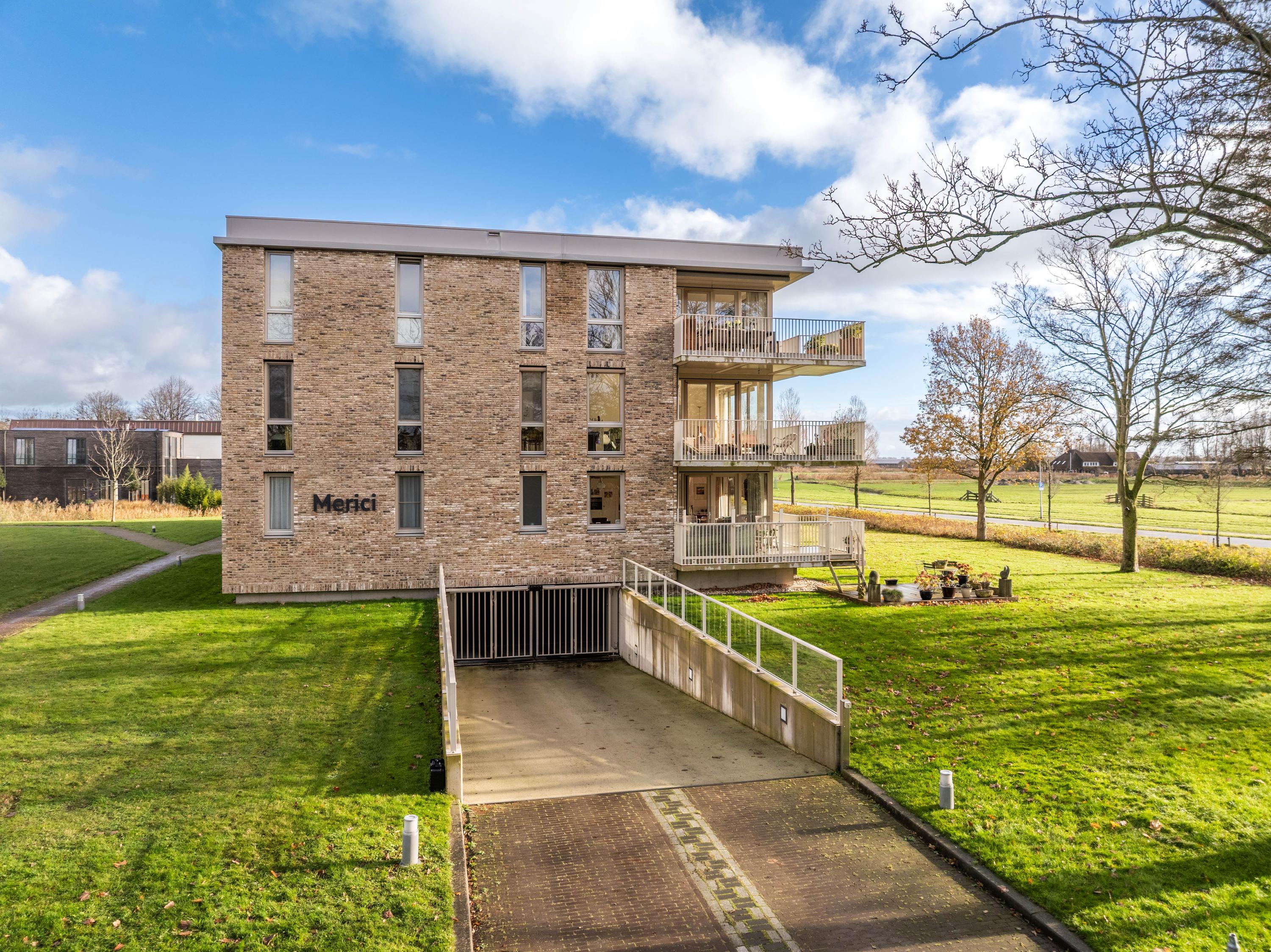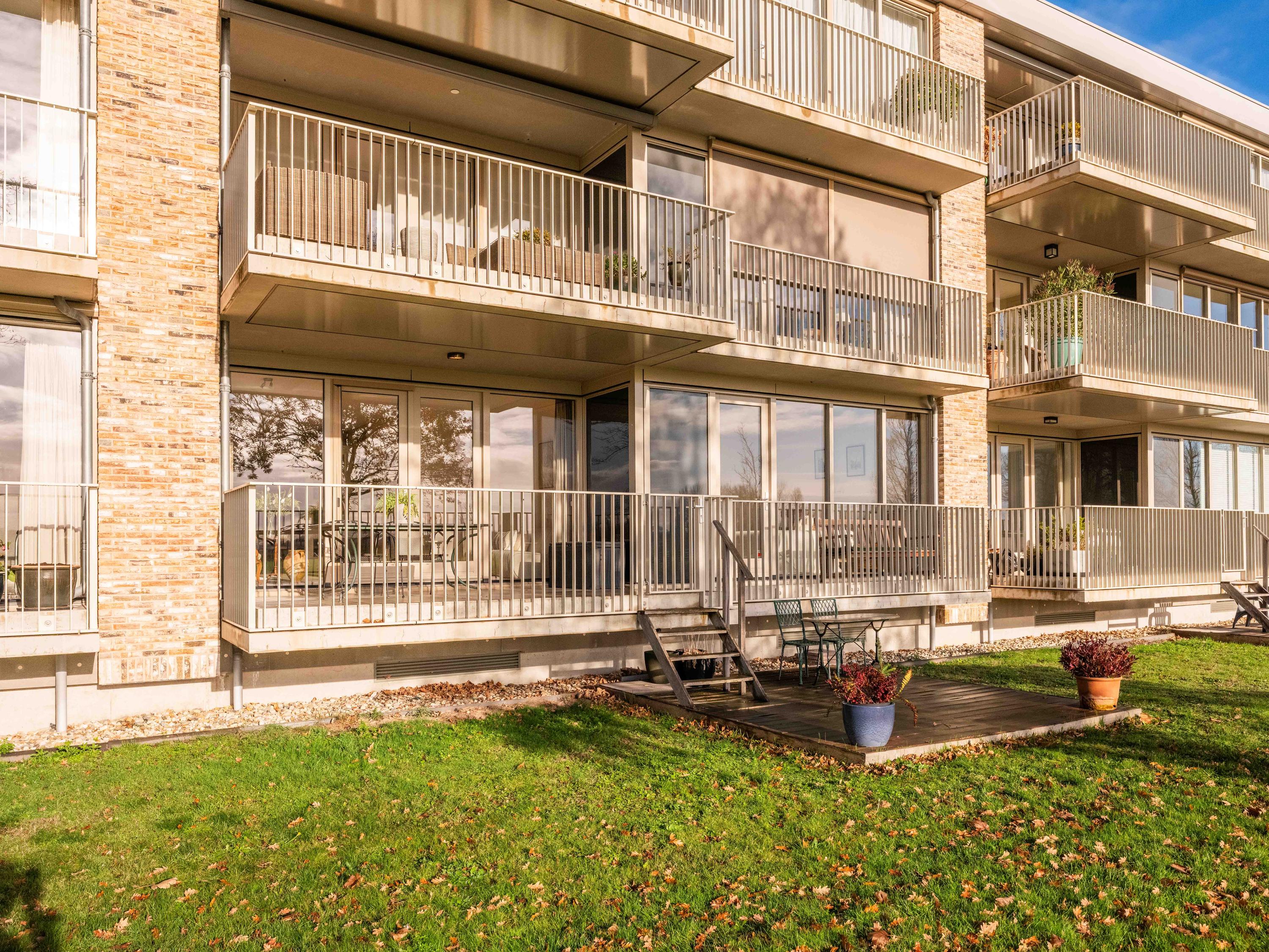 Große Fenster und ein Balkon verbinden das Innere mit dem weiten Himmel, den Gärten und der darunterliegenden Terrasse, wodurch ein Dialog zwischen Wohnen und Landschaft entsteht. Zwei private Pkw-Stellplätze und ein Abstellraum mit Strom sorgen für Alltagstauglichkeit, während Aufzug, Videofon und automatische Türen den Komfort erhöhen. Die Option für Solarpaneele unterstreicht das Engagement für Effizienz. Hier verläuft das Leben im ruhigen Rhythmus der Polderlandschaft von Bergen, verwurzelt in der Tradition und zugleich auf der Höhe der Zeit.