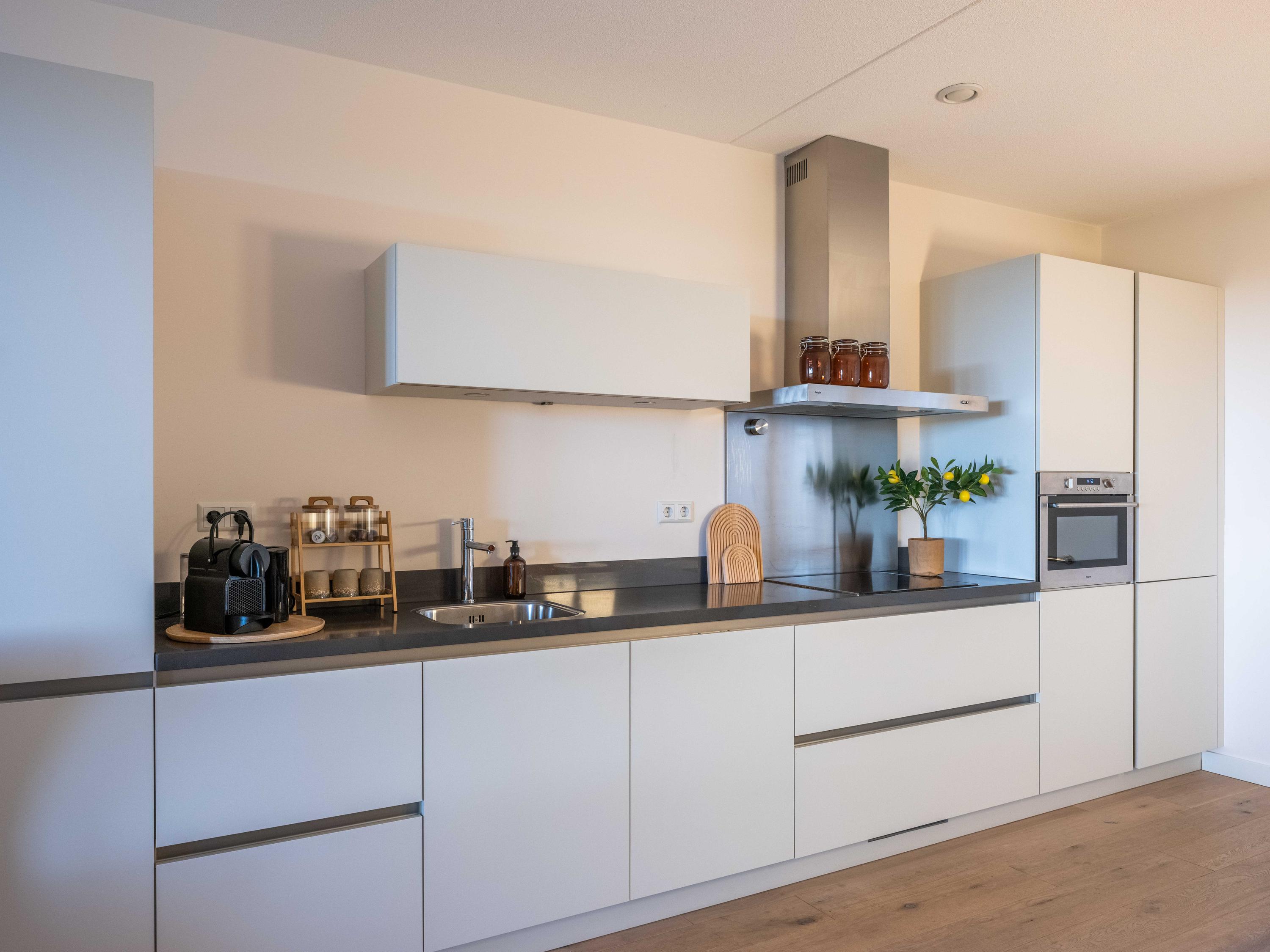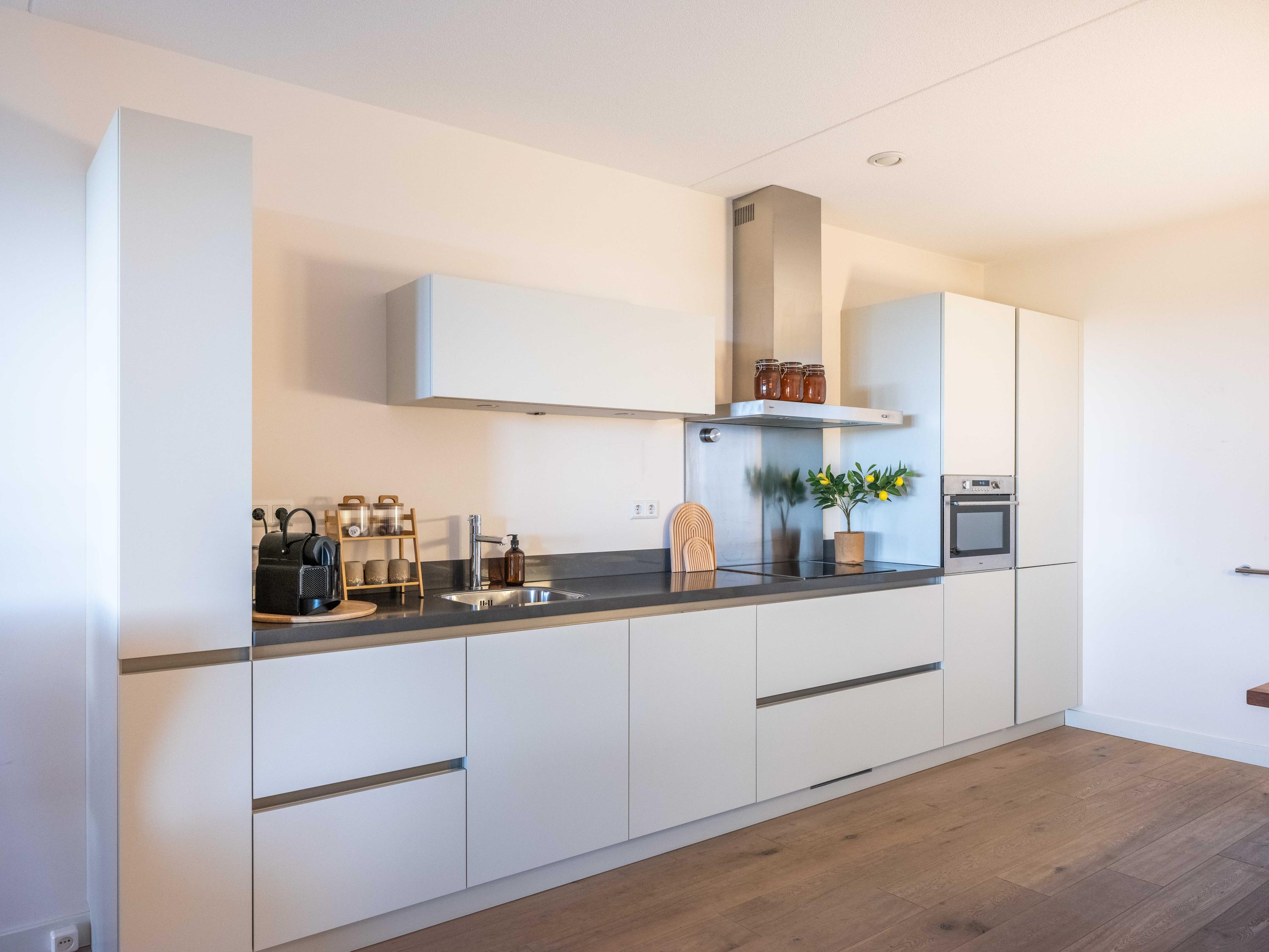 Apartment Bergen NH heißt Sie willkommen an einer Adresse, die sowohl Tradition als auch zeitgenössische Eleganz verkörpert. In der Merici Estate gelegen – ein Name, der eng mit Bergen verbunden ist – vereint diese Residenz Privatsphäre mit einem Panoramablick auf das grüne Polderland und die Blumenfelder, und das aus dem ersten Stock eines intimen Komplexes heraus. Die Wohnung in Bergen NH mit einer Wohnfläche von 109 m² bietet einen durchdachten Grundriss: Eine großzügige Diele führt in den Wohnbereich, zwei Schlafzimmer, eine moderne offene Küche mit hochwertigen Einbaugeräten sowie ein luxuriöses Bad mit Doppelwaschbecken, begehbarer Dusche und WC. Fußbodenheizung, HR++-Doppelverglasung und eine moderne Wärmepumpe sorgen ganzjährig für Komfort und entsprechen dem Energiestandard A.