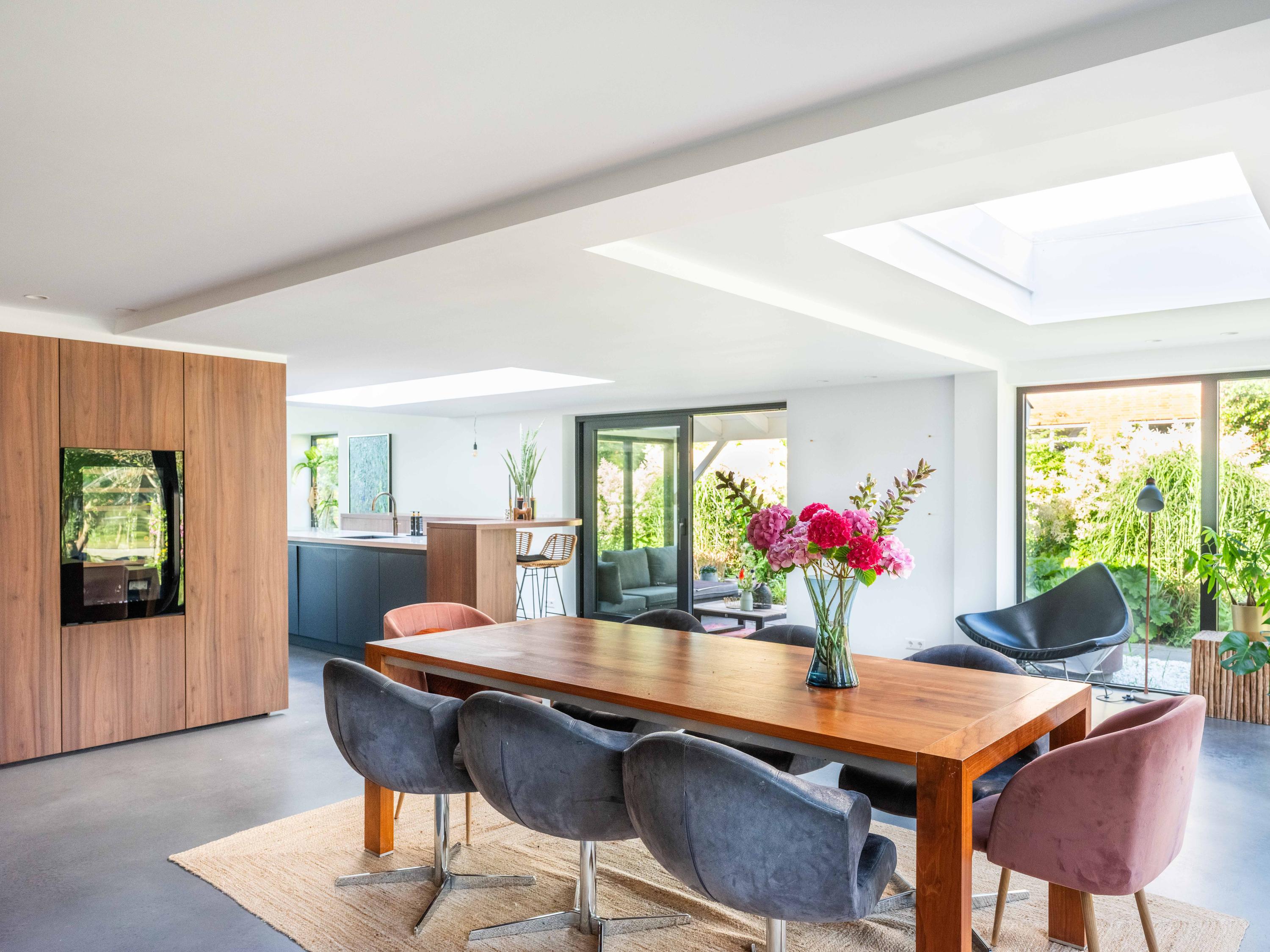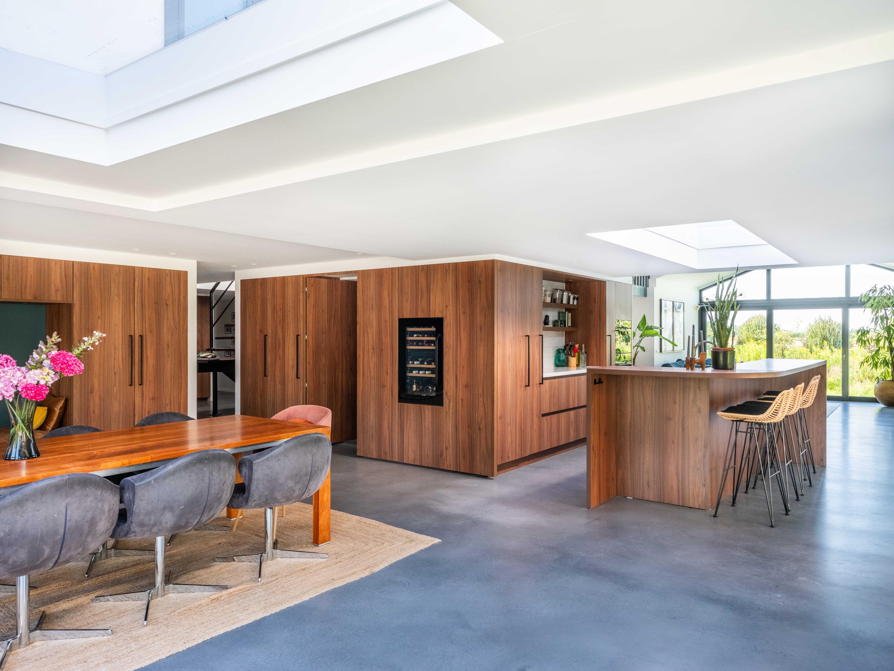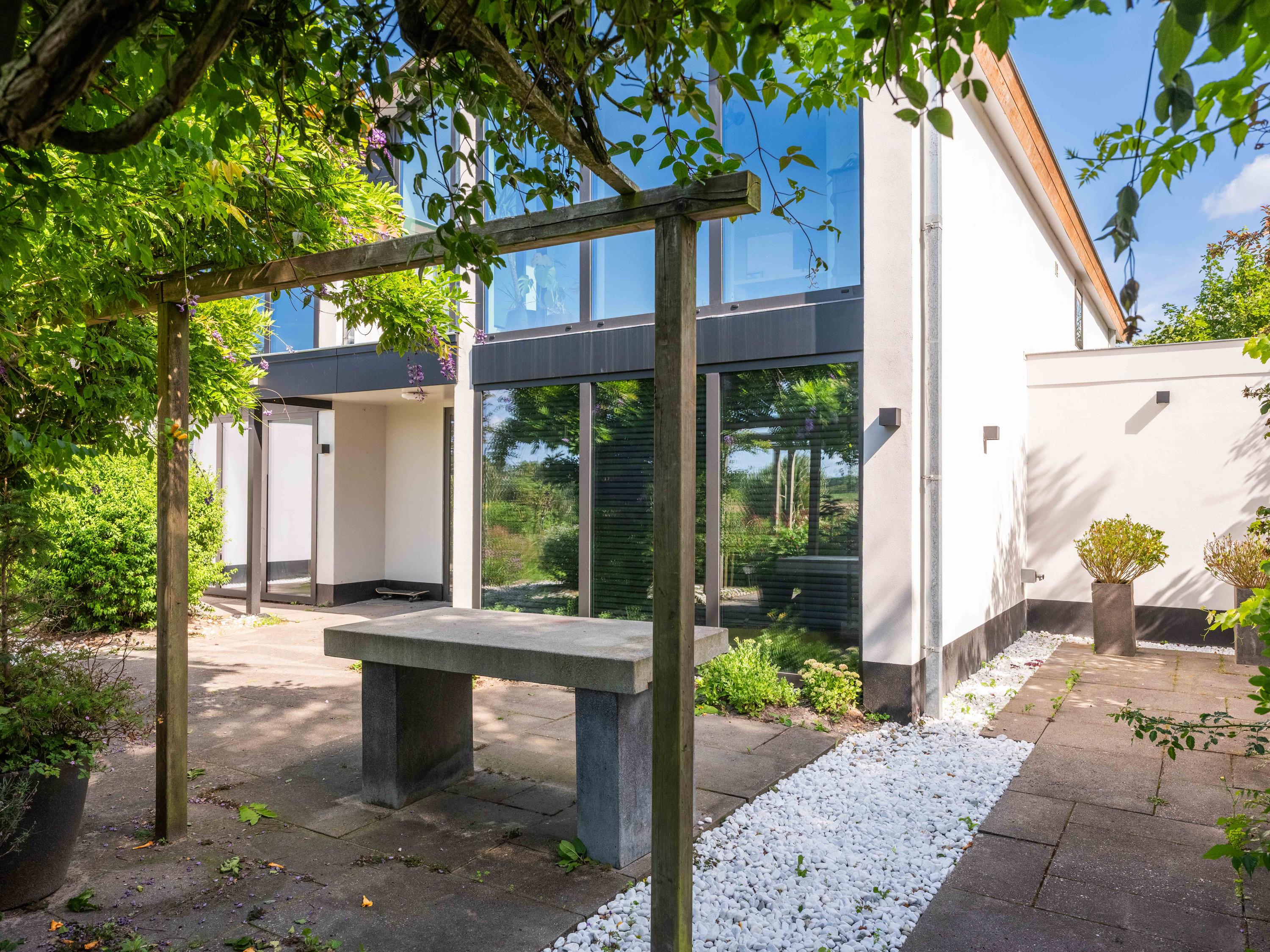 Villa Bergen NH mit Ausblick auf das Umland vereint in seltener Weise Qualität, Lage und Nachhaltigkeit. An der ruhigen Nesdijk gelegen, steht diese 326 m² große Villa auf einem großzügigen Grundstück von 1.301 m². Sie bietet flüsterleise Innenräume und einen freien Ausblick auf die umliegende Polderlandschaft. Jeder Aspekt dieses Hauses, von den fugenlosen, beheizten Betonböden über die maßgefertigte Walnussholzküche bis hin zur Designer-Treppe, zeugt von Stil und Zurückhaltung.
