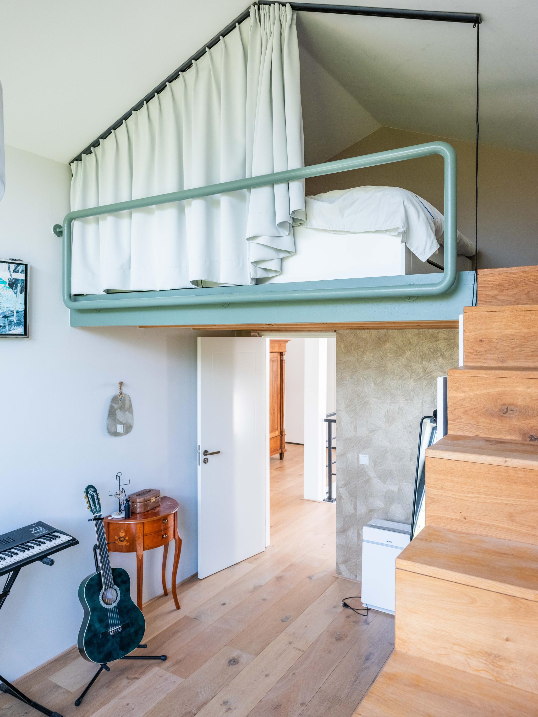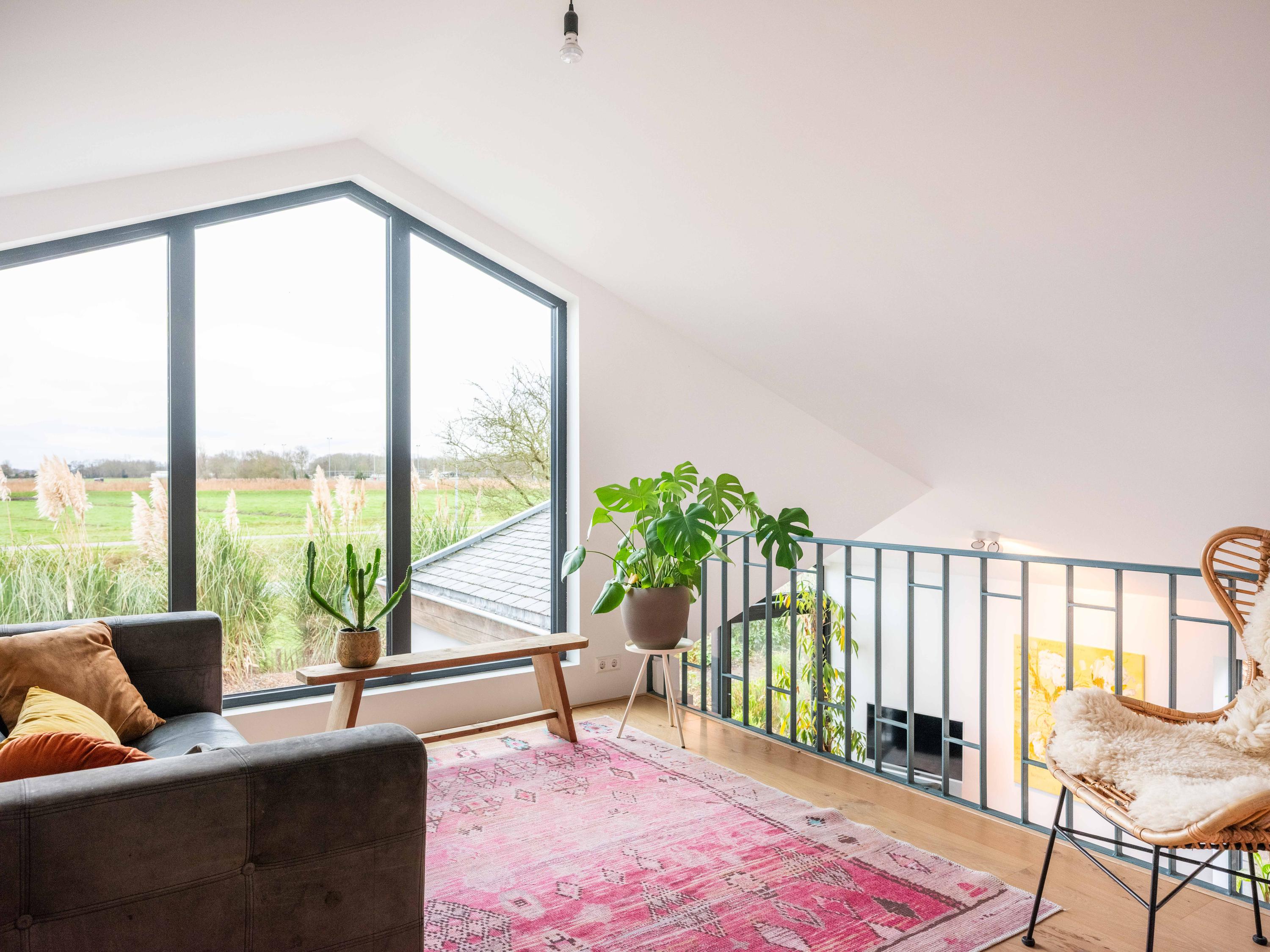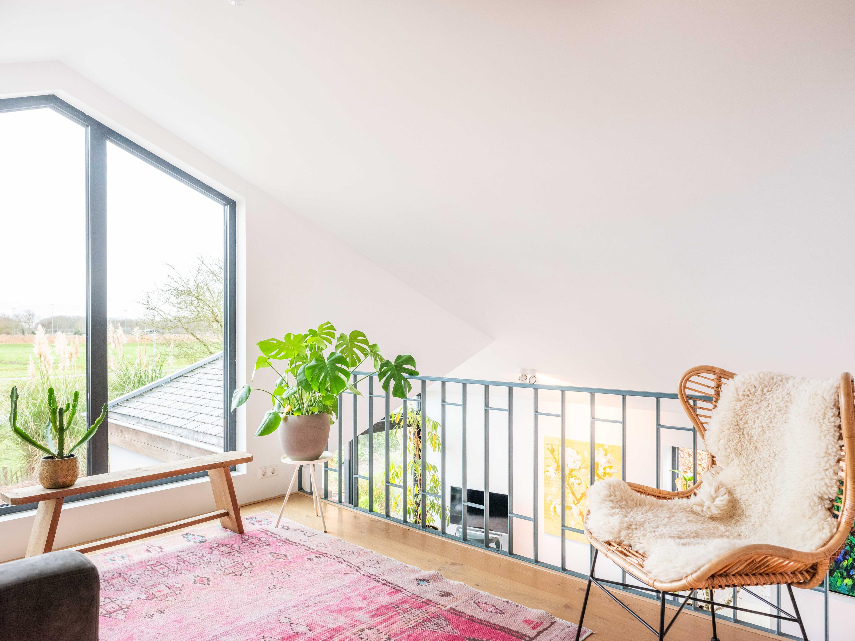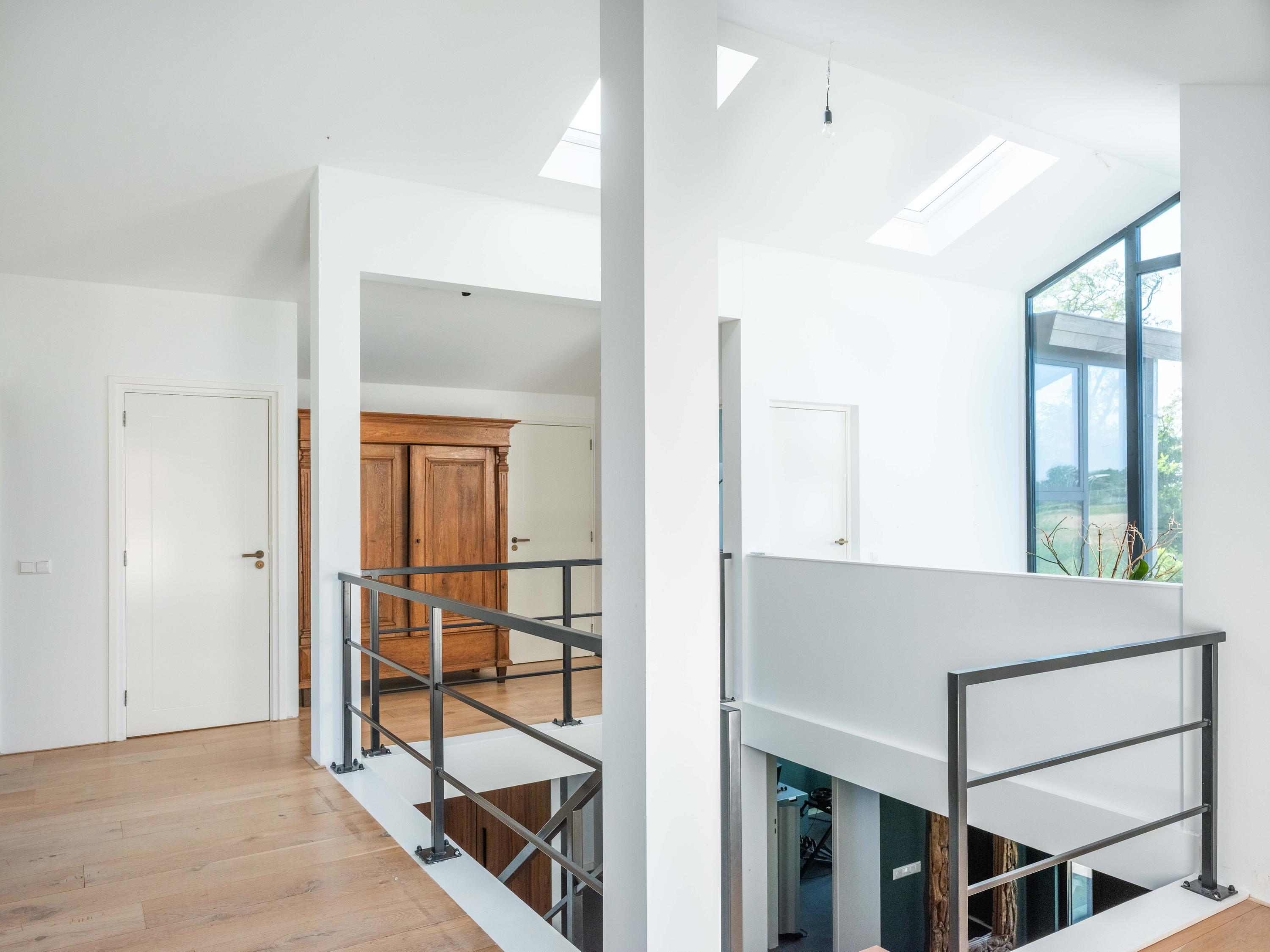 Im Obergeschoss finden sich drei Schlafzimmer, ein vielseitiges Büro mit Panoramablick, ein Yoga-Raum sowie eine spielerisch gestaltete Galerie – ideal für Familienleben und kreative Aktivitäten. Ein zweites vollwertiges Bad, separater Hauswirtschaftsraum und zahlreiche durchdachte Details sorgen für ein stimmiges Komfortgefühl.