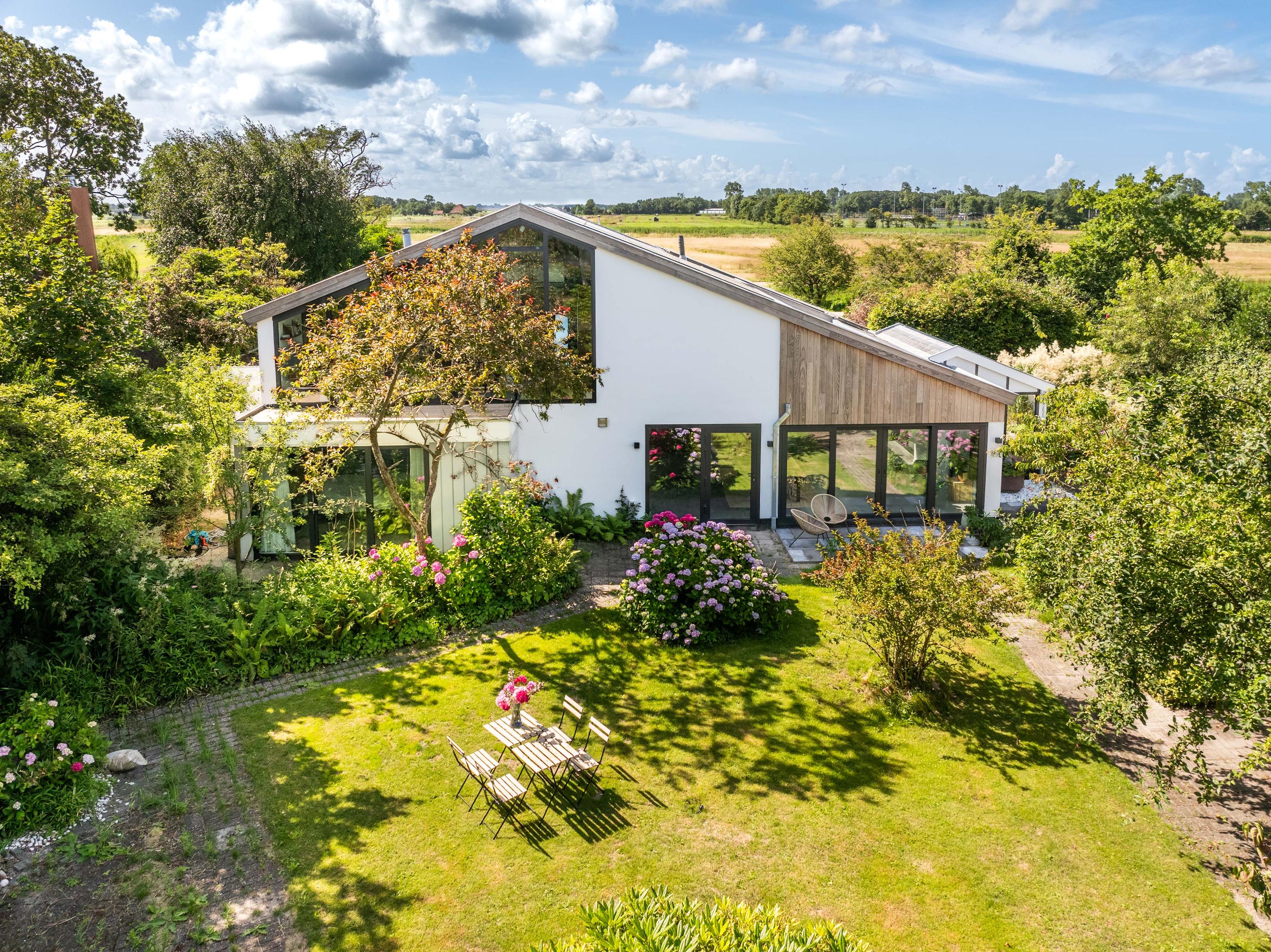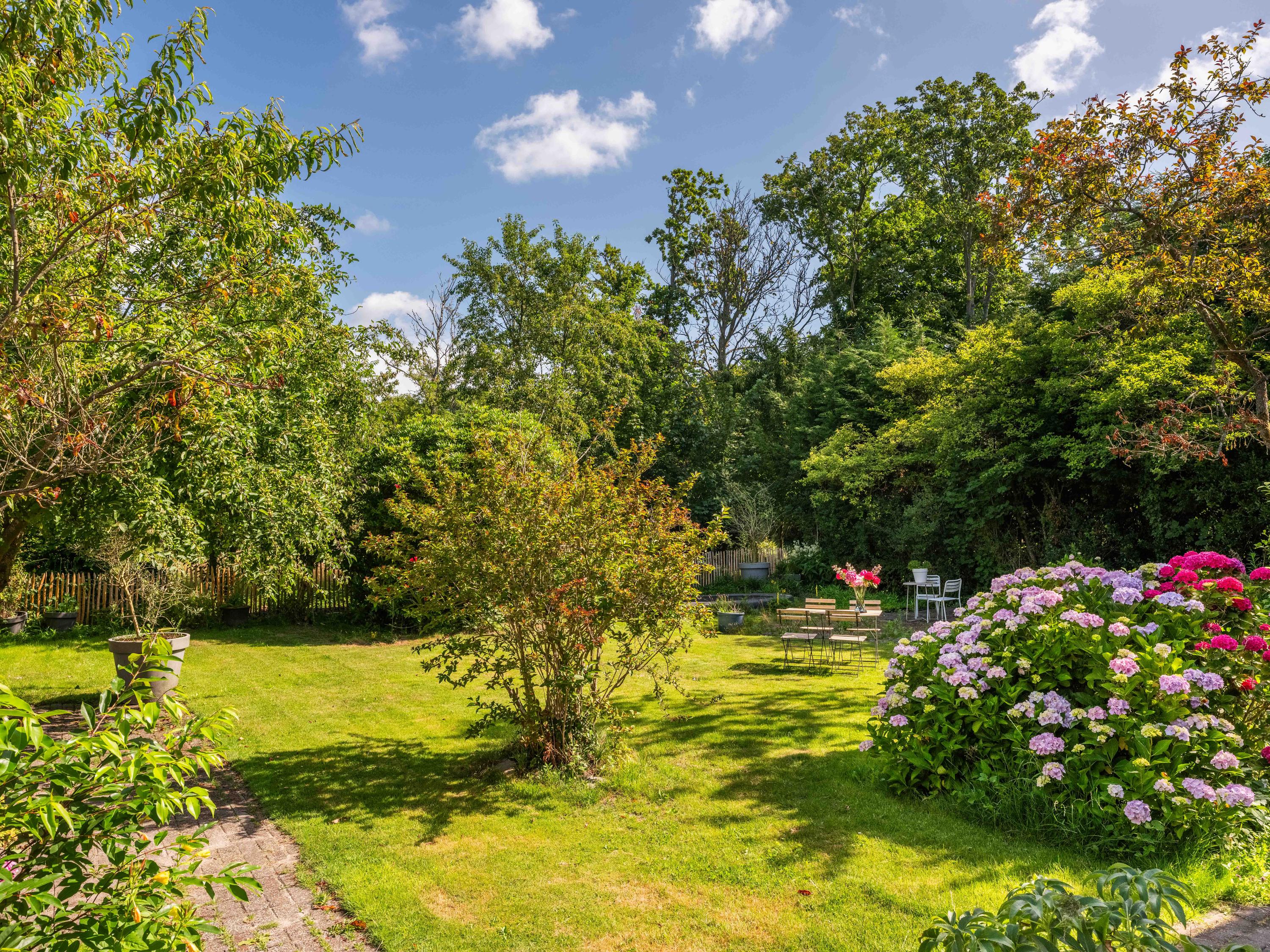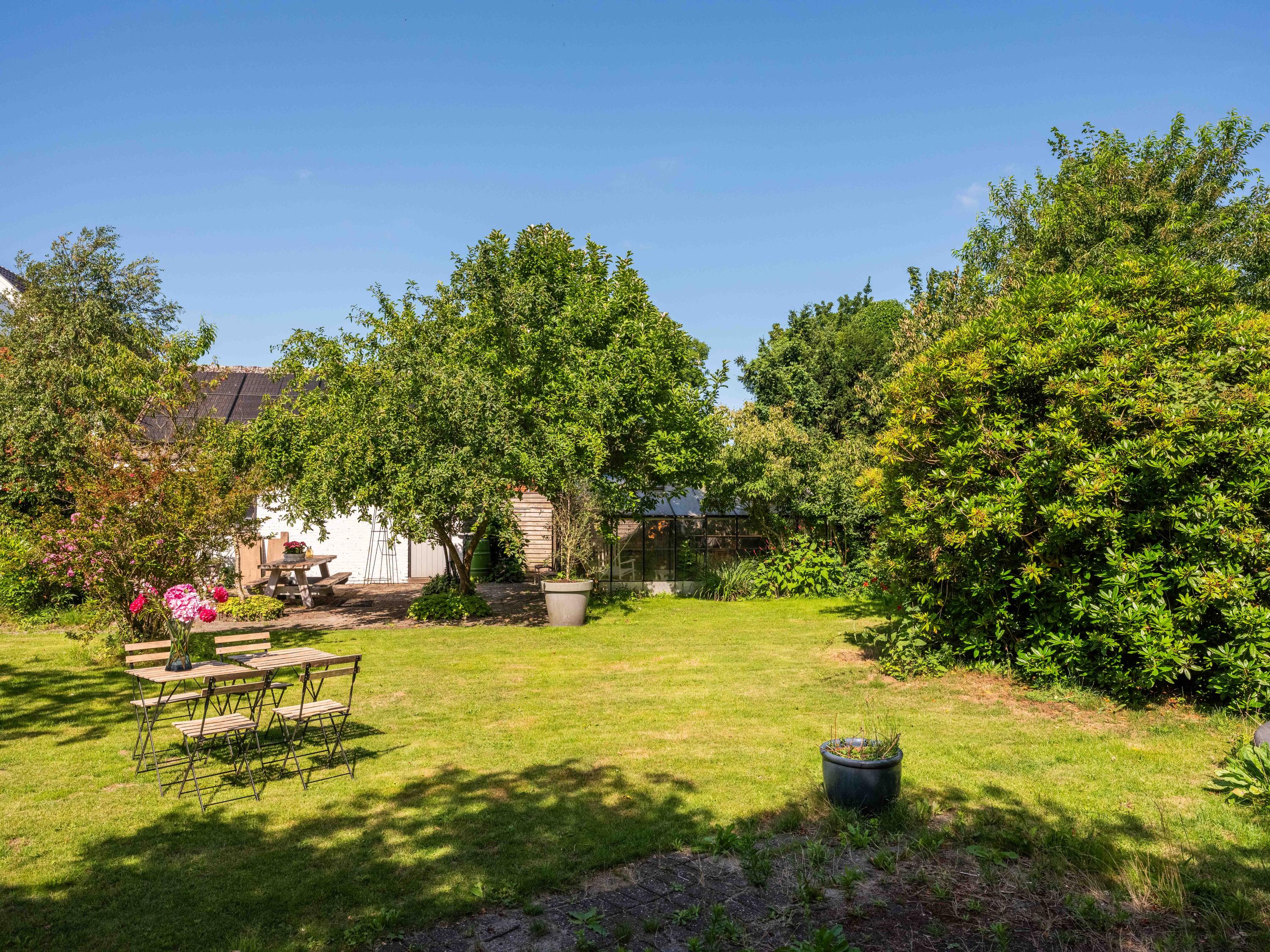 Im Außenbereich genießen Sie echte Privatsphäre, Sonne und Schatten, ein zum Entspannen eingerichtetes Gewächshaus am Außenkamin und eine 50 m² große freistehende Steingarage für zwei Autos. Zwei Einfahrten sowie zwei Ladestationen für Elektrofahrzeuge bieten zusätzlichen Komfort für Familie und Gäste.