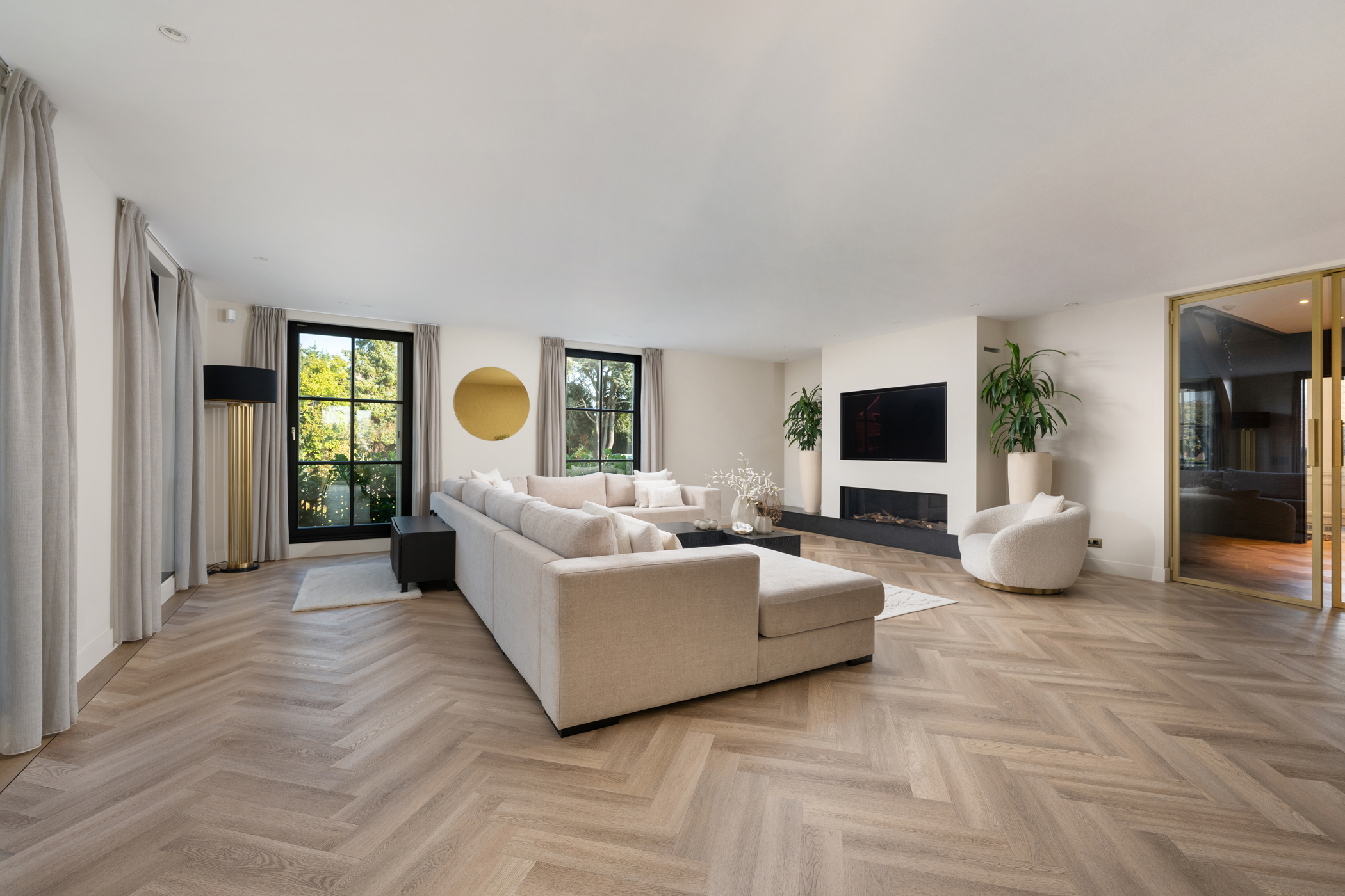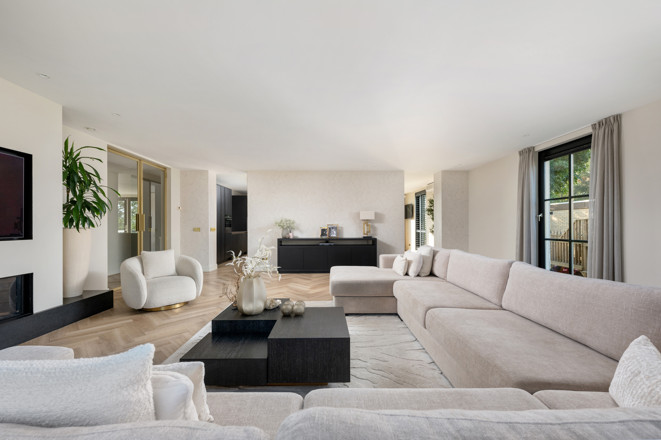 Die Zufahrt erfolgt über eine private, gesicherte Brücke, die durch gestaltete Gartenbereiche zu großzügigen Stellplätzen und einer separaten Garage führt. Das Herzstück der Villa ist das lichtdurchflutete Wohnzimmer mit großen Fenstern, modernem Kamin und direktem Zugang zur etwa 29 m² großen Terrasse. Die offene Küche bietet eine elegante Kochinsel, hochwertige Einbaugeräte und ausgesuchte Materialien – perfekt für geselliges Beisammensein.
