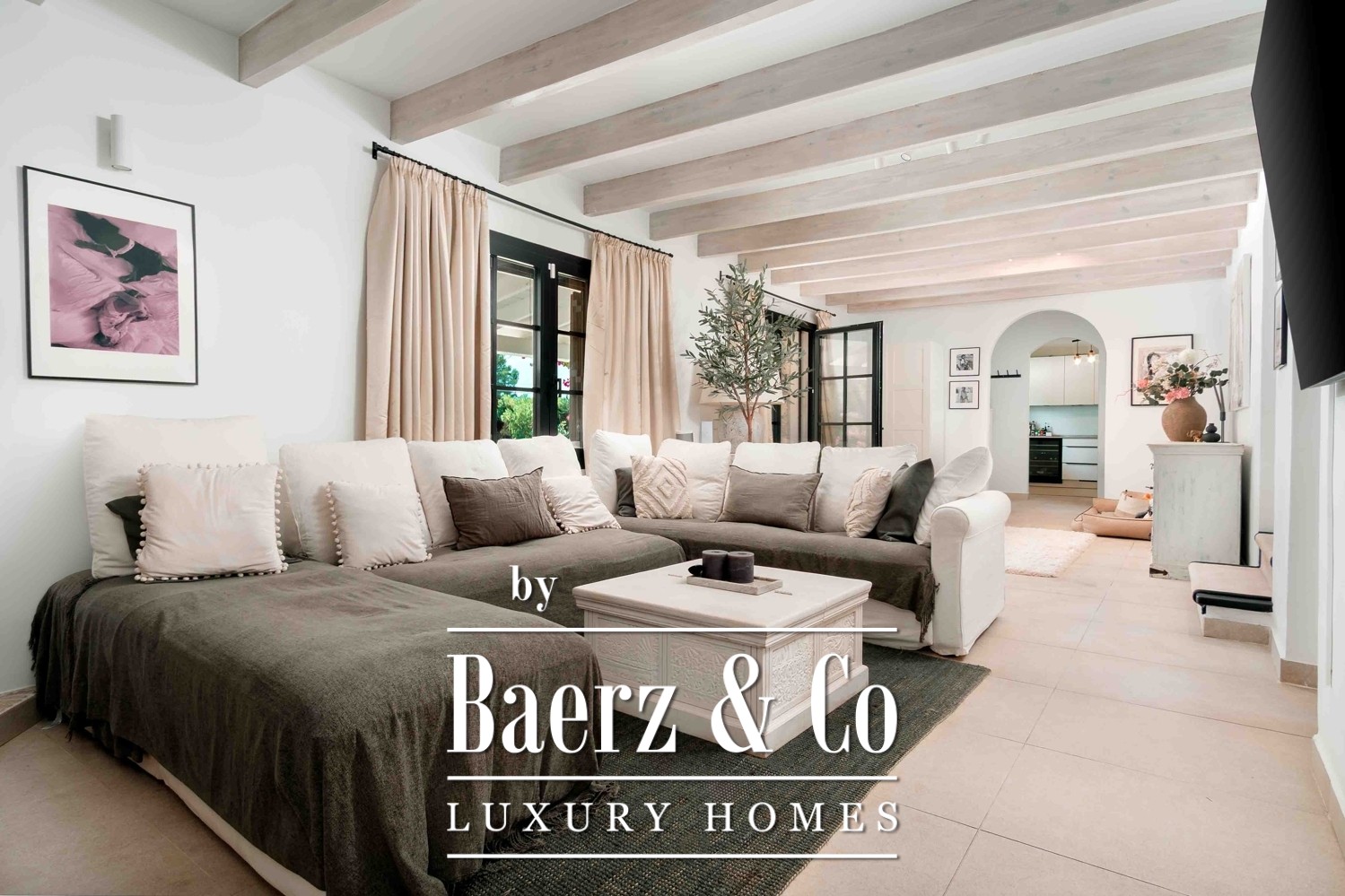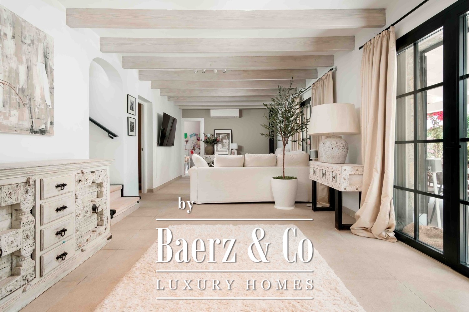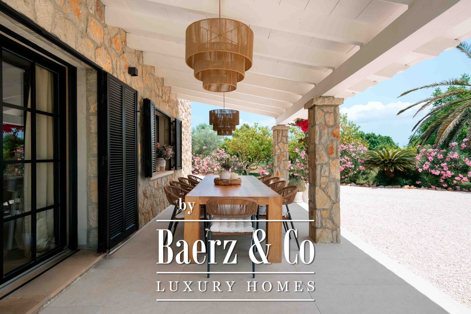 Das Anwesen befindet sich auf einem 11.000 m² großen Grundstück und beeindruckt mit Panoramablick auf das Tramuntana-Gebirge sowie einem nahtlosen Übergang zwischen Innen- und Außenbereichen. Mediterranes Licht durchflutet jeden Raum, während die großzügigen Außenanlagen zu entspannten Tagen am 12 × 6 m Salzwasserpool oder zu Abenden in der Außenküche mit Grill und Pizzaofen einladen. Die gepflegten Gärten mit zwölf Obstsorten und automatisierter Bewässerung umgeben die Terrassen und schaffen ein Ambiente kultivierter Gelassenheit.