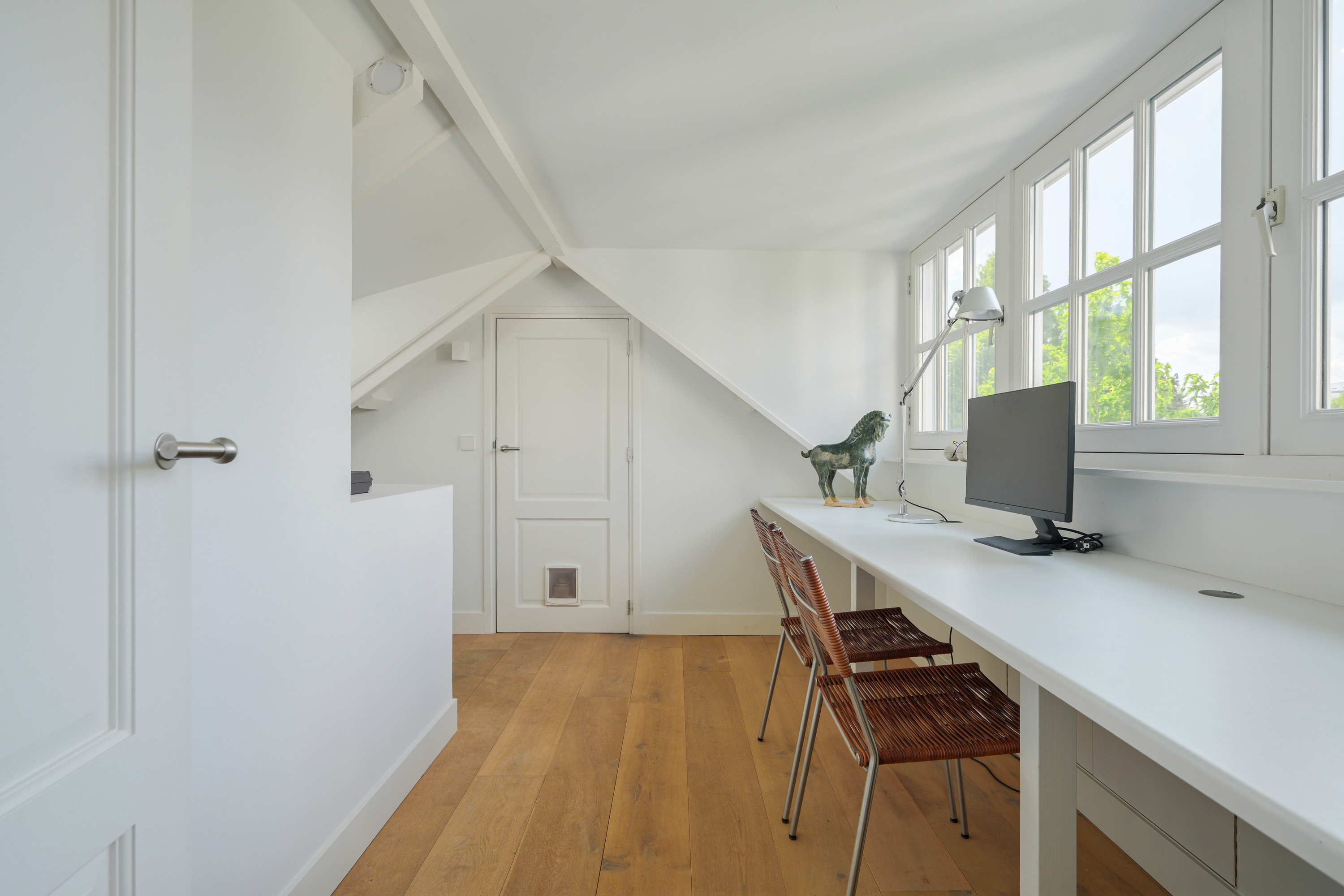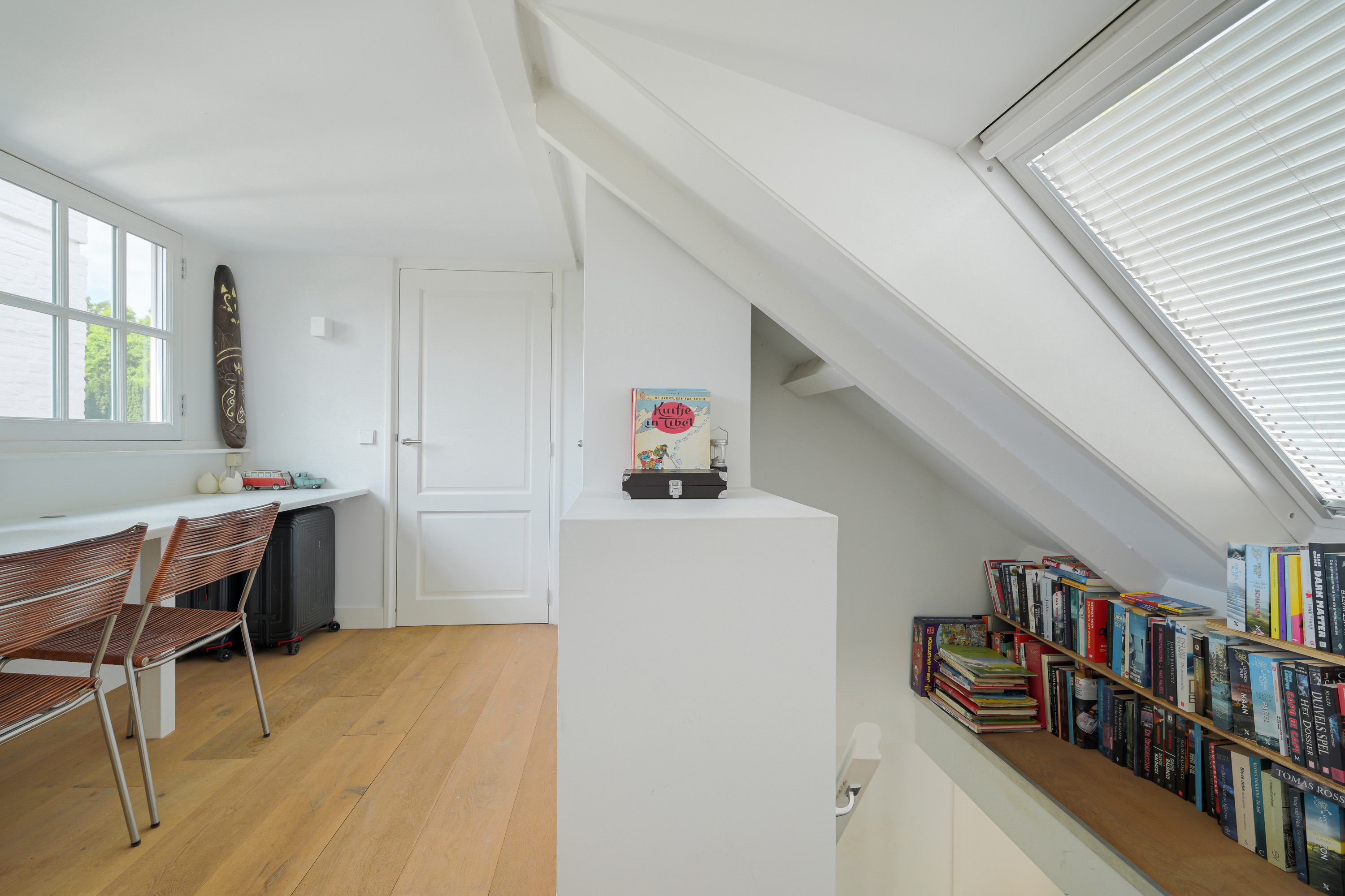Landing with dormer window and a comfortable work area, including a built-in closet.