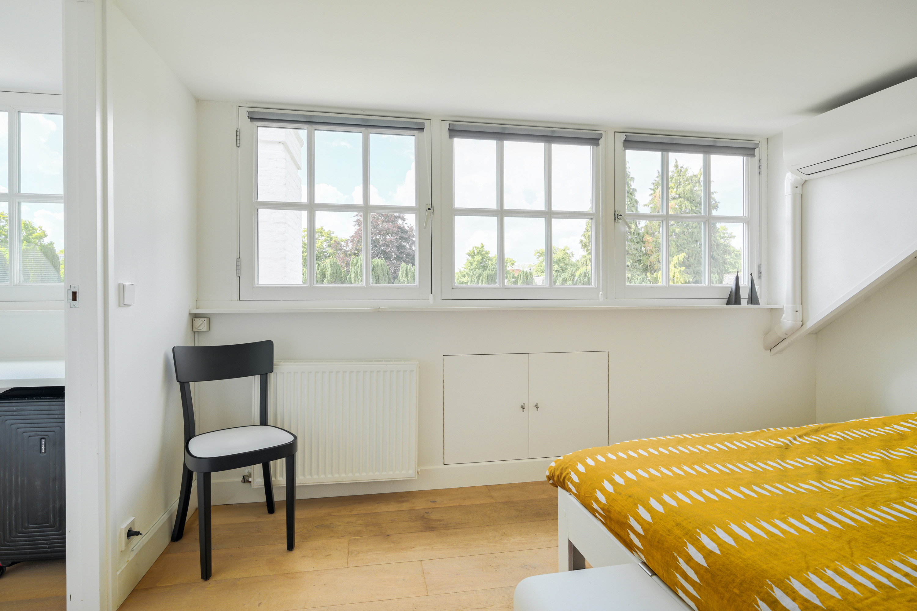 Main bedroom at the rear, offering beautiful views of the garden and adjacent park.