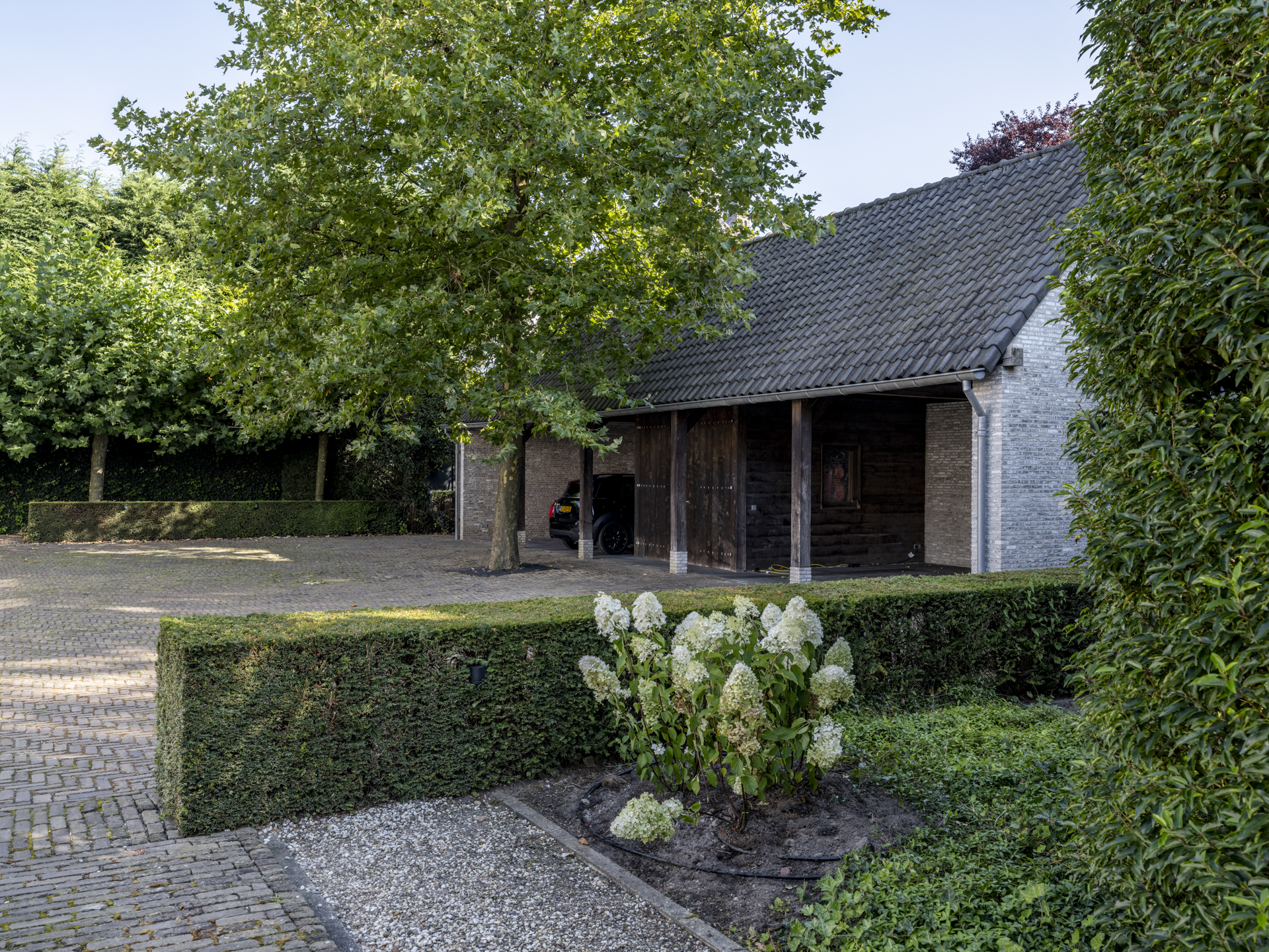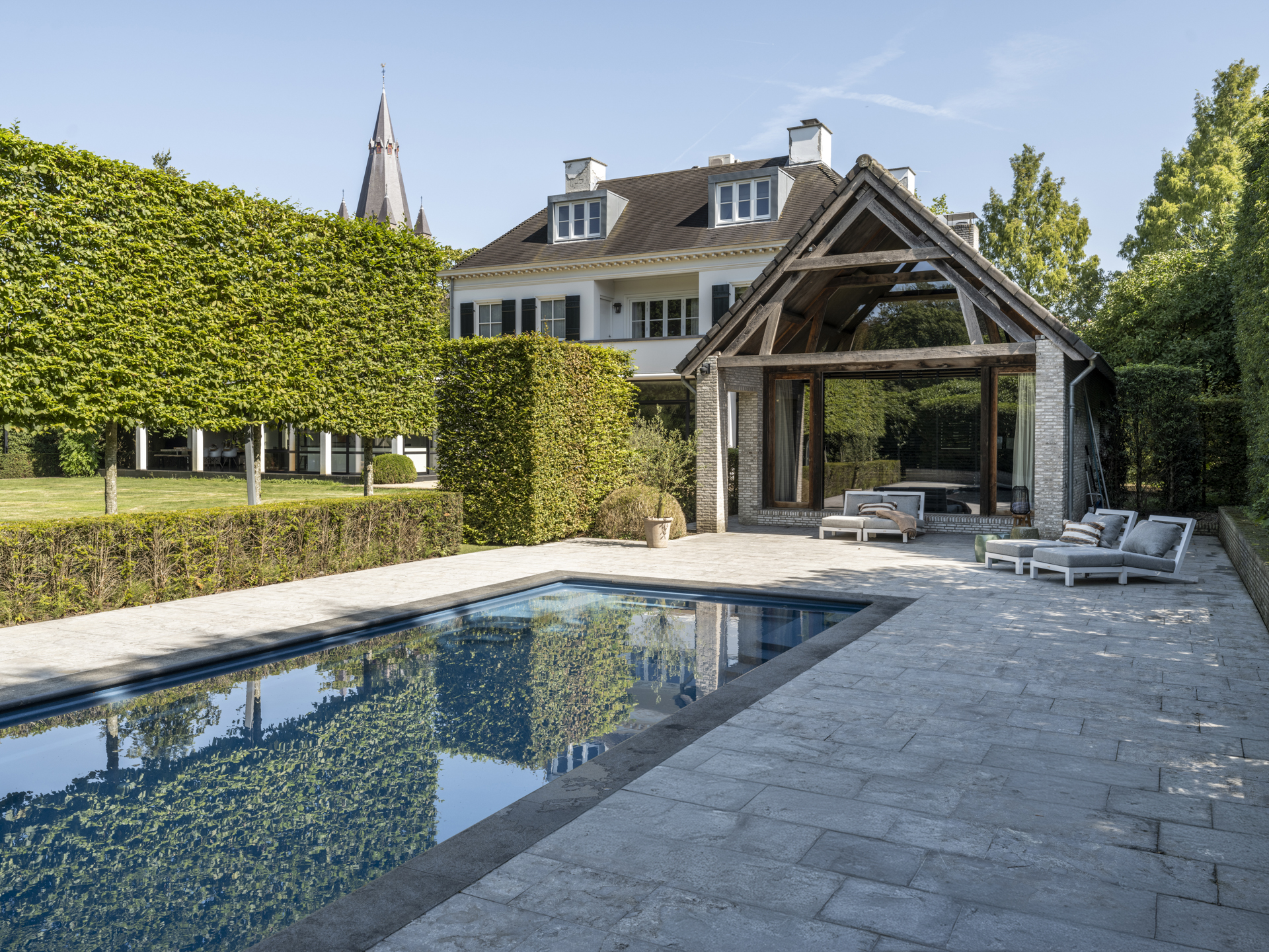 Behind the gate, you will discover the courtyard with plane trees and a wooden shed for 4 cars. The 850 m² large mansion was built in 2011 and showcases a combination of classical and modern architecture, reflecting stately allure and maximum modern living comfort. In the summer, the approximately 3,200 m² secured plot allows you to enjoy the swimming pool, the (covered) terraces, and the spacious lawn, which includes a synthetic grass hockey field for the children. In the winter, the light-filled rooms facing the garden provide a cozy space of peace and comfort, right in the charming Ginneken.