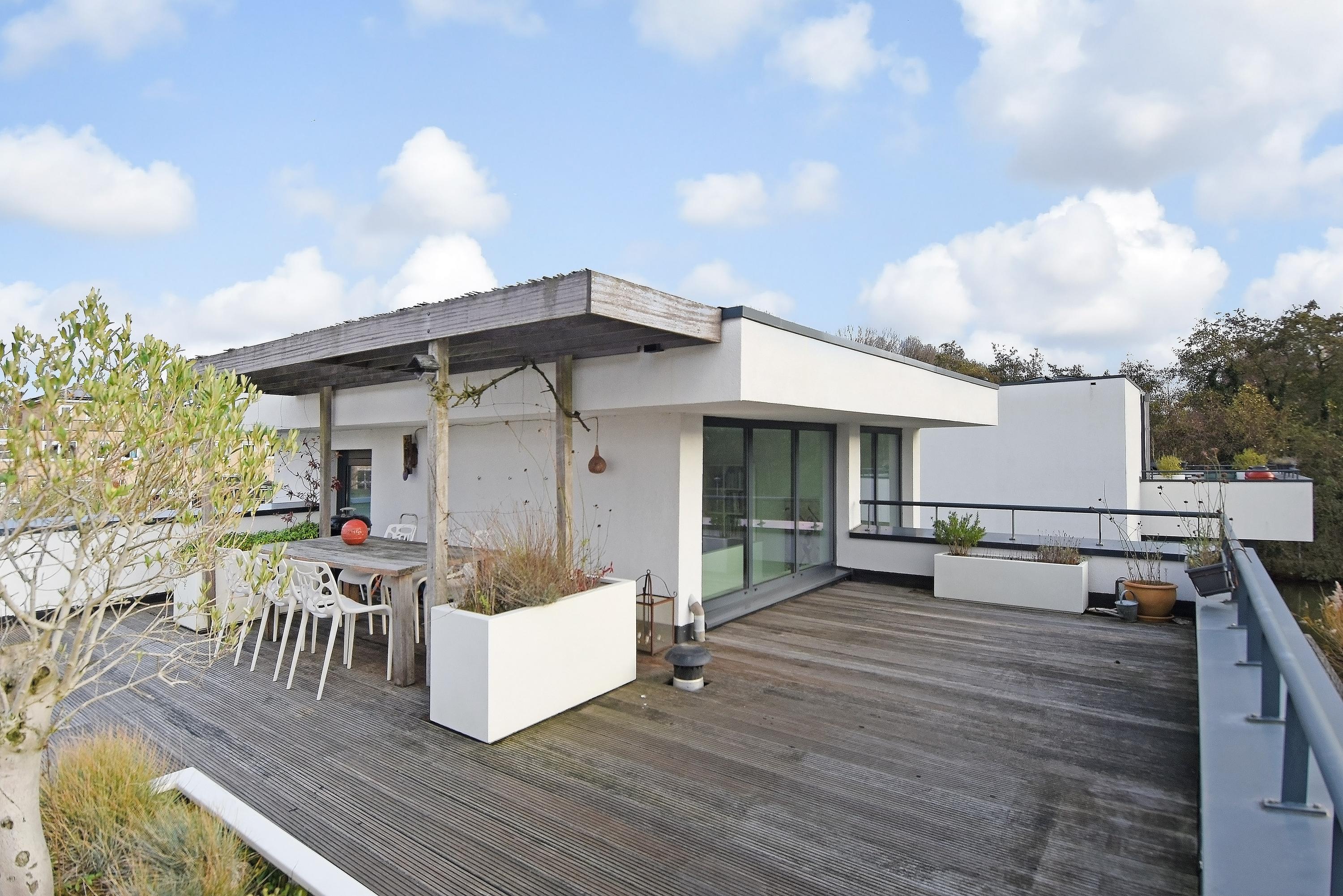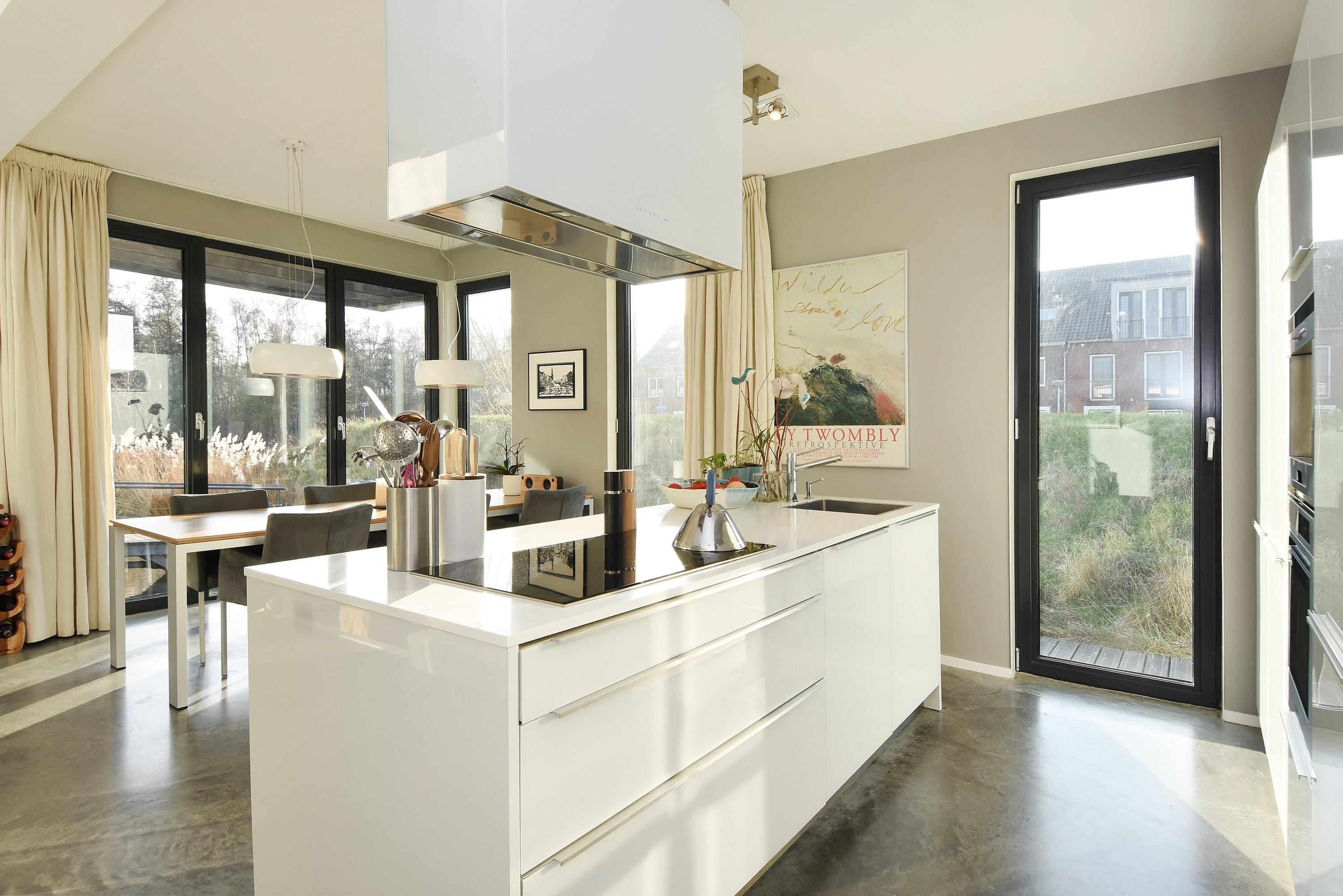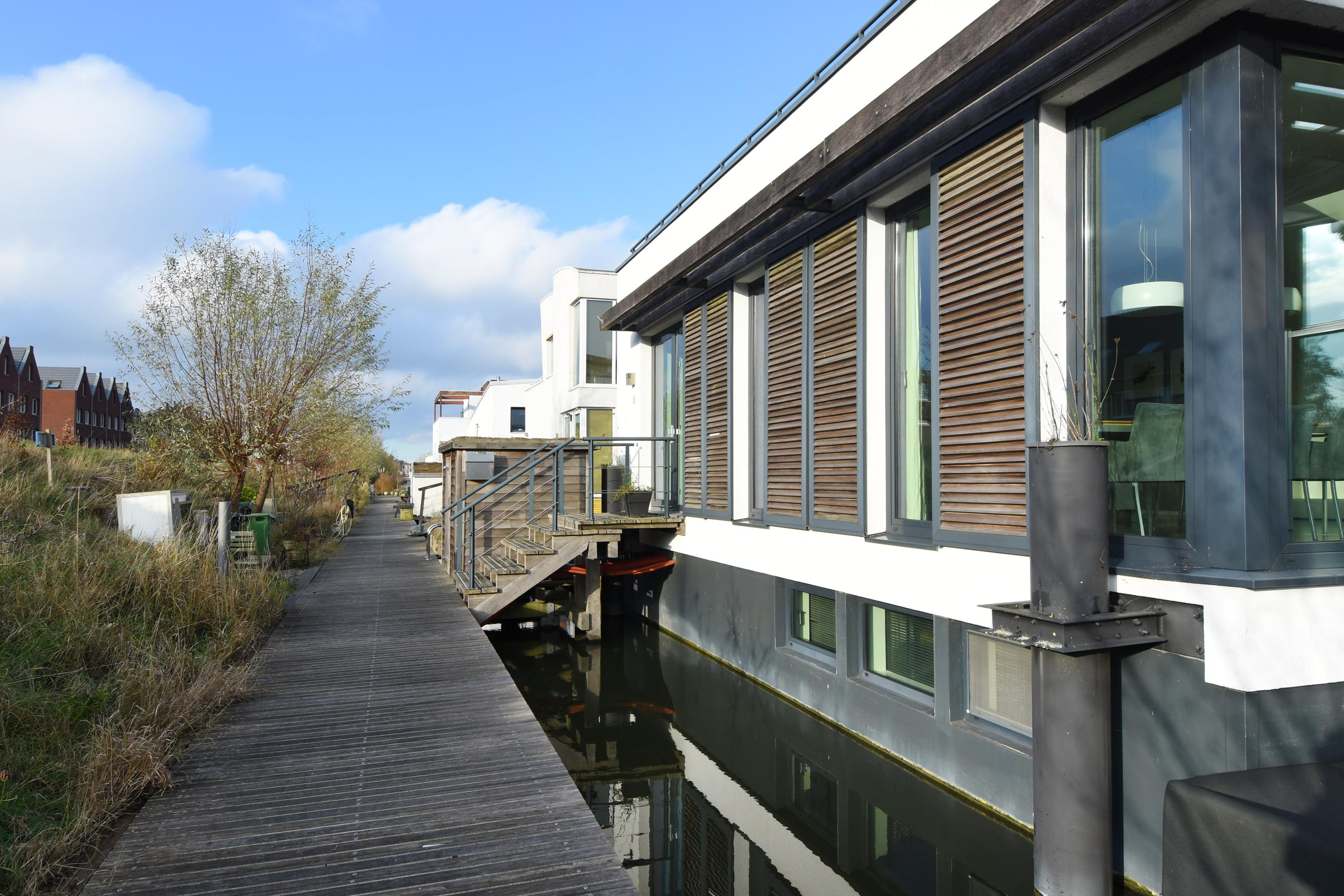 Die Raumaufteilung ist bewusst vielseitig gestaltet. Nach dem Eintreten gelangen Sie über einen festen Treppenaufgang mit separatem Fahrradabstellraum zum Haupteingang. Die Diele eröffnet einen effizienten Hauswirtschaftsbereich sowie eine Master-Suite mit Bad en suite, begehbarer Dusche und Doppelwaschtisch. Das Erdgeschoss vereint die voll ausgestattete Küche mit großzügiger Kochinsel und den Wohnbereich, bei dem bodentiefe Fenster das Wasser inszenieren. Terrassen am Wasser und auf dem Dach bieten private Refugien für entspannte Stunden im Freien. Die als flexibler Bereich konzipierte Galerie eignet sich ideal für Arbeit, Freizeit oder stille Momente unter dem niederländischen Himmel.