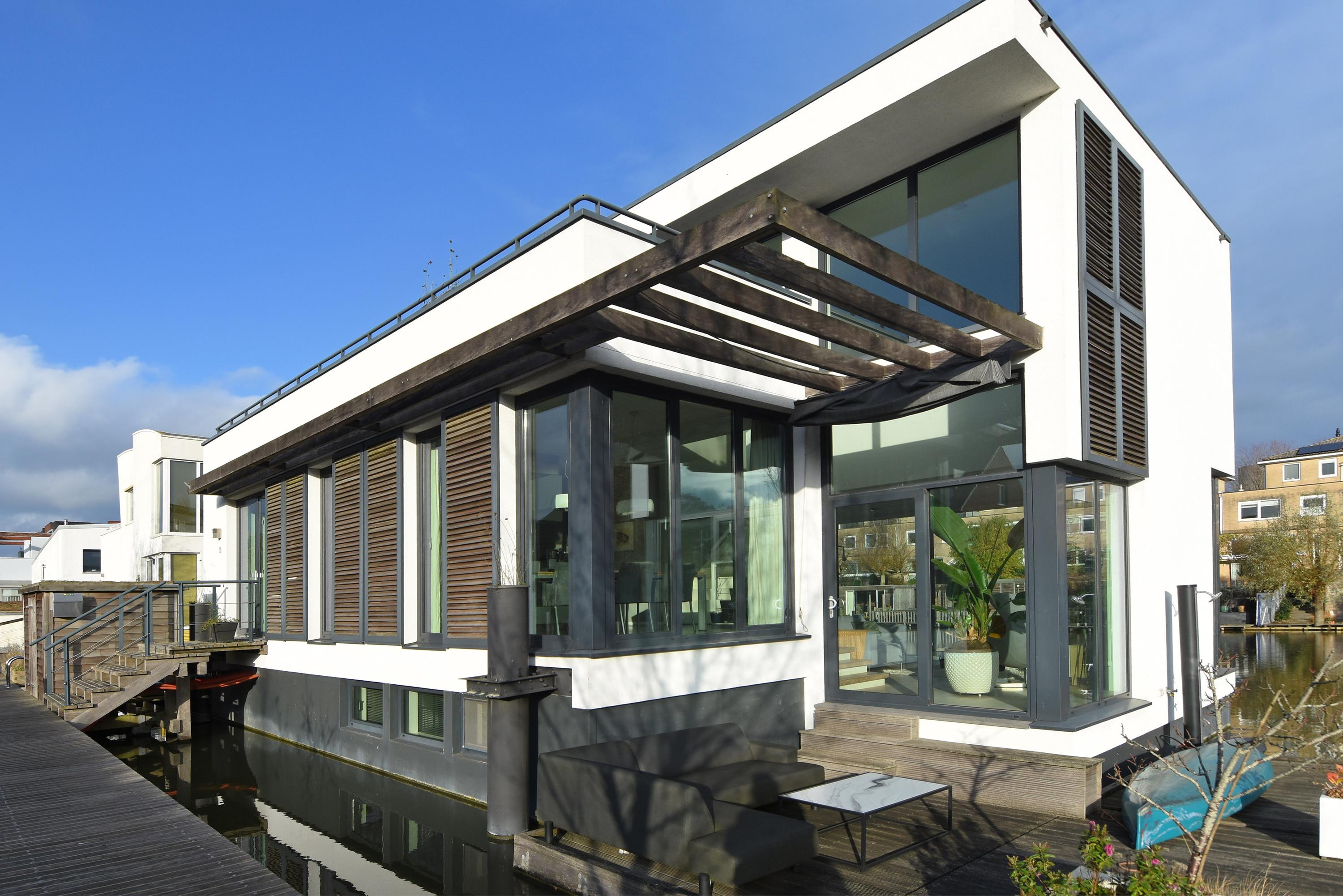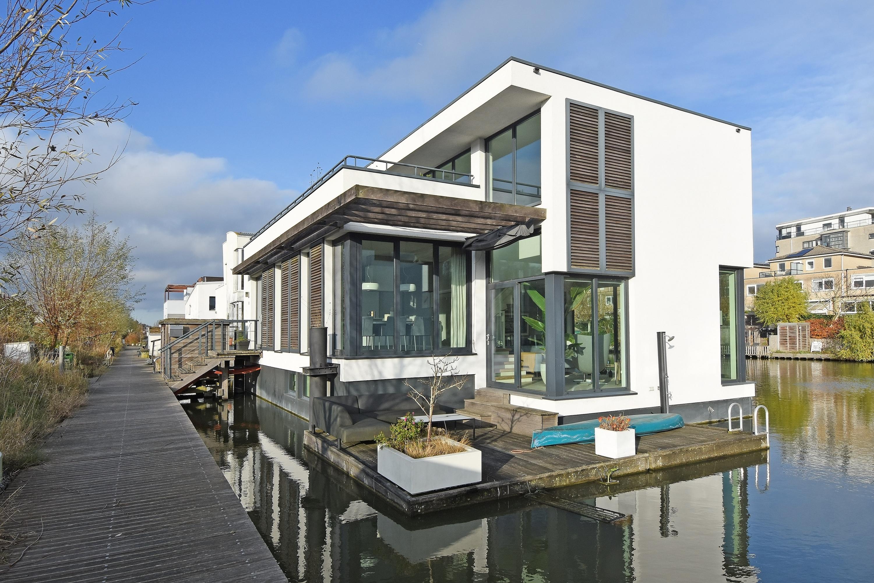 Water Villa Delft präsentiert sich als seltenes Angebot, das zeitgenössische Architektur mit essentieller Privatsphäre und einer Verbindung zur Natur vereint. Diese von einem Architekten entworfene Schwimmvilla mit etwa 192 m² besticht durch lichtdurchflutete Räume, hochwertige Ausstattungen und einen außergewöhnlichen Raumeindruck. Direkt an einem gemeinschaftlichen Bootssteg und angrenzend an natürliche Vegetation gelegen, bietet sie ein Gefühl von Abgeschiedenheit, uneingeschränkten Wasserblick und direkten Zugang zum ruhigen Hof van Delft Park.