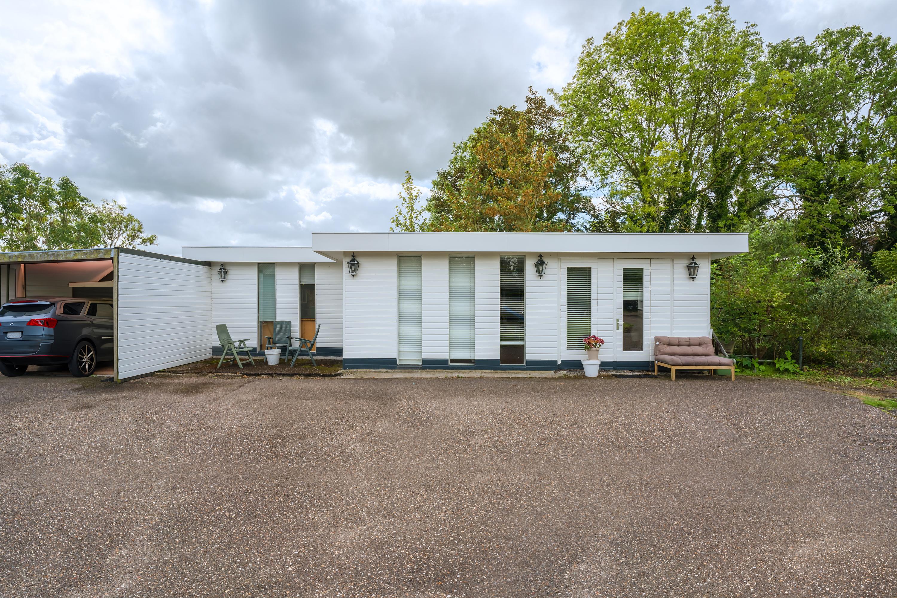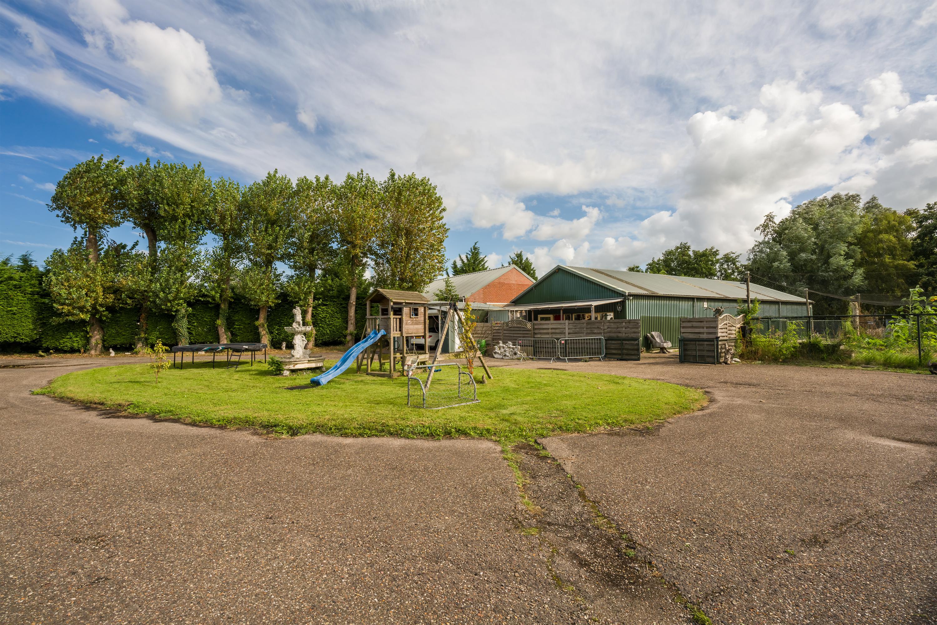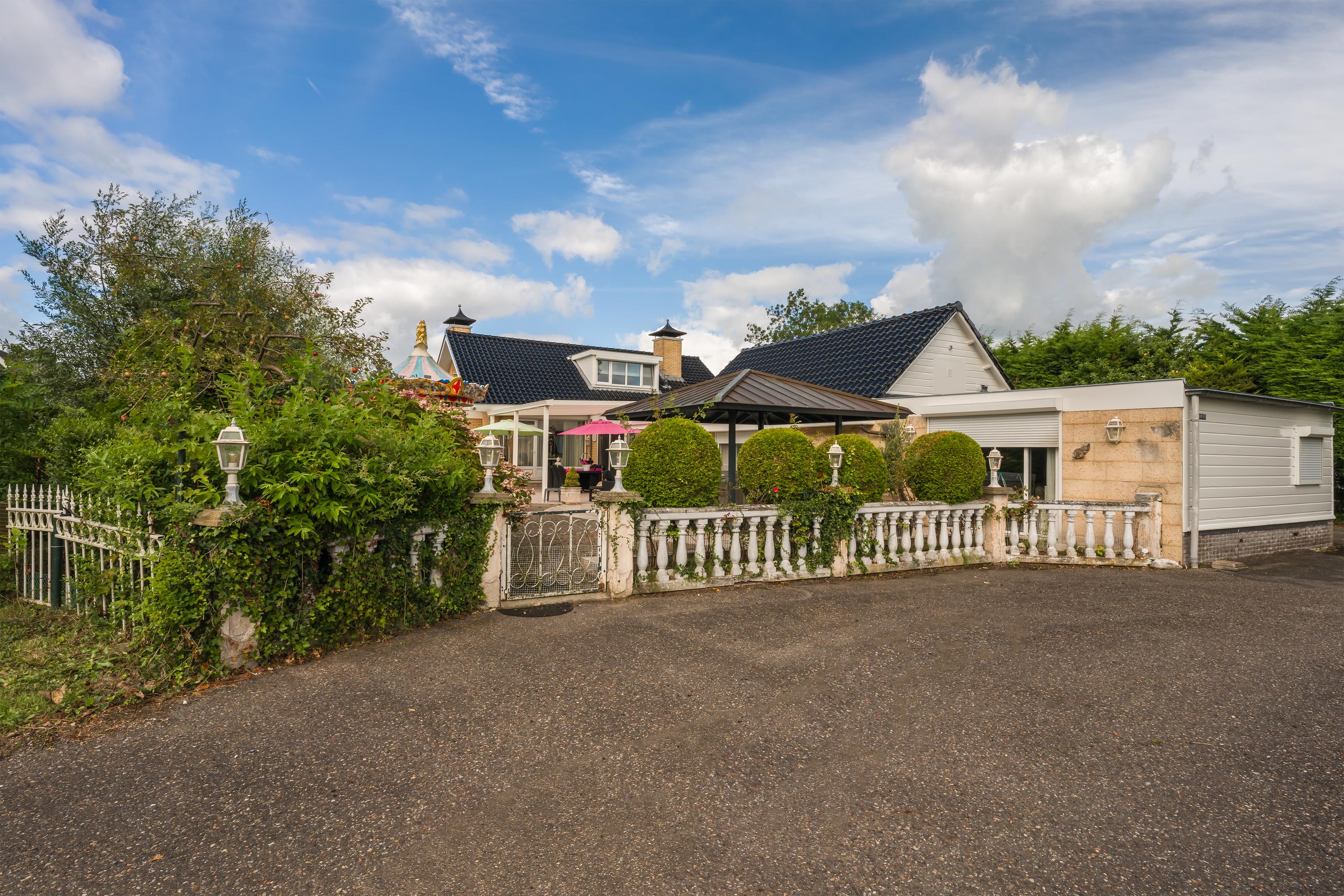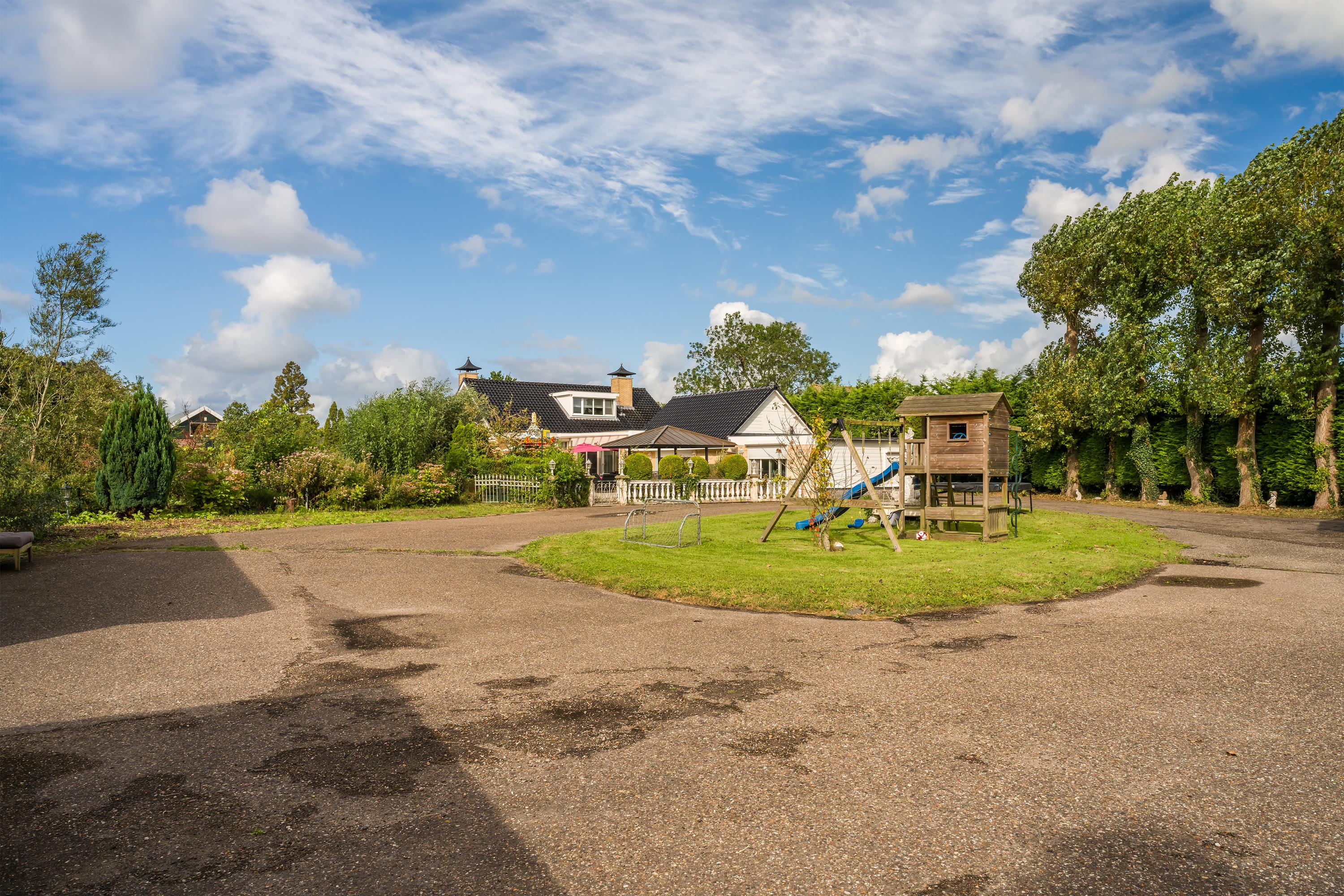Das freistehende Semi-Bungalow in Den Ilp verkörpert abgeschiedenes Landleben mit raffinierter Funktionalität und Ausstrahlung. Das Anwesen bietet 262 m² Wohnfläche auf 4.765 m² Privatgrundstück, direkt angrenzend an das Natura 2000-Schutzgebiet Ilperveld und einen offenen Wasserlauf. Dieses Polderdomizil wird von einem weißen Eisentor und einer von Bäumen gesäumten Asphaltzufahrt erschlossen und präsentiert einen von Amerika inspirierten Bungalow, ein großzügiges Gästehaus sowie eine 368 m² große, beheizte Gewerbefläche. Ein runder Vorhof führt zur Garage und zu den Tiergehegen und schafft eine Atmosphäre von unaufdringlicher Großzügigkeit und Privatsphäre.