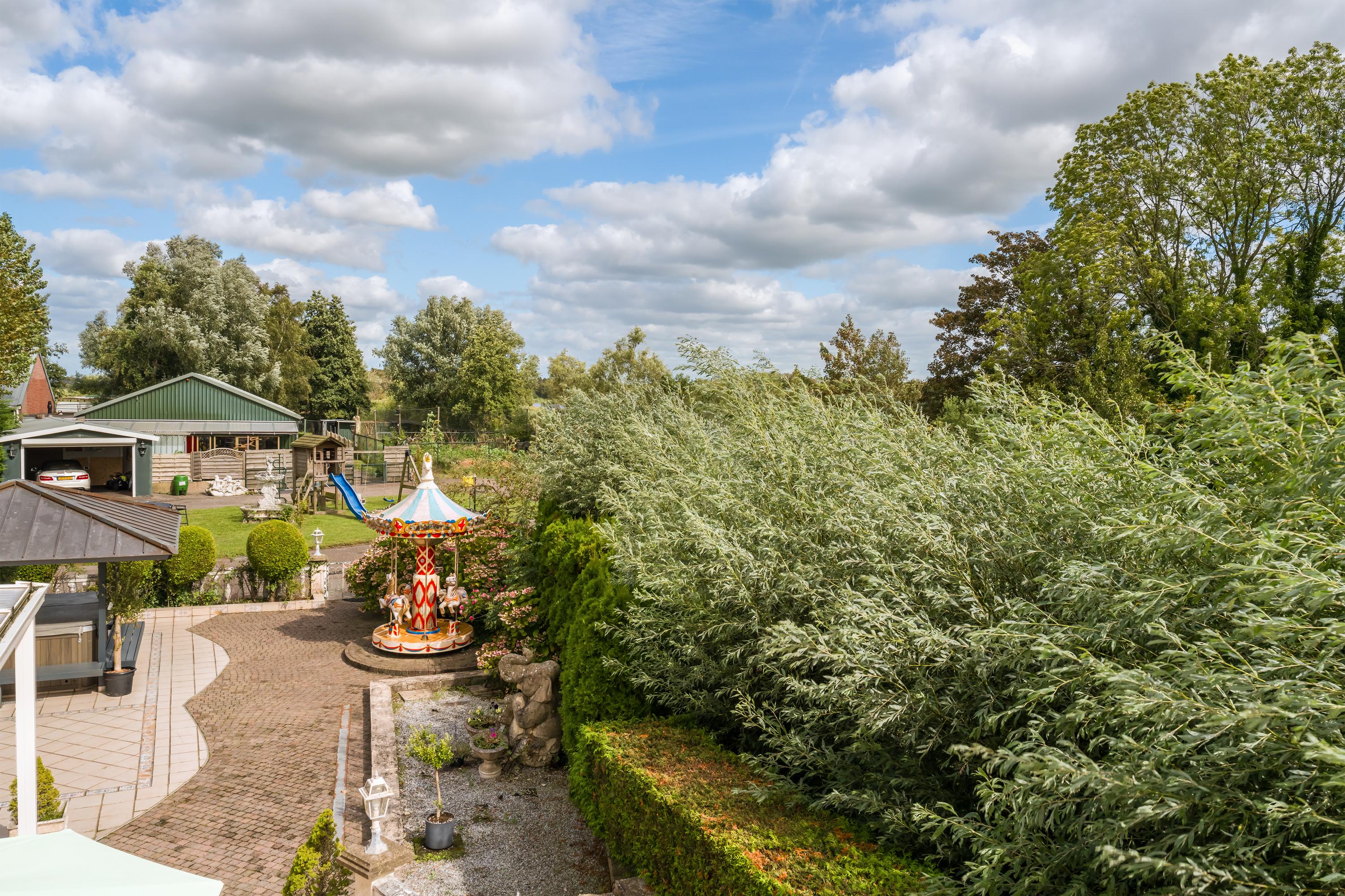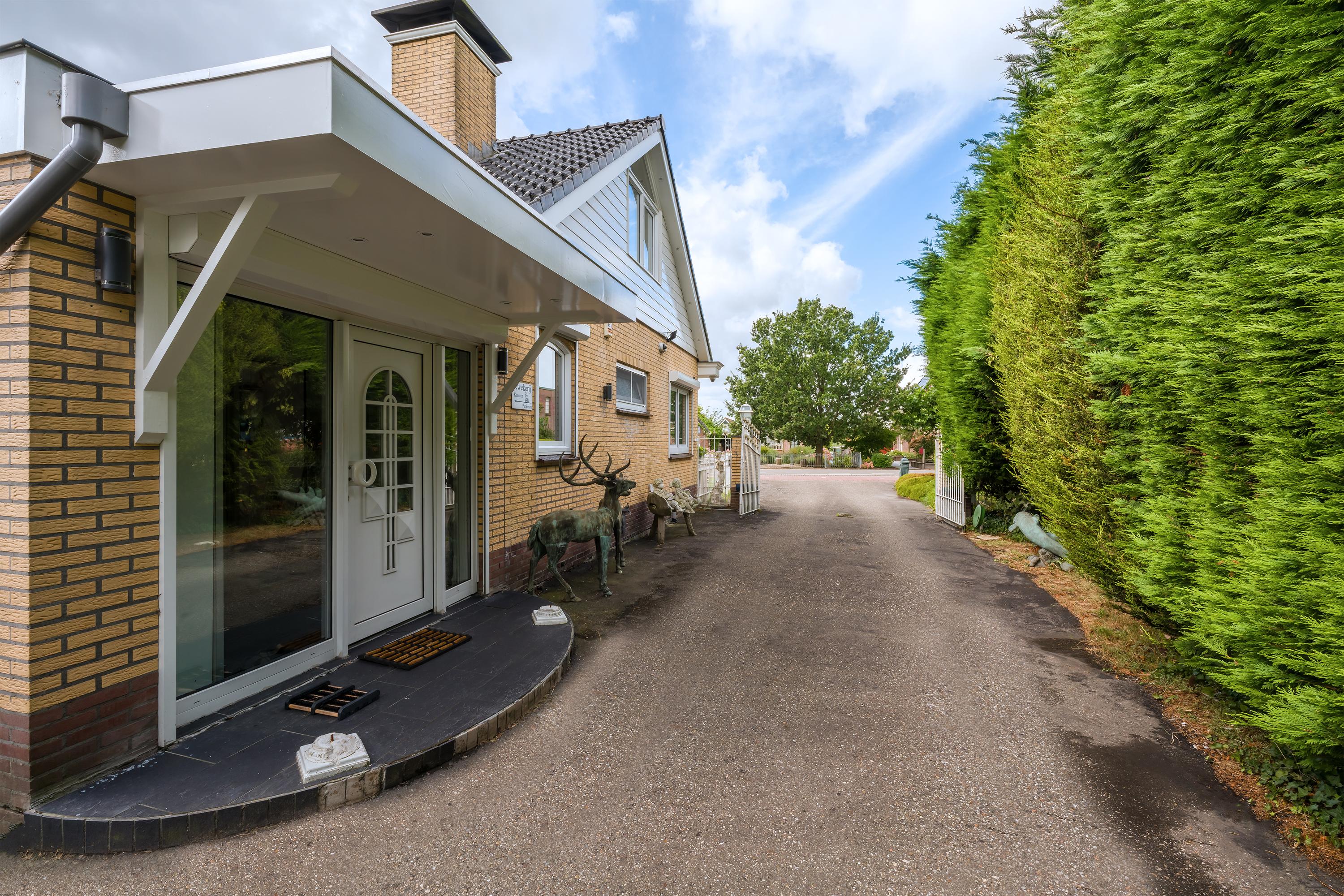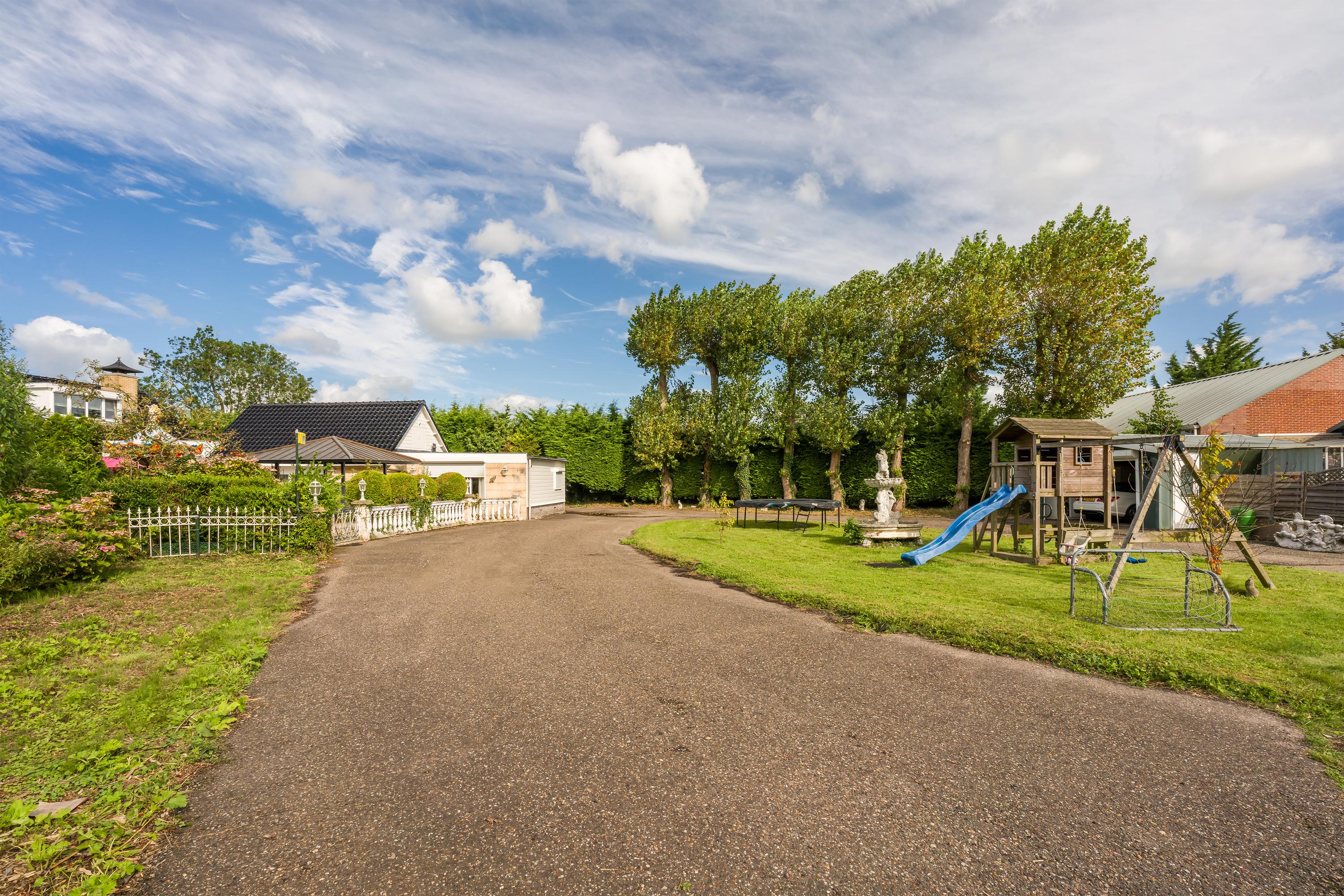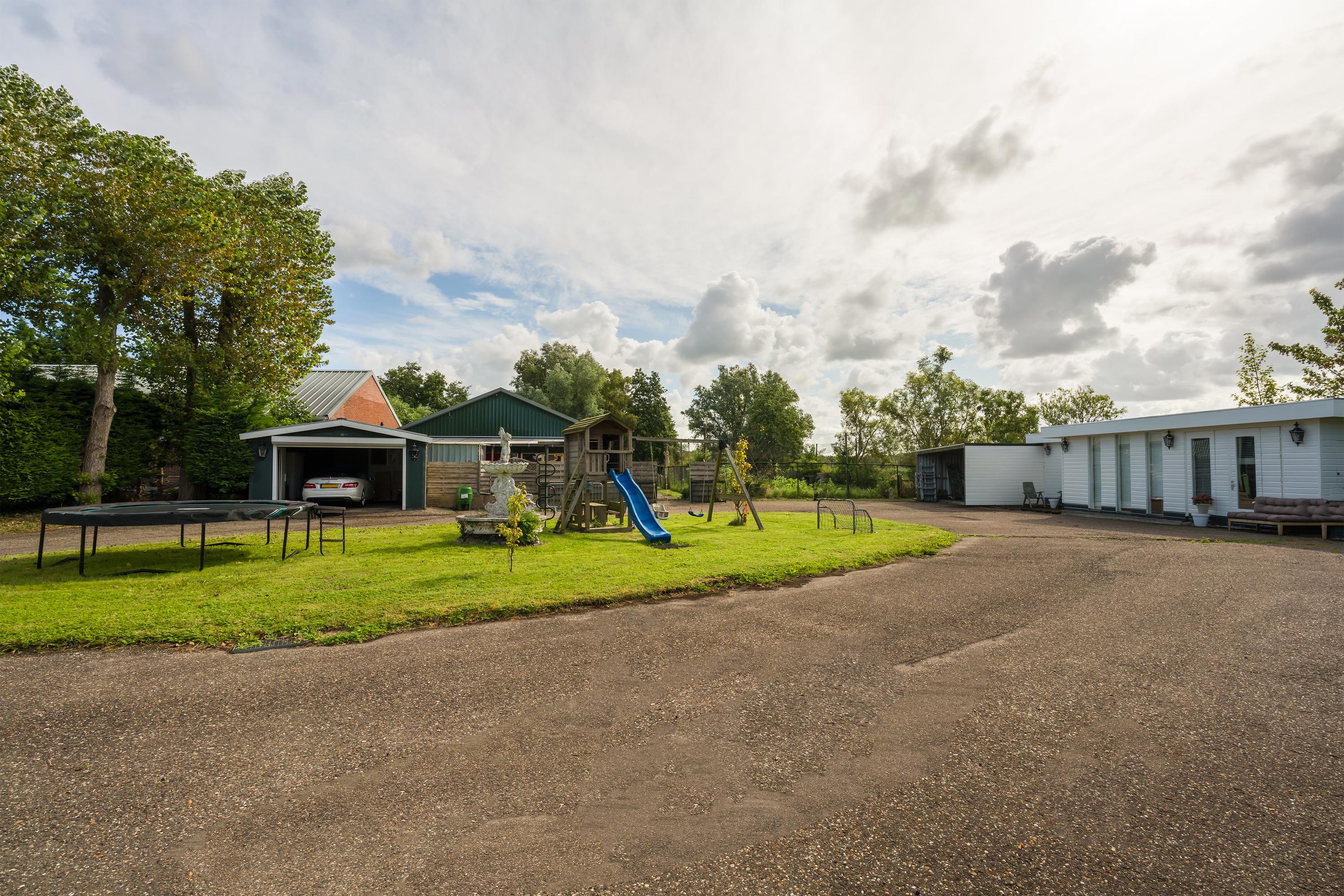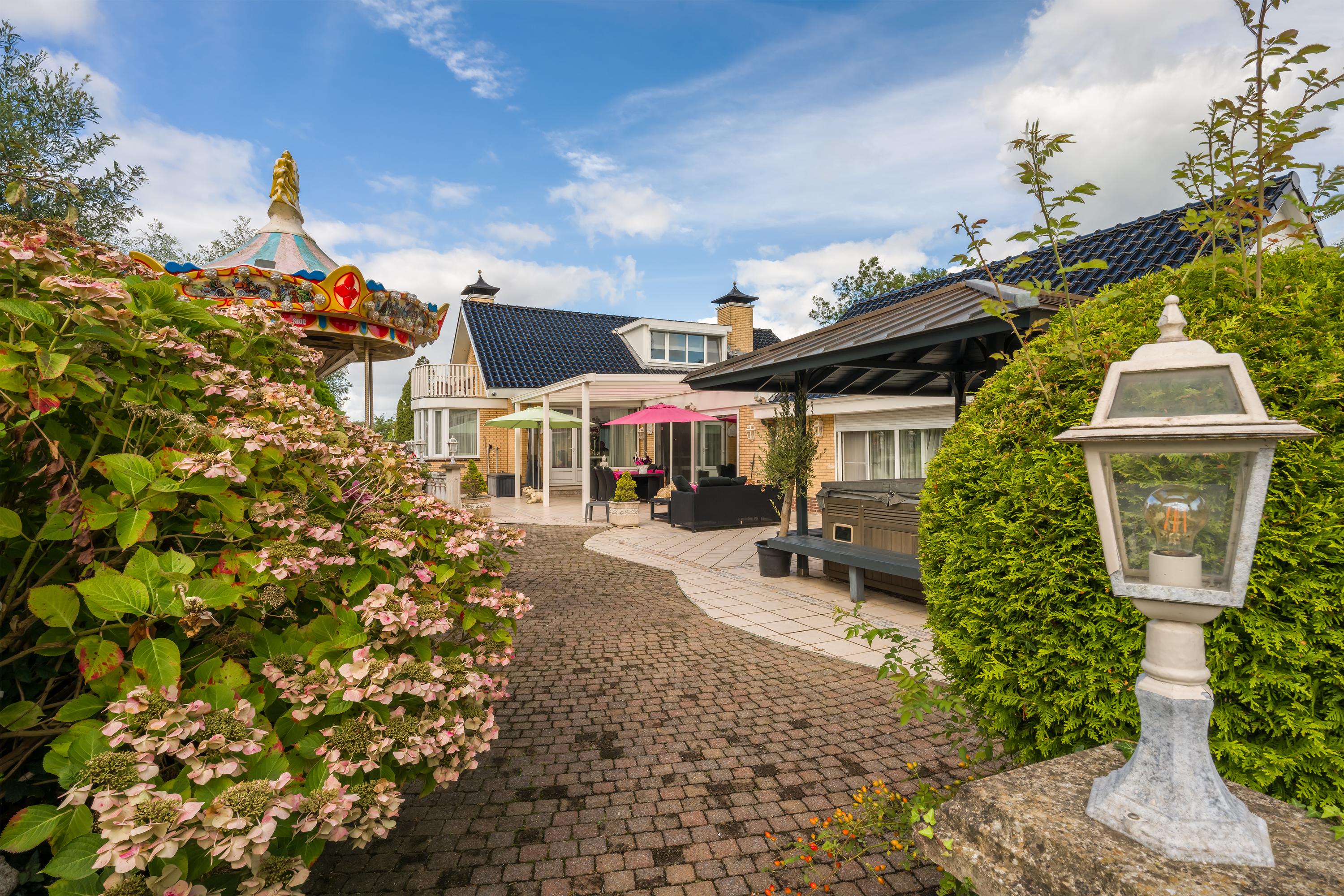 Das freistehende Semi-Bungalow in Den Ilp verkörpert abgeschiedenes Landleben mit raffinierter Funktionalität und Ausstrahlung. Das Anwesen bietet 262 m² Wohnfläche auf 4.765 m² Privatgrundstück, direkt angrenzend an das Natura 2000-Schutzgebiet Ilperveld und einen offenen Wasserlauf. Dieses Polderdomizil wird von einem weißen Eisentor und einer von Bäumen gesäumten Asphaltzufahrt erschlossen und präsentiert einen von Amerika inspirierten Bungalow, ein großzügiges Gästehaus sowie eine 368 m² große, beheizte Gewerbefläche. Ein runder Vorhof führt zur Garage und zu den Tiergehegen und schafft eine Atmosphäre von unaufdringlicher Großzügigkeit und Privatsphäre.