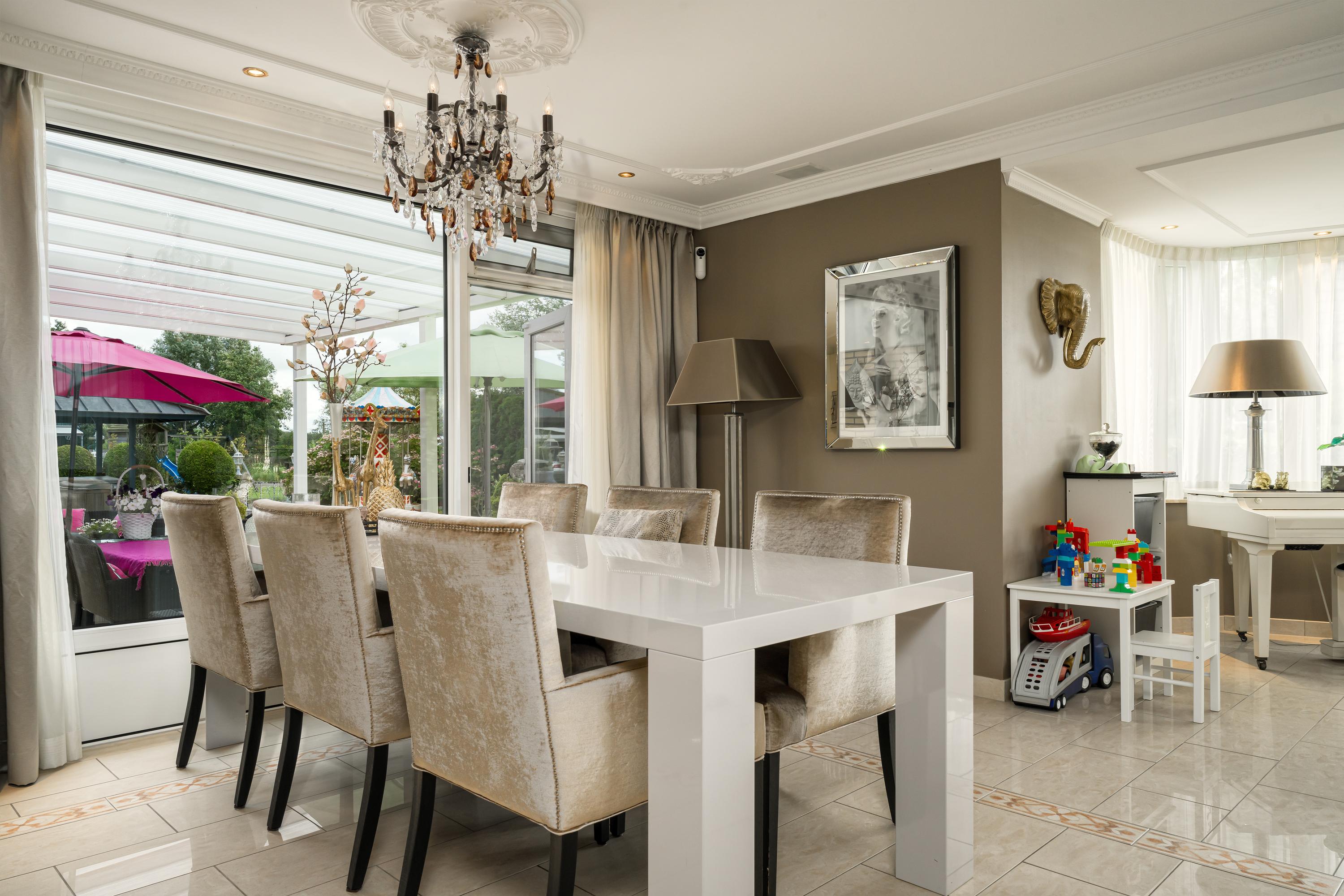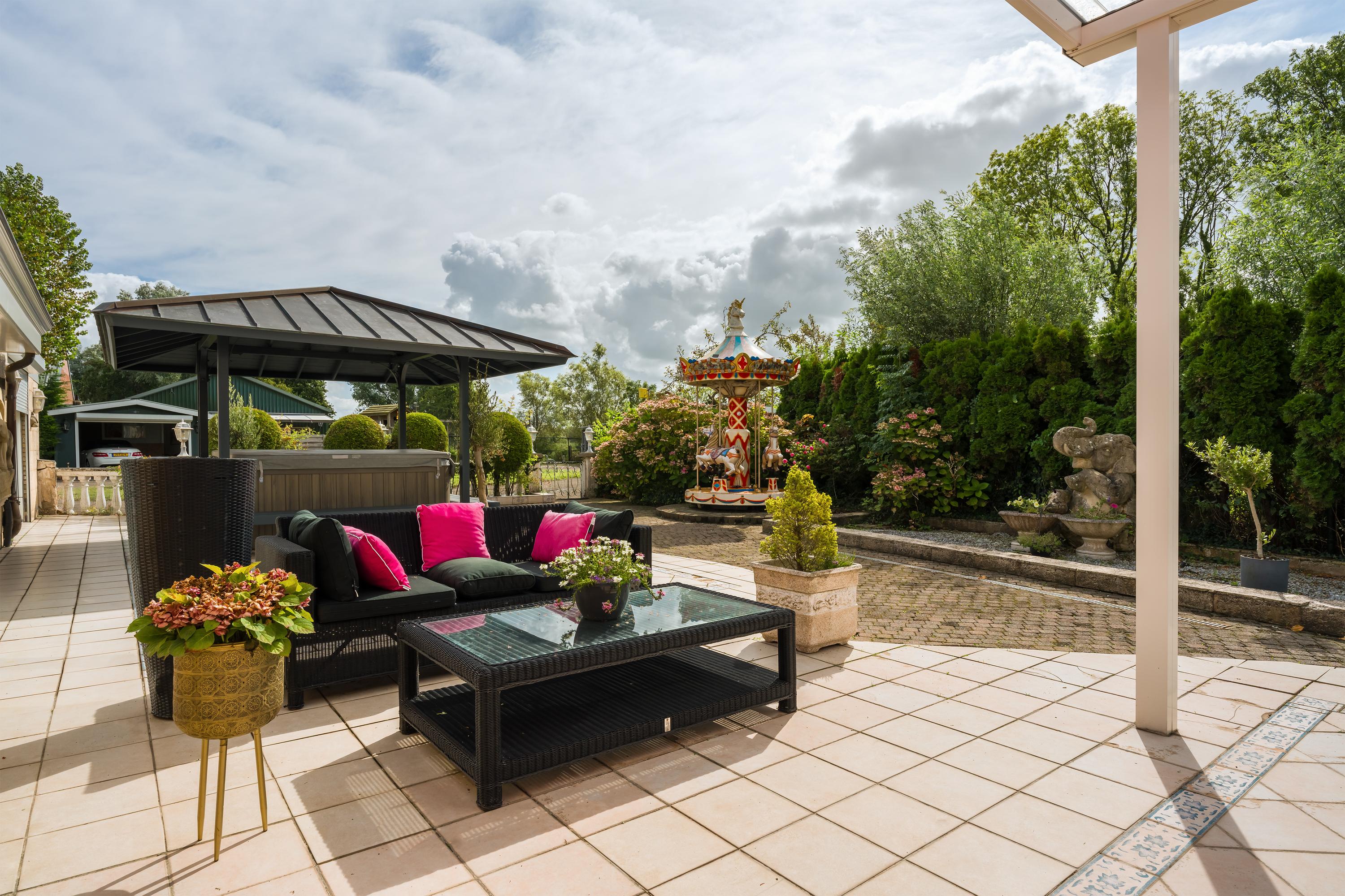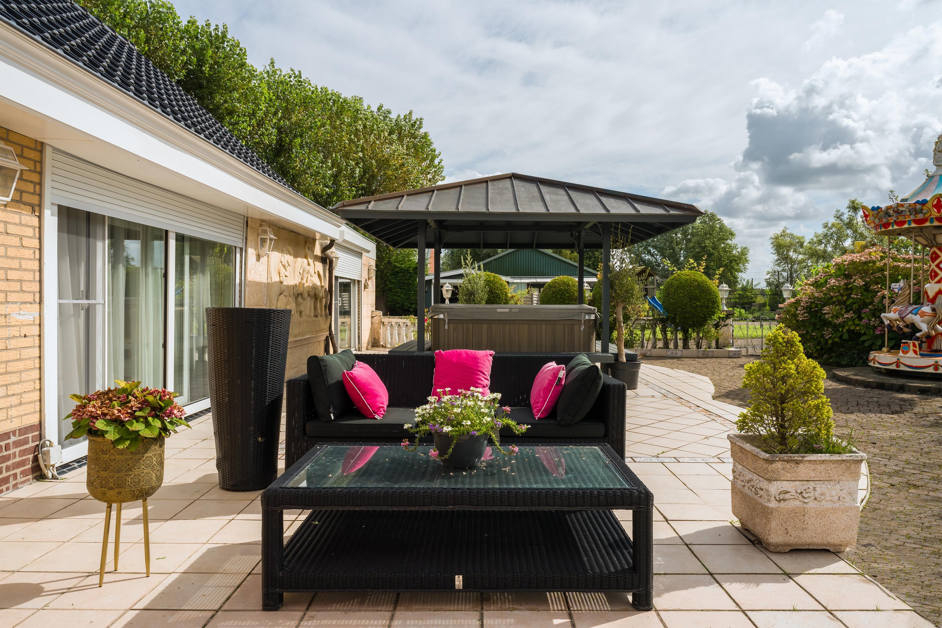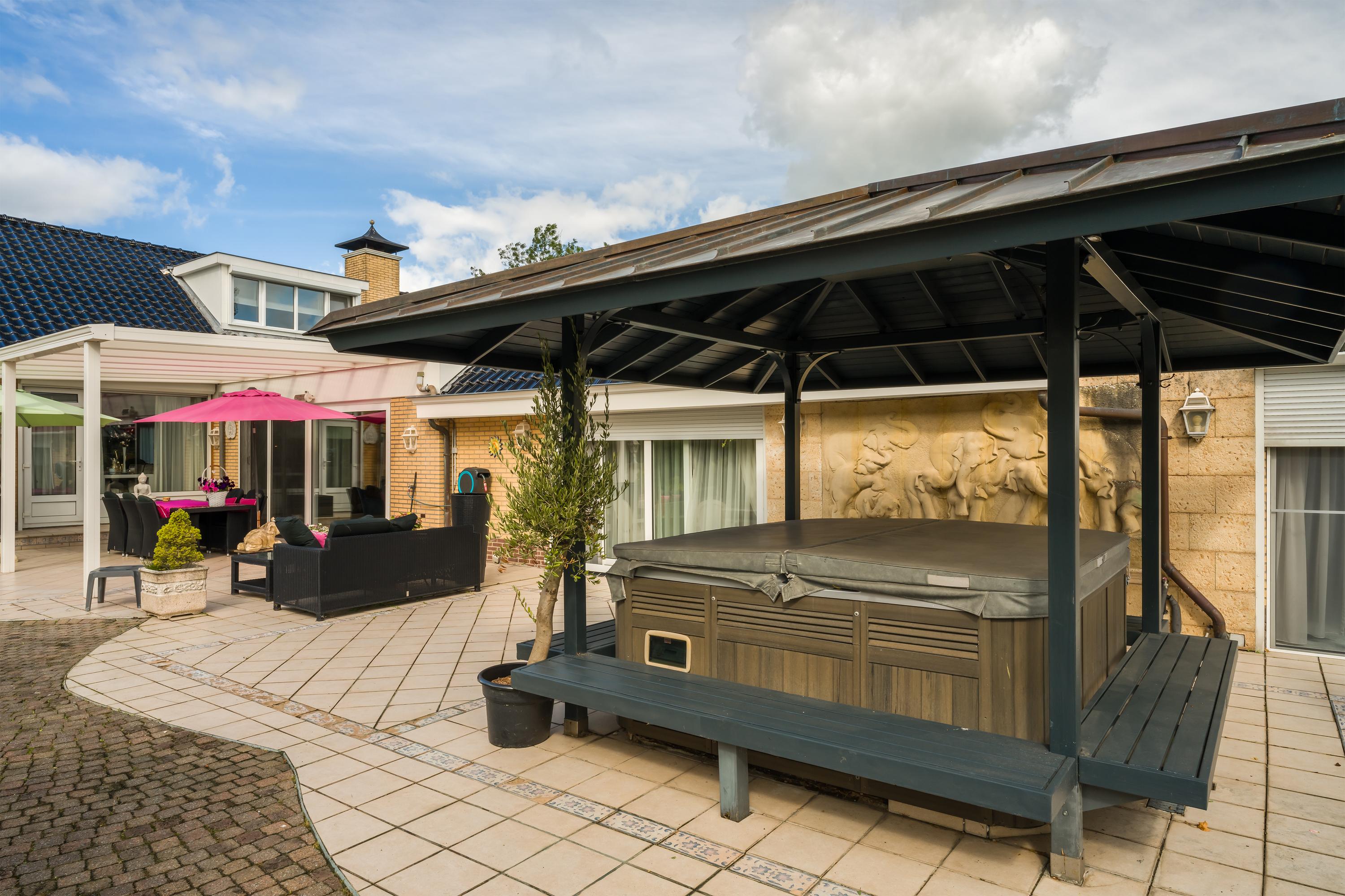 Das freistehende Semi-Bungalow in Den Ilp verkörpert abgeschiedenes Landleben mit raffinierter Funktionalität und Ausstrahlung. Das Anwesen bietet 262 m² Wohnfläche auf 4.765 m² Privatgrundstück, direkt angrenzend an das Natura 2000-Schutzgebiet Ilperveld und einen offenen Wasserlauf. Dieses Polderdomizil wird von einem weißen Eisentor und einer von Bäumen gesäumten Asphaltzufahrt erschlossen und präsentiert einen von Amerika inspirierten Bungalow, ein großzügiges Gästehaus sowie eine 368 m² große, beheizte Gewerbefläche. Ein runder Vorhof führt zur Garage und zu den Tiergehegen und schafft eine Atmosphäre von unaufdringlicher Großzügigkeit und Privatsphäre.