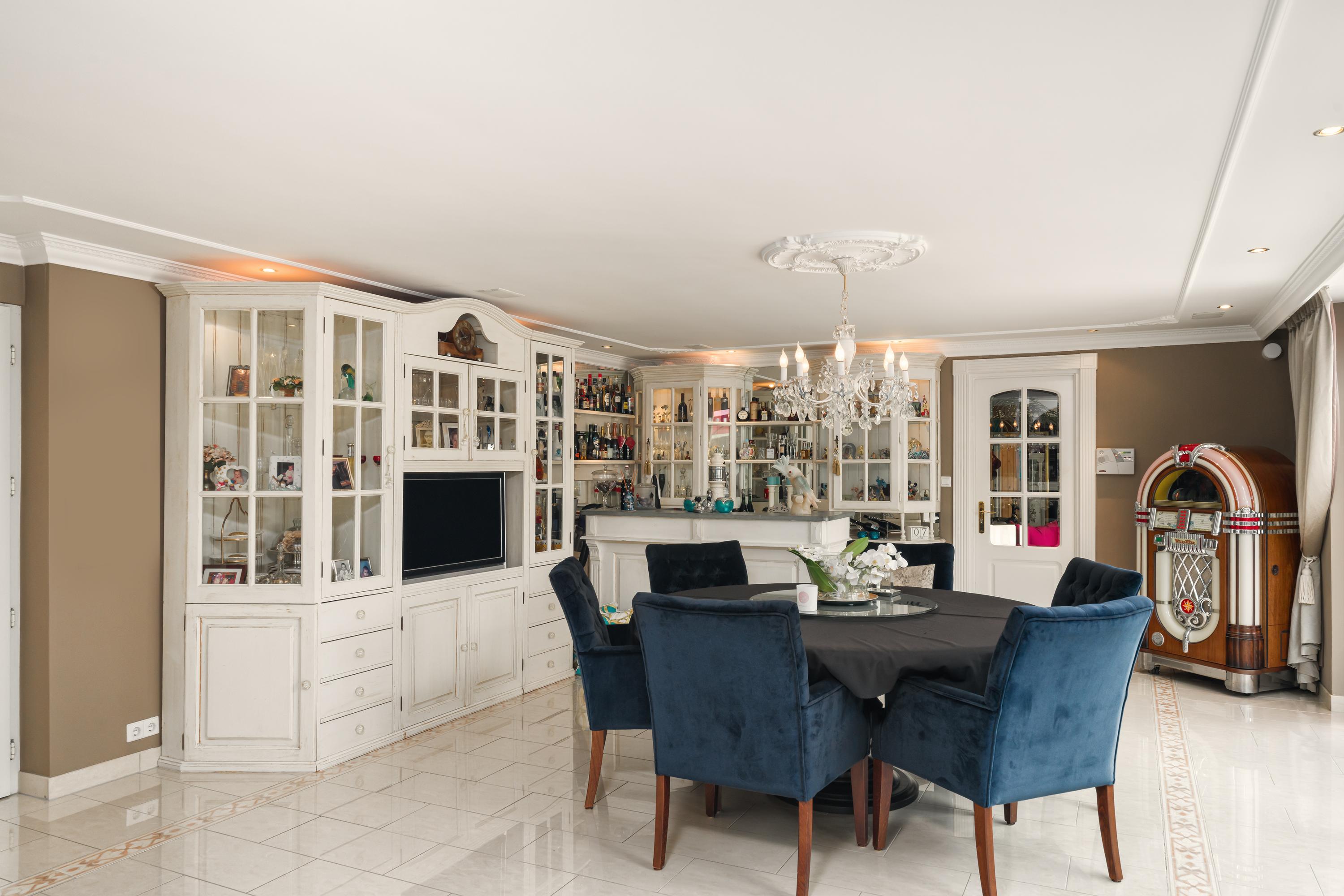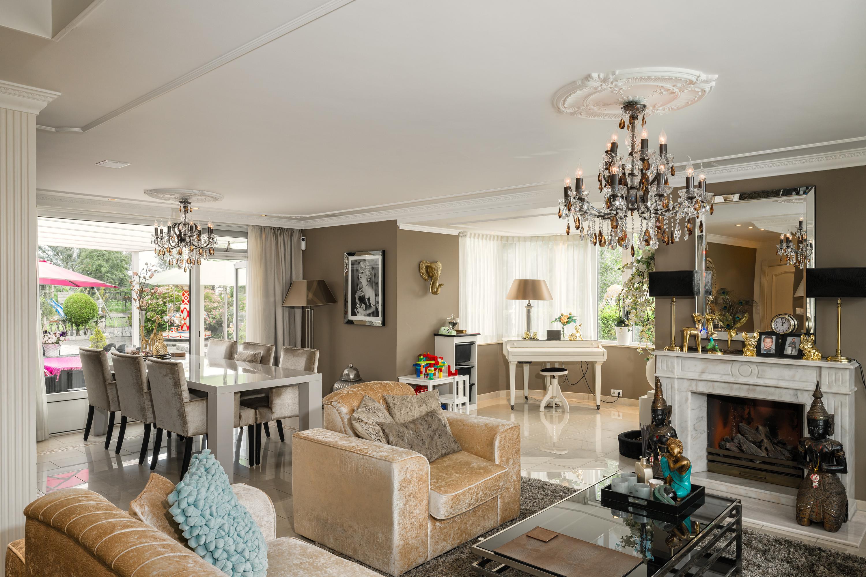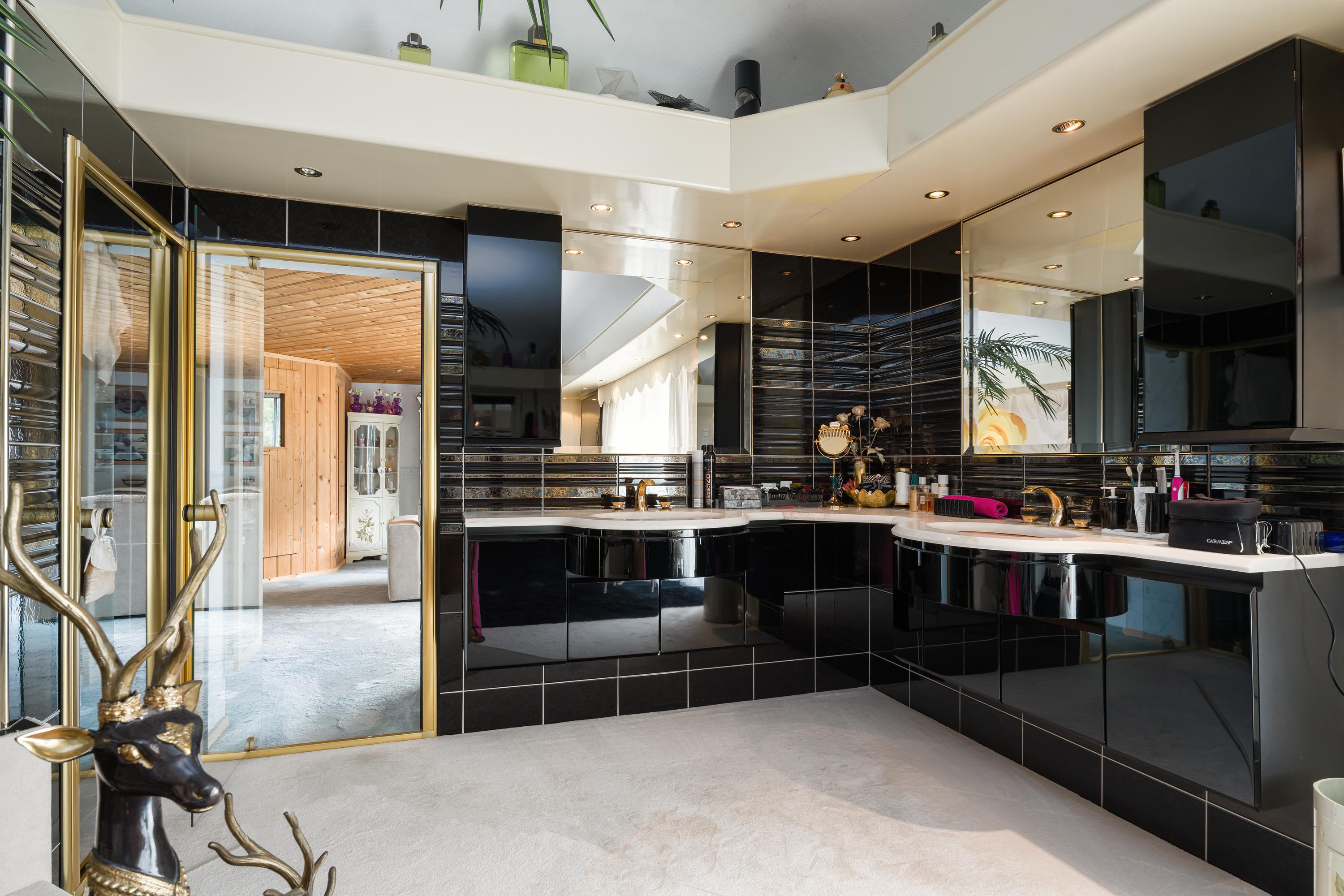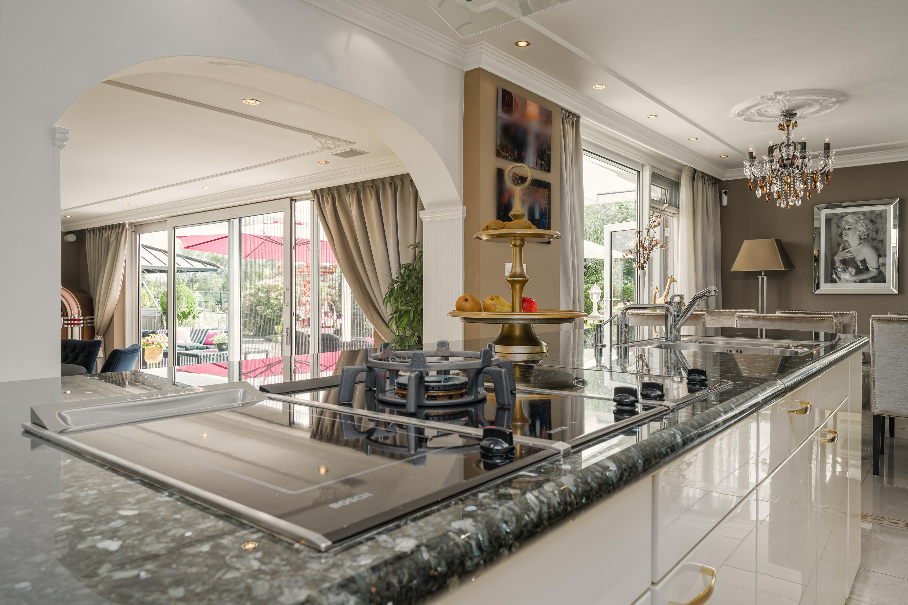 Im Inneren sind die Räume ausgewogen gestaltet, um sowohl das Familienleben als auch die Bewirtung von Gästen zu ermöglichen. Das Erdgeschoss umfasst einen lichtdurchfluteten Wohnbereich mit Kamin, ein Esszimmer mit Zugang zum Garten, eine offene Küche mit Kochinsel, Hauswirtschaftsraum und zwei Bäder. Die Master-Suite mit angrenzendem Wellnessbereich – Sauna und Ankleiden – öffnet sich durch Schiebetüren direkt zum Garten und sorgt für einen nahtlosen Übergang zwischen Innen- und Außenbereich. Im Obergeschoss teilen sich zwei großzügige Schlafzimmer eine sonnige Dachterrasse mit Südausrichtung.