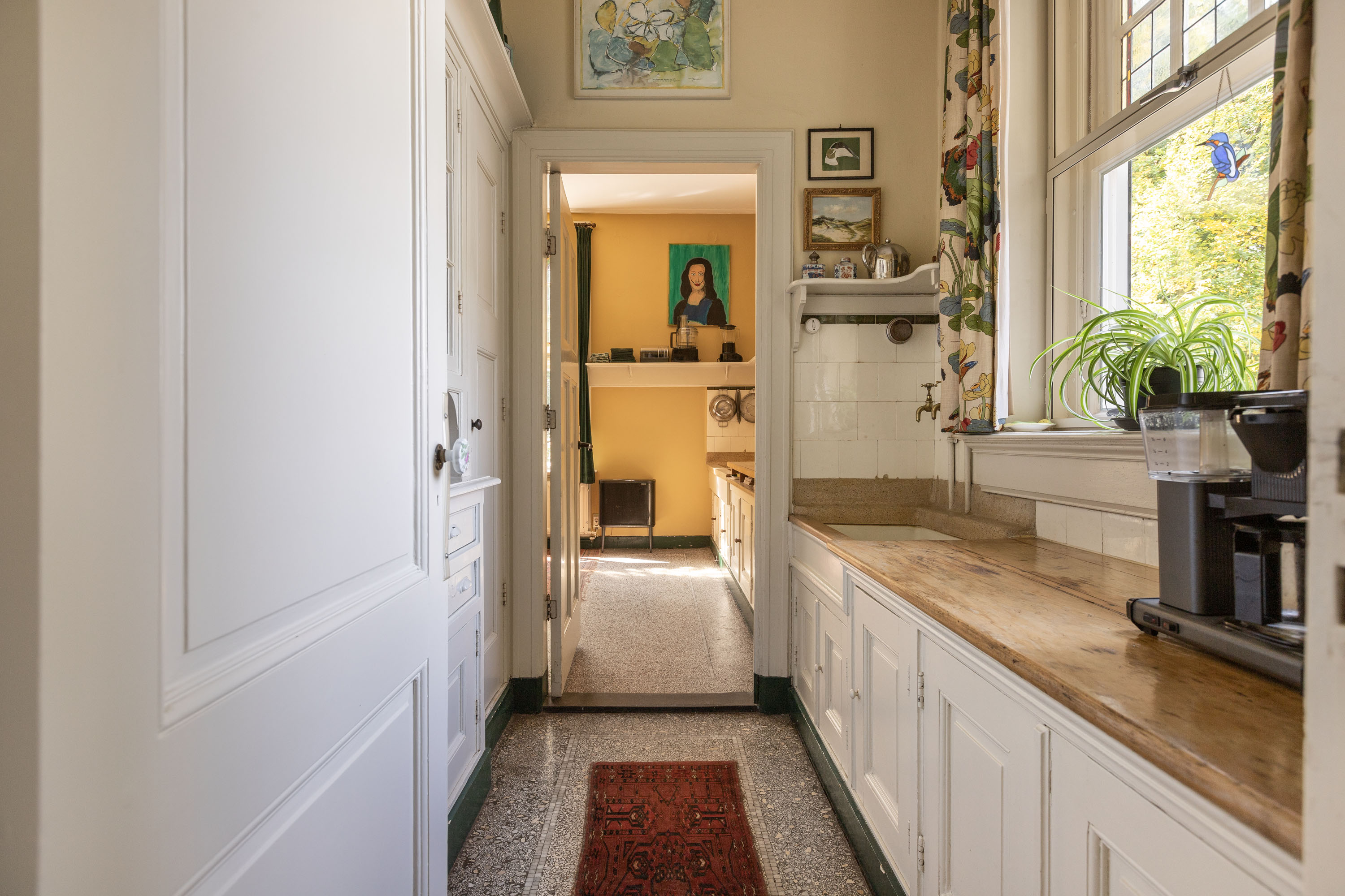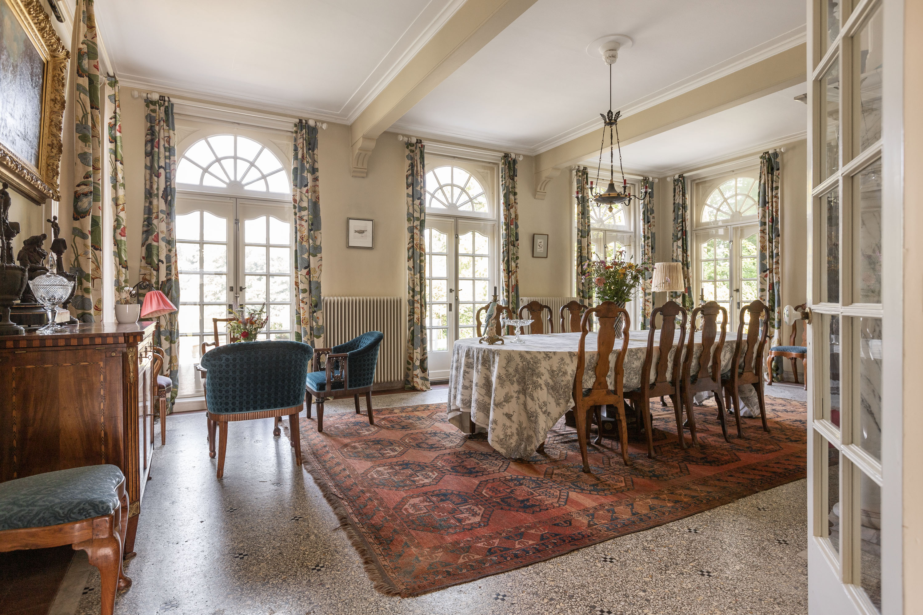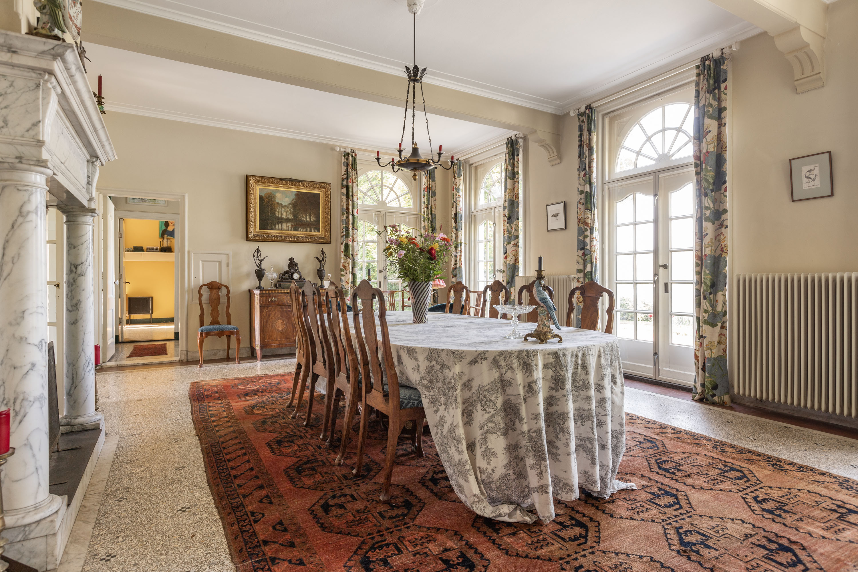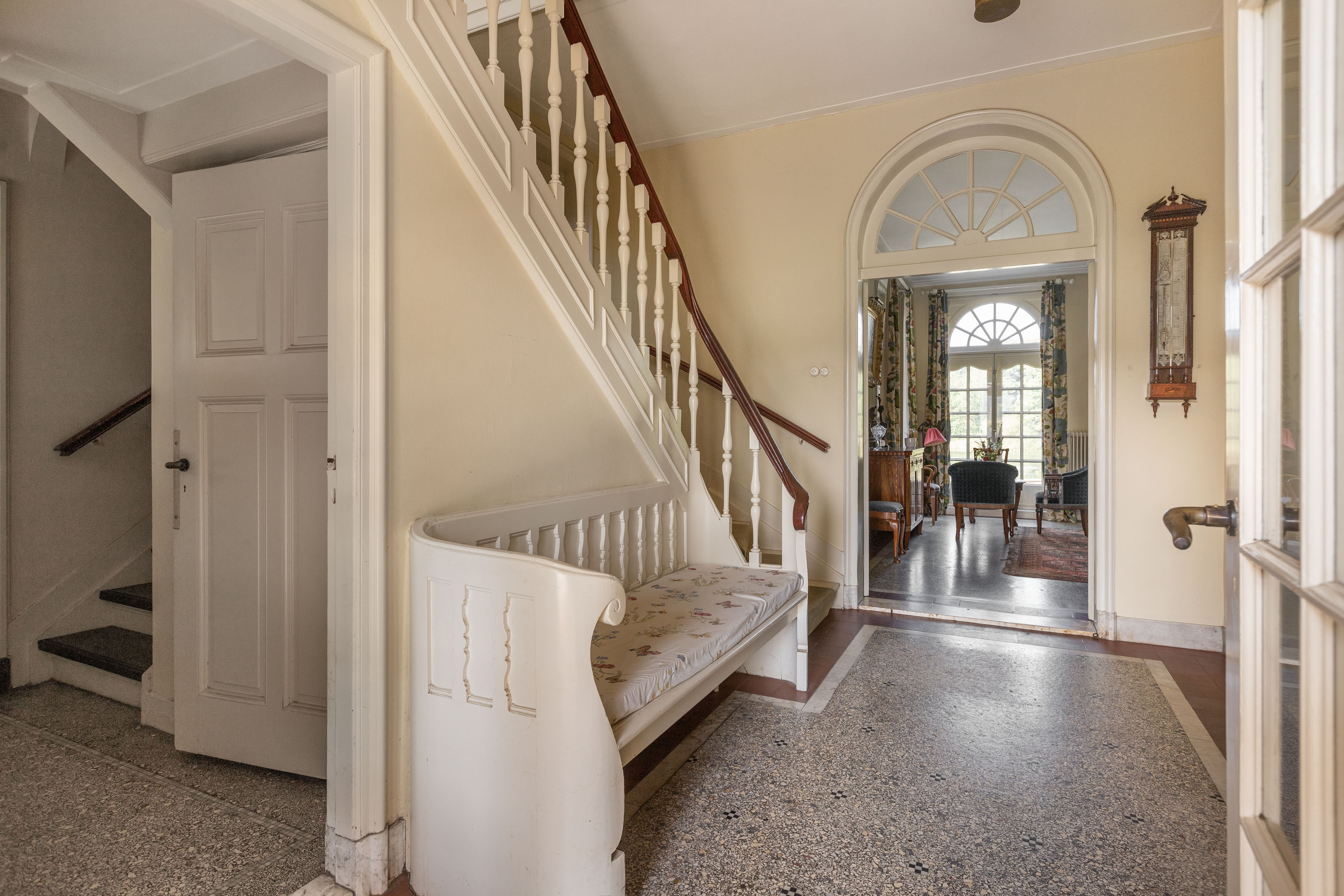 Die Architektur der Villa ehrt ihre Ursprünge und bewahrt originale Terrazzo- und Parkettböden, Einbauschränke sowie aufwändige Bleiverglasungen. Sieben Schlafzimmer und zwei Bäder sind so angelegt, dass Privatsphäre und Familienleben harmonisch vereint werden. Sorgfältig erhaltene Details werden durch behutsame Modernisierungen ergänzt, darunter ein moderner Pellet-Ofen, eine Wärmepumpe, zusätzliche Verglasung, Hohlraumwände sowie ein vollständig isoliertes Dach.
