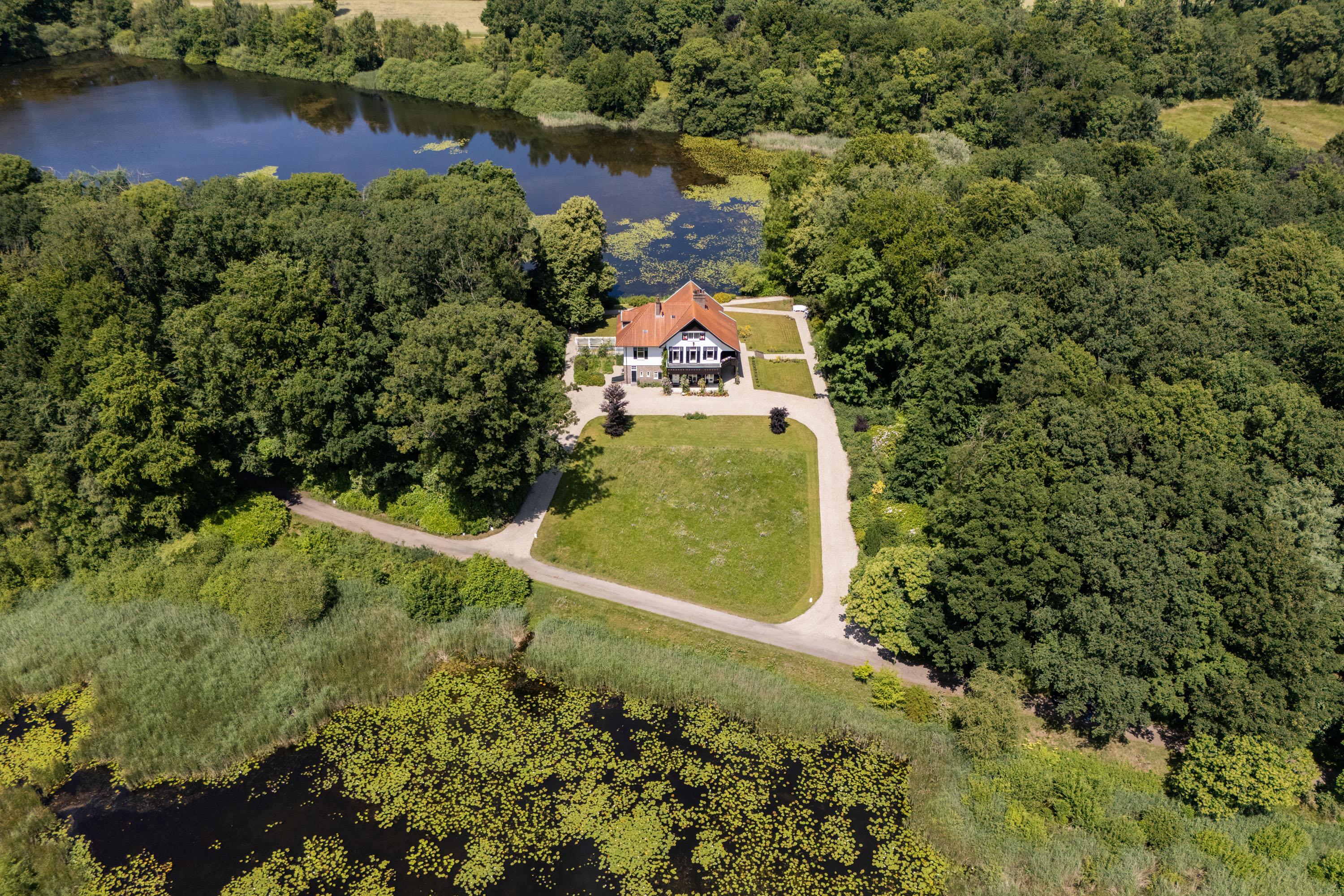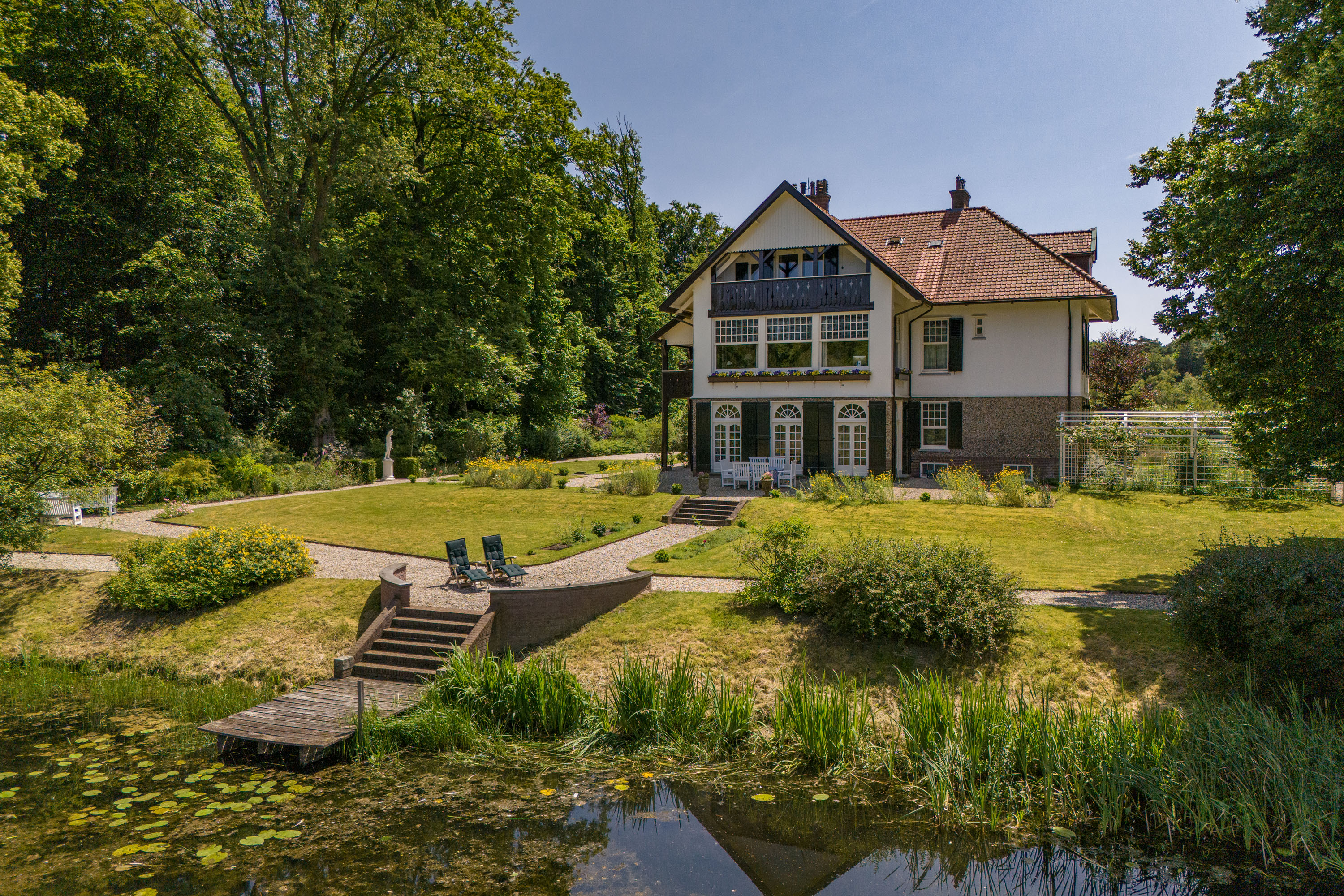 Villa Deurningen ist ein denkmalgeschütztes Anwesen und nationales Kulturerbe, eingebettet in 2,38 Hektar englische Landschaftsgärten. Sie bietet elegantes Wohnen zwischen zwei Seen in einem der wertvollsten Naturschutzgebiete Twentes. Mit 370 m² Wohnfläche wurde diese Villa 1901 von Architekt Karel J. Muller entworfen, der maßgeblich zur architektonischen Prägung der Region beigetragen hat. Die ruhige Lage erreicht man über eine 500 Meter lange, private Zufahrt; sie bietet Abgeschiedenheit bei gleichzeitig zentraler Lage nahe Hengelo, Enschede und wichtigen Verkehrswegen.